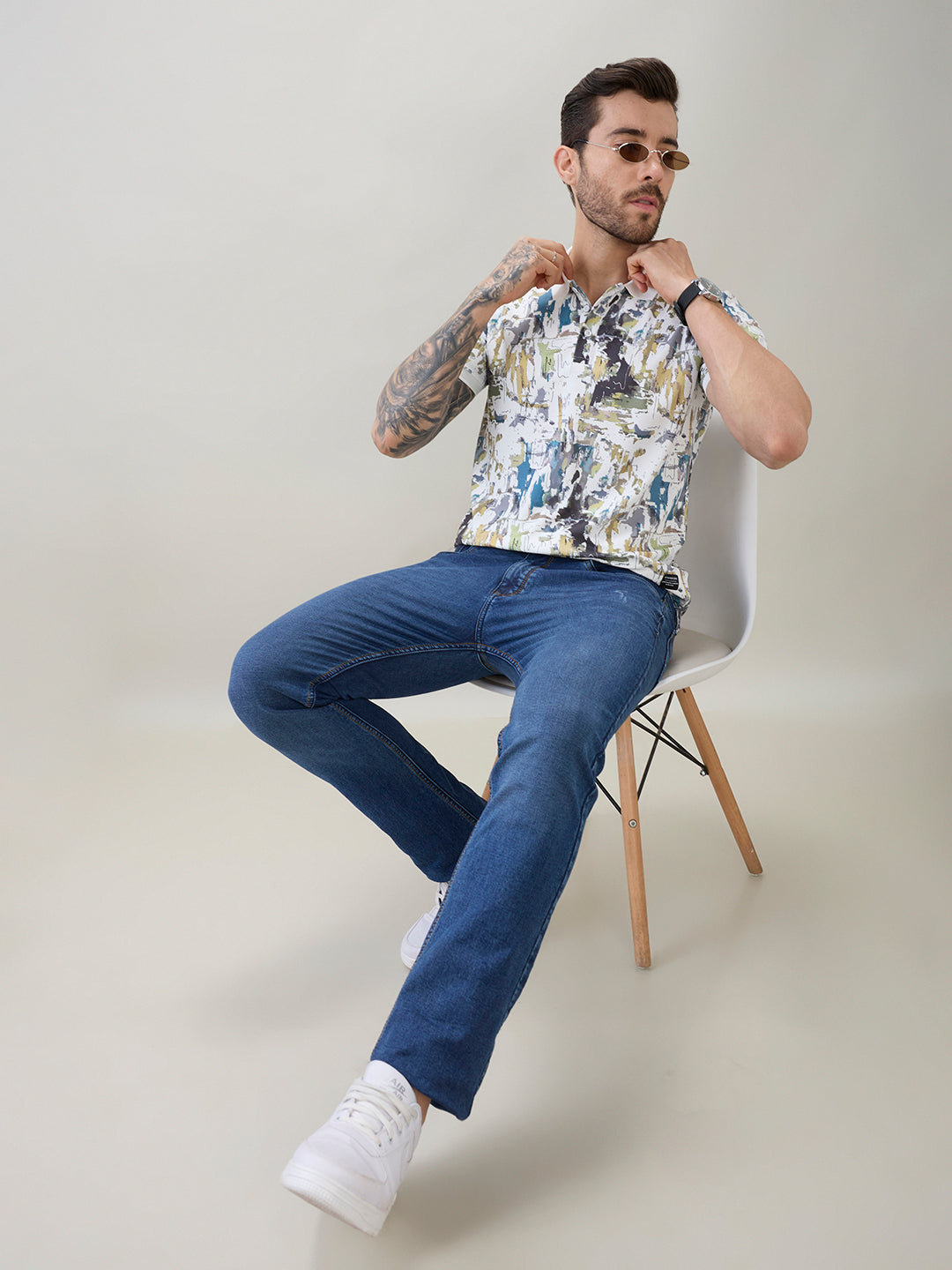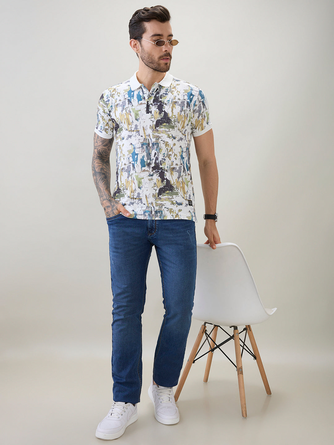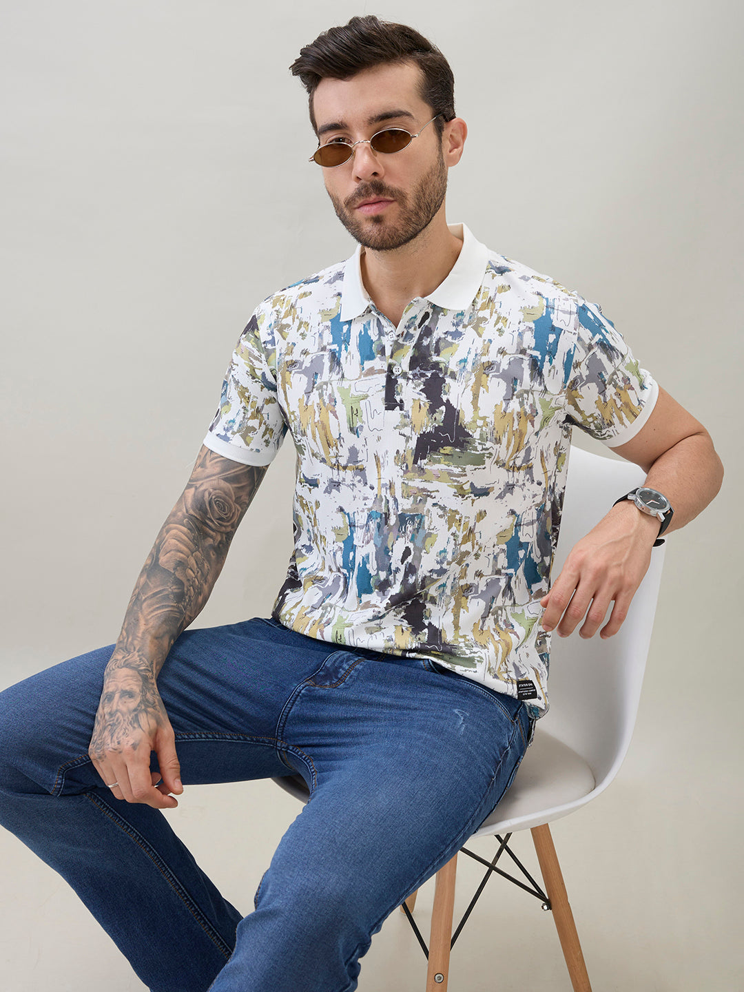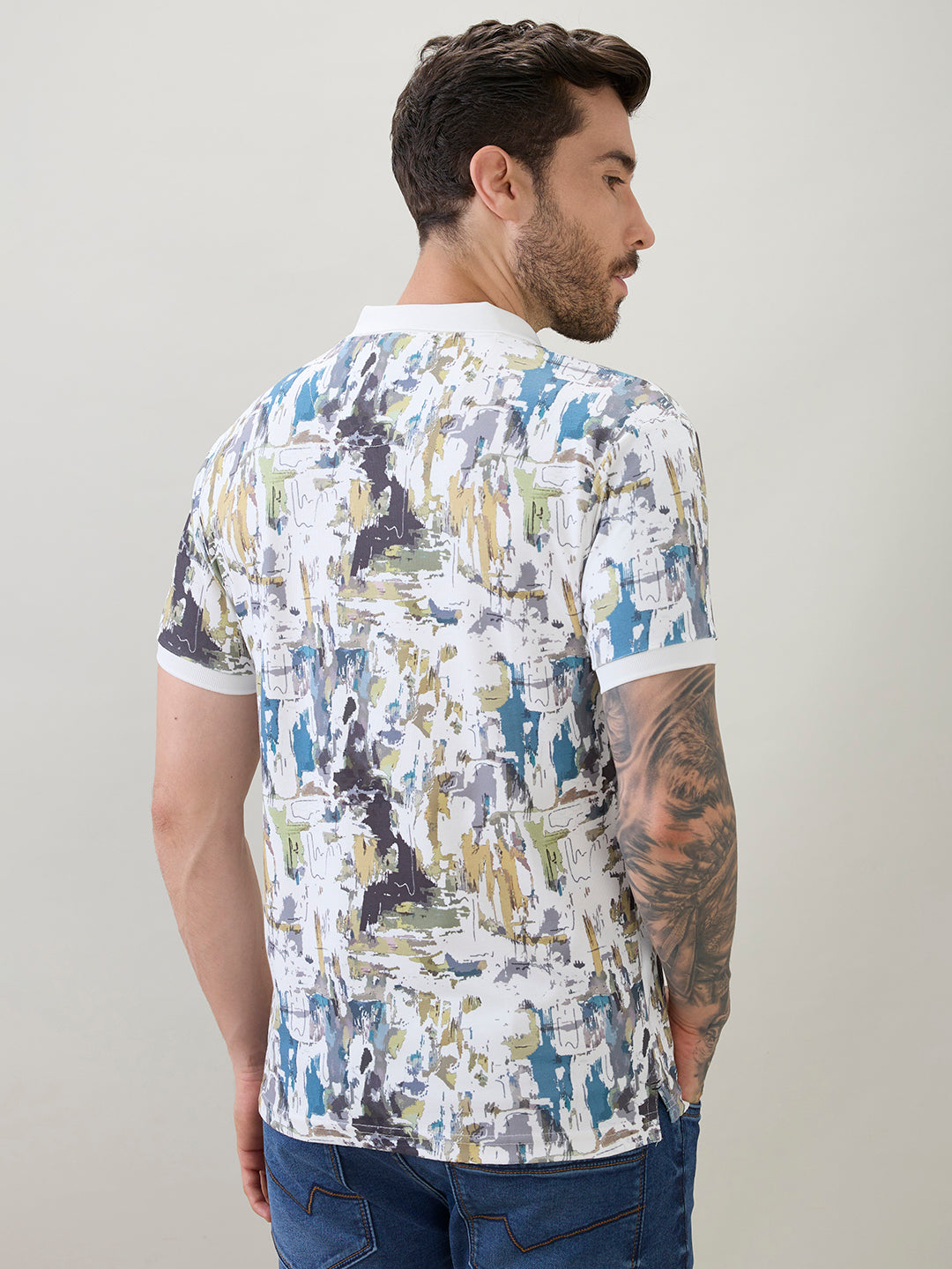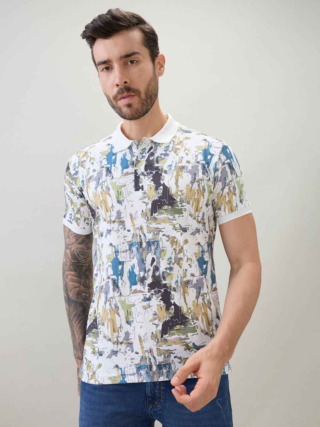 GREEN Men's All-Over Abstract Printed Regular Fit Half Sleeves Polo T-Shirt