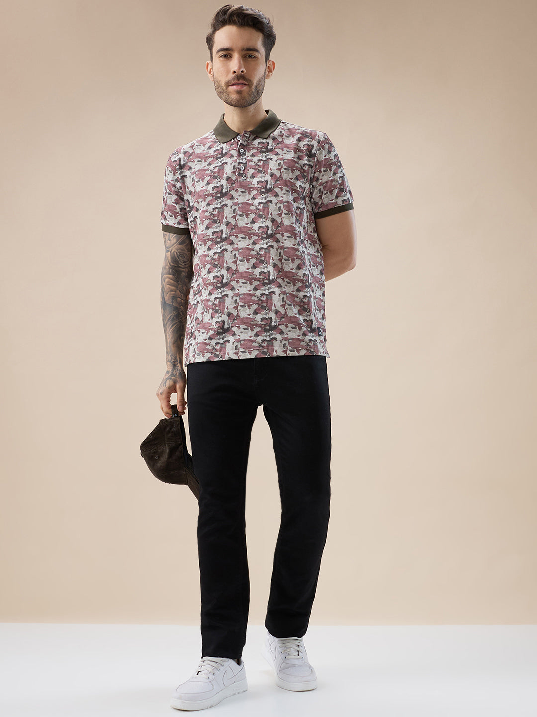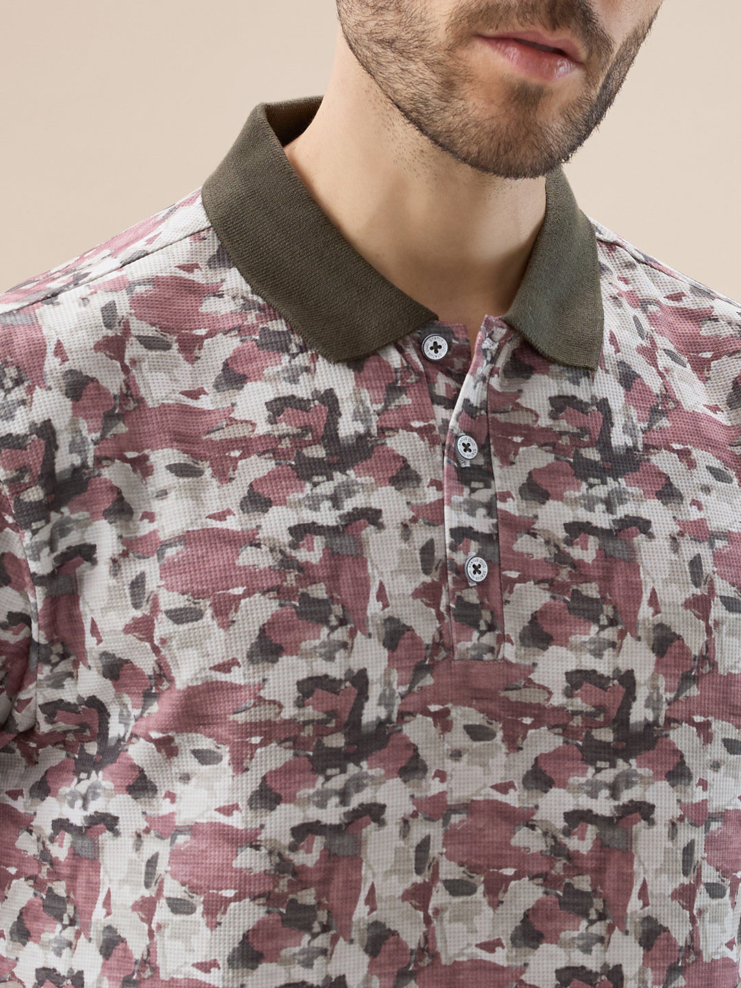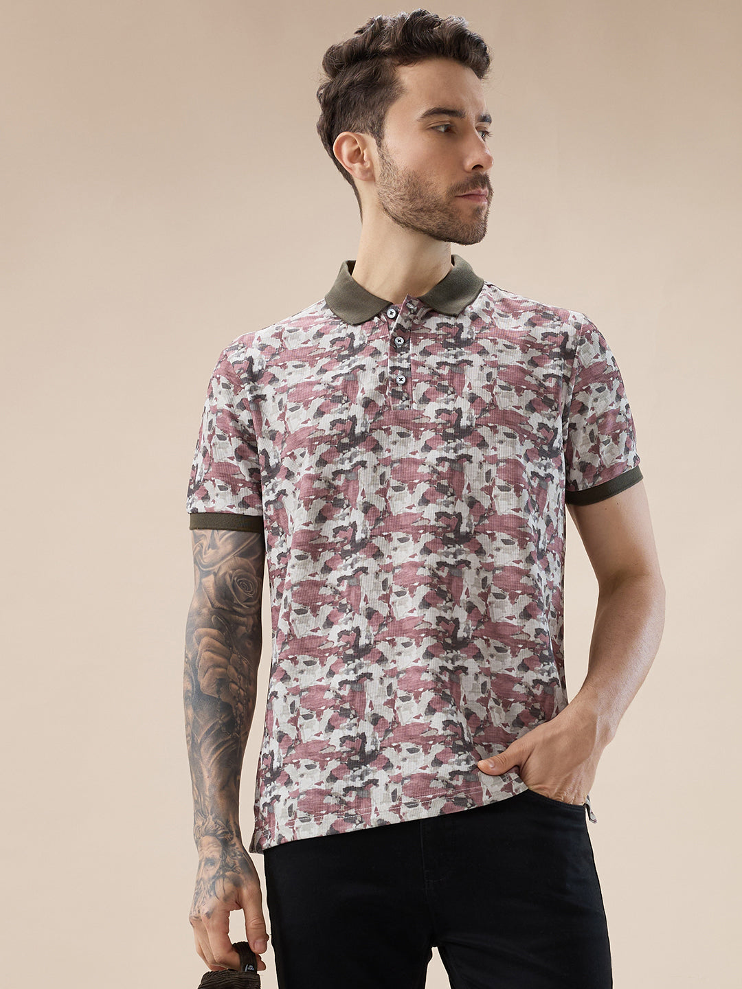 MILITARY Men's Abstract Half Sleeves Regular Fit T-shirt with contrast Polo Collar