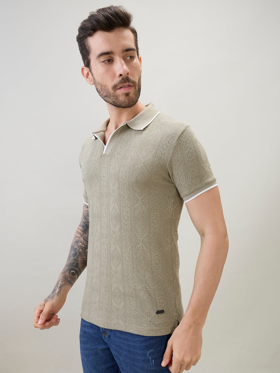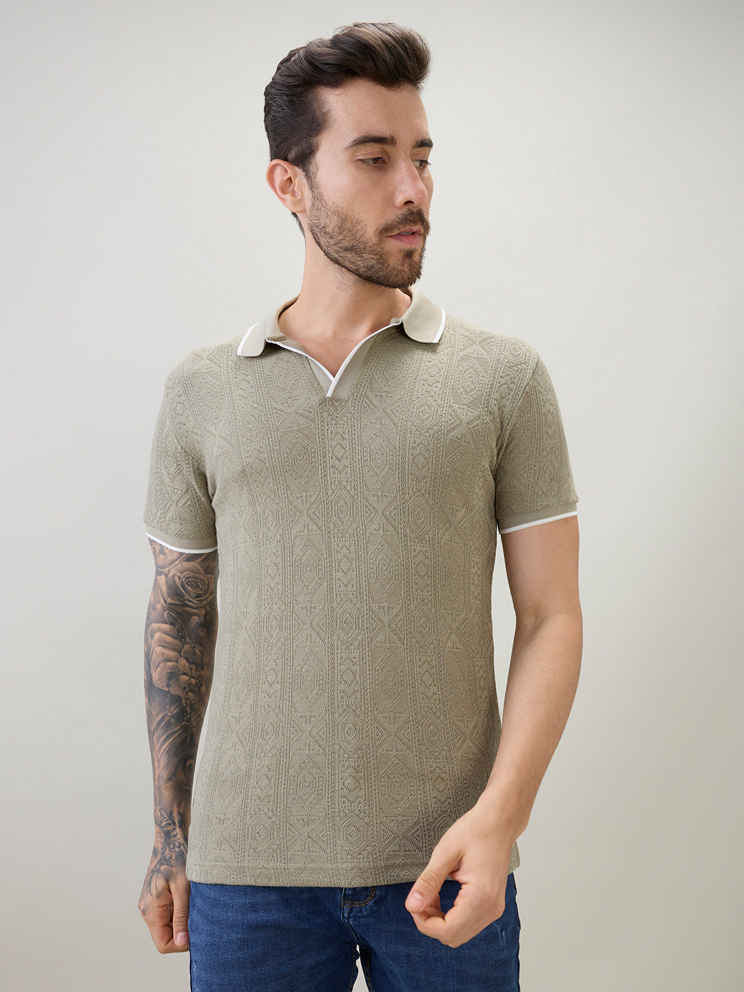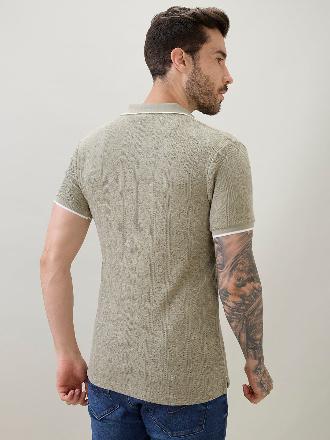 PISTA Men's Solid Textured Half Sleeves Polo T-Shirt with Tipping Detail