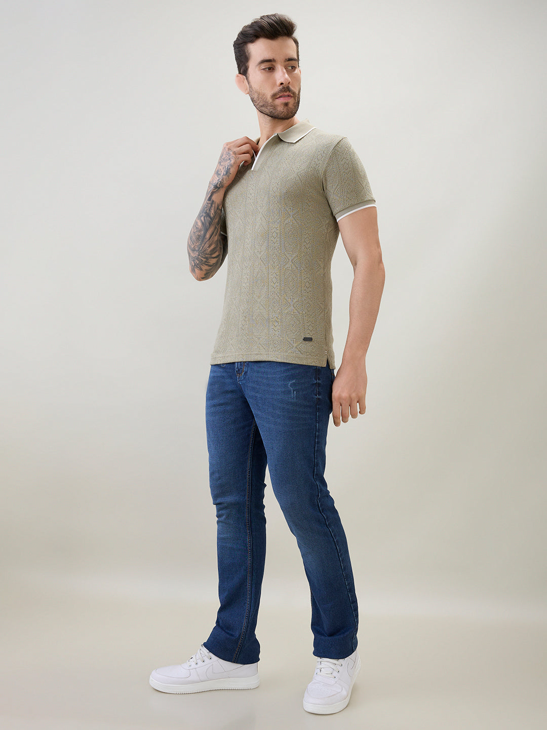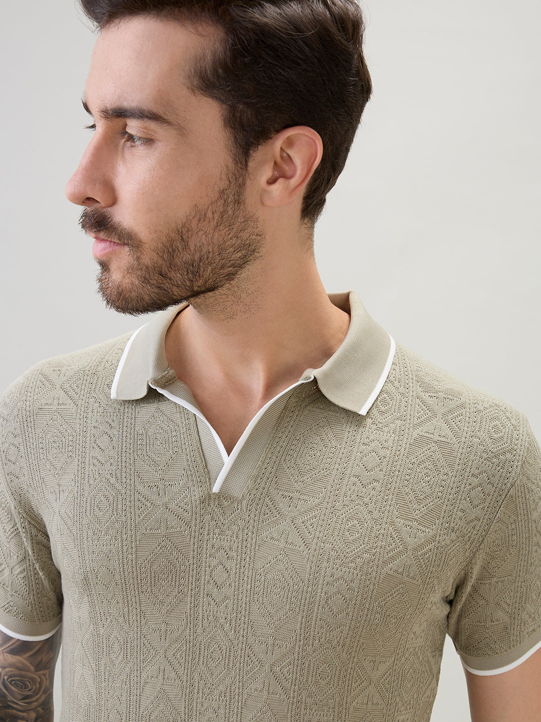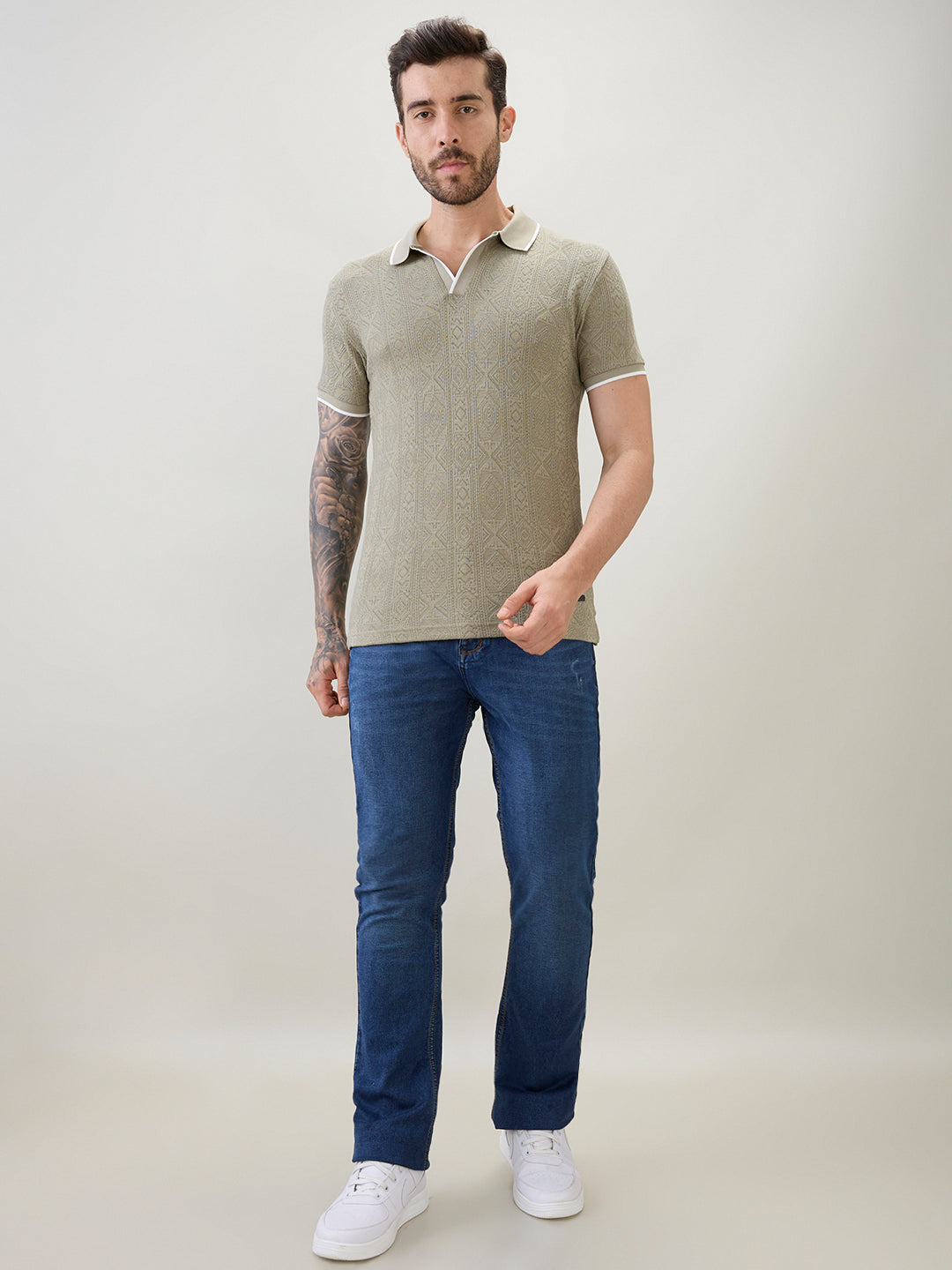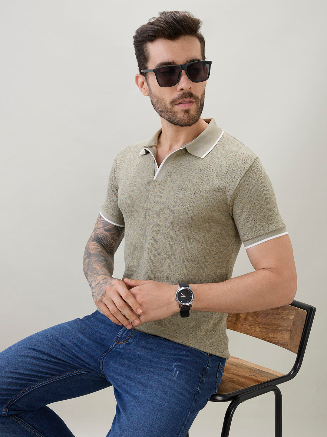 PISTA Men's Solid Textured Half Sleeves Polo T-Shirt with Tipping Detail