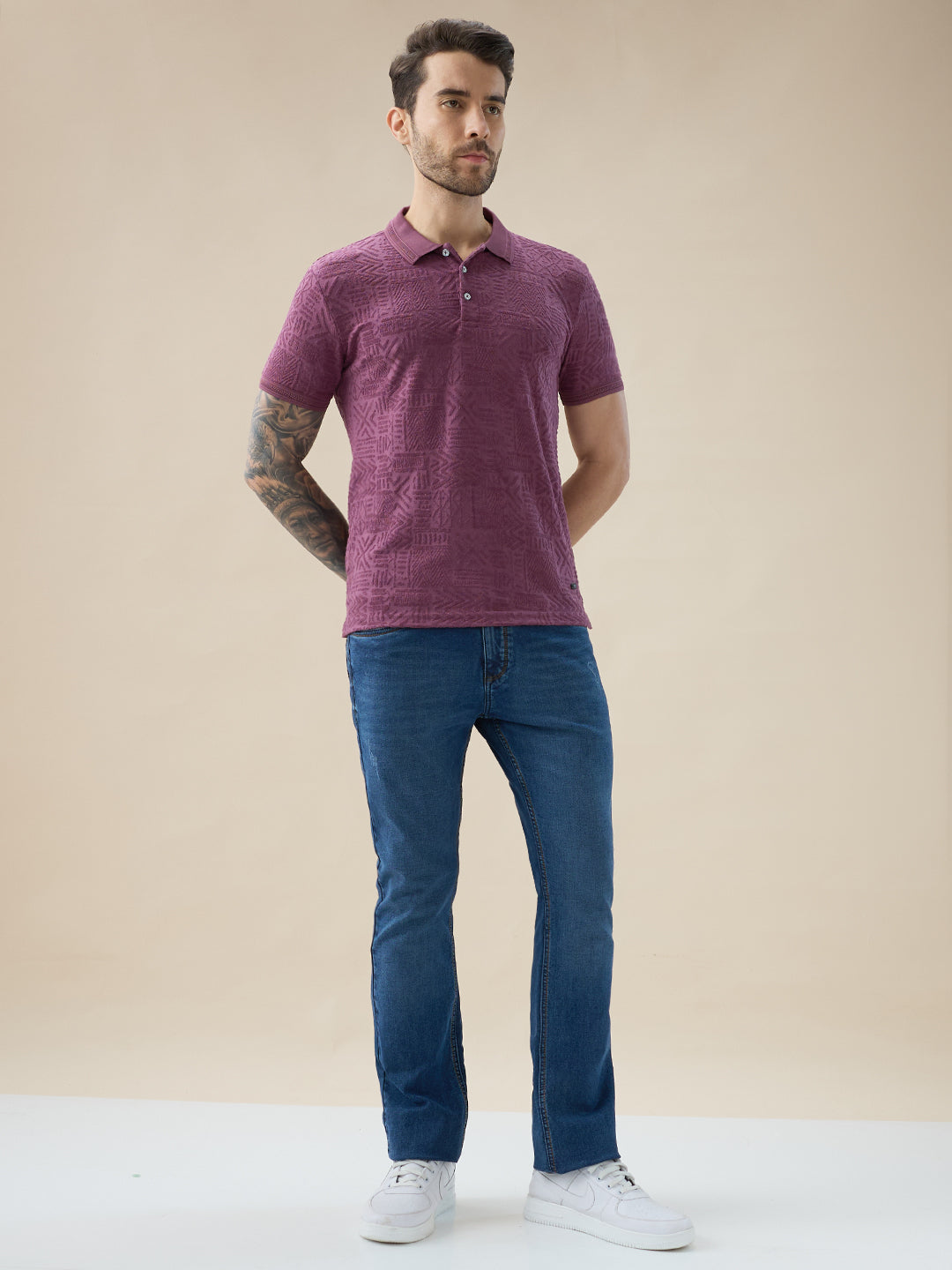 MAUVE Mens Geometric Textured Polo Neck Half Sleeve Regular Fit T-Shirt