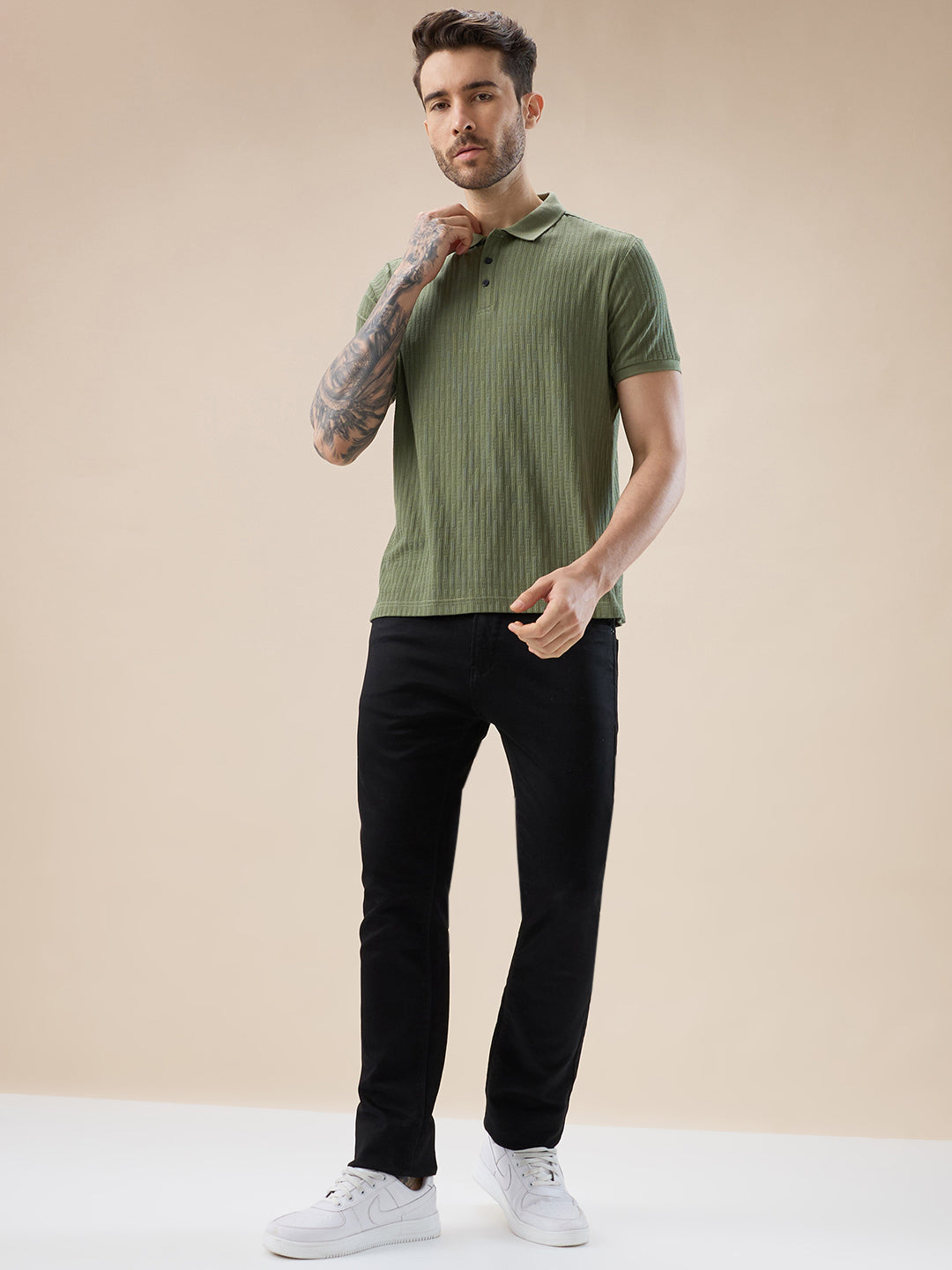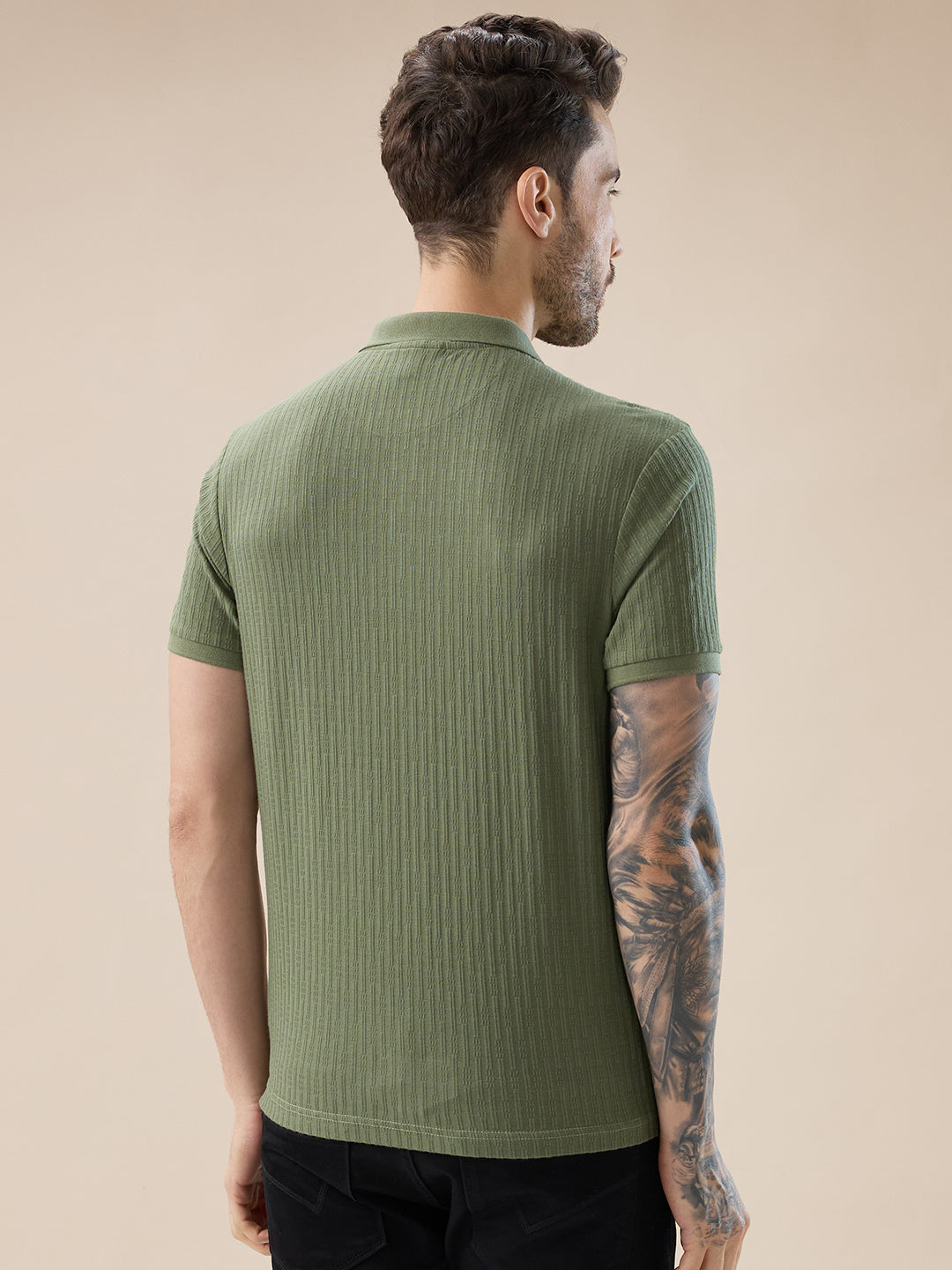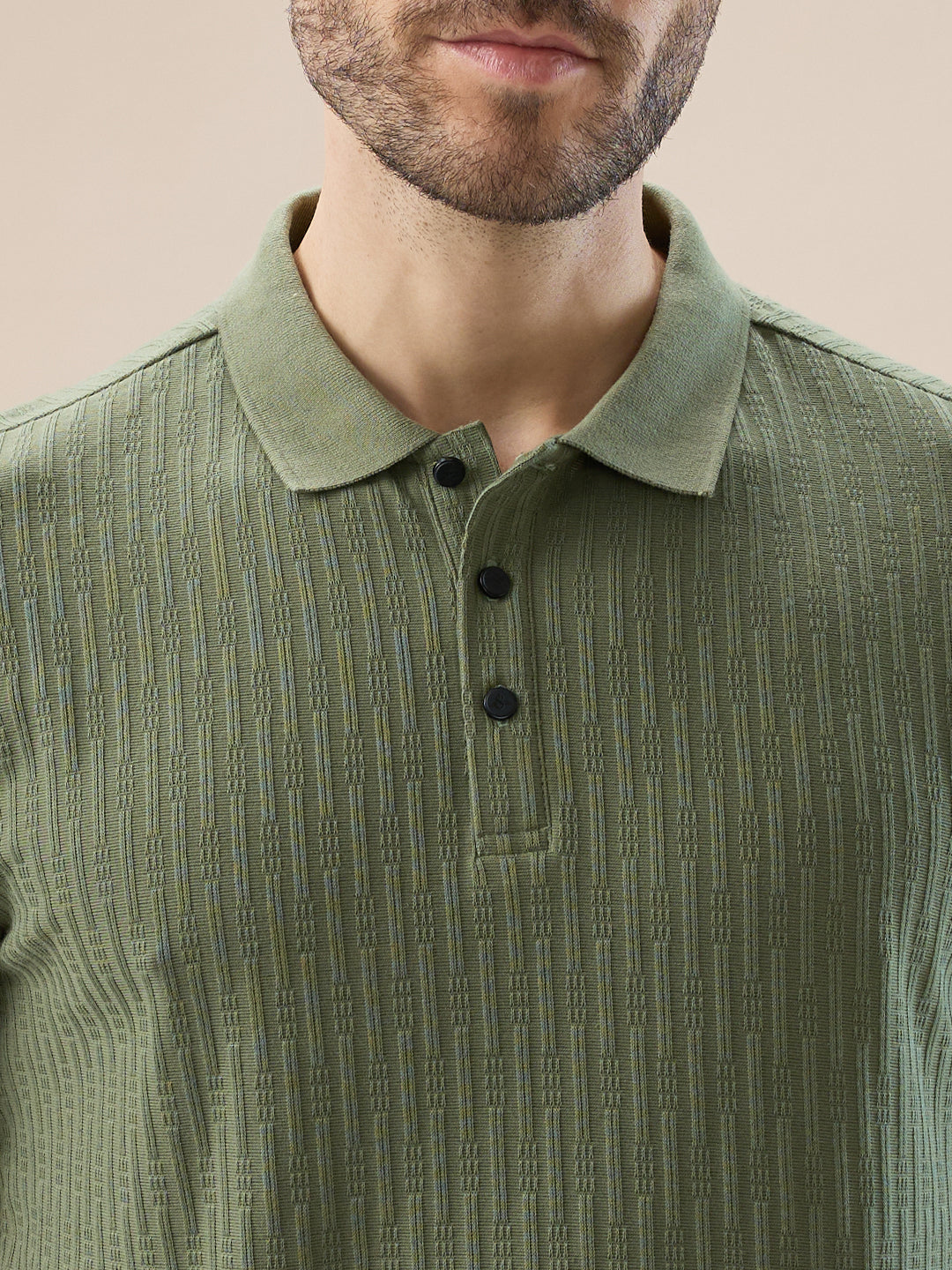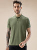 LT.OLIVE Men's Solid Striped Textured Half Sleeves Regular Fit Polo T-shirt