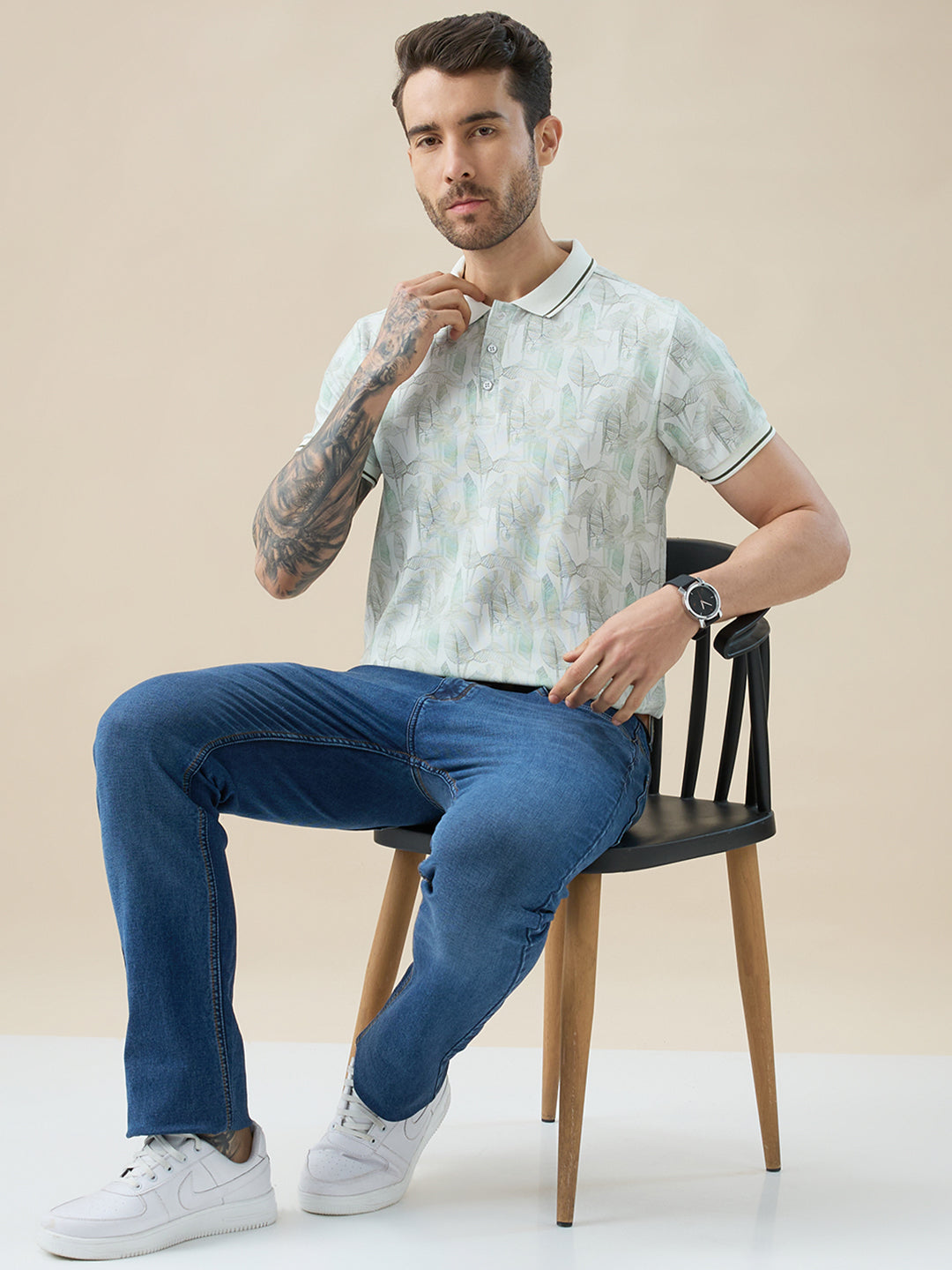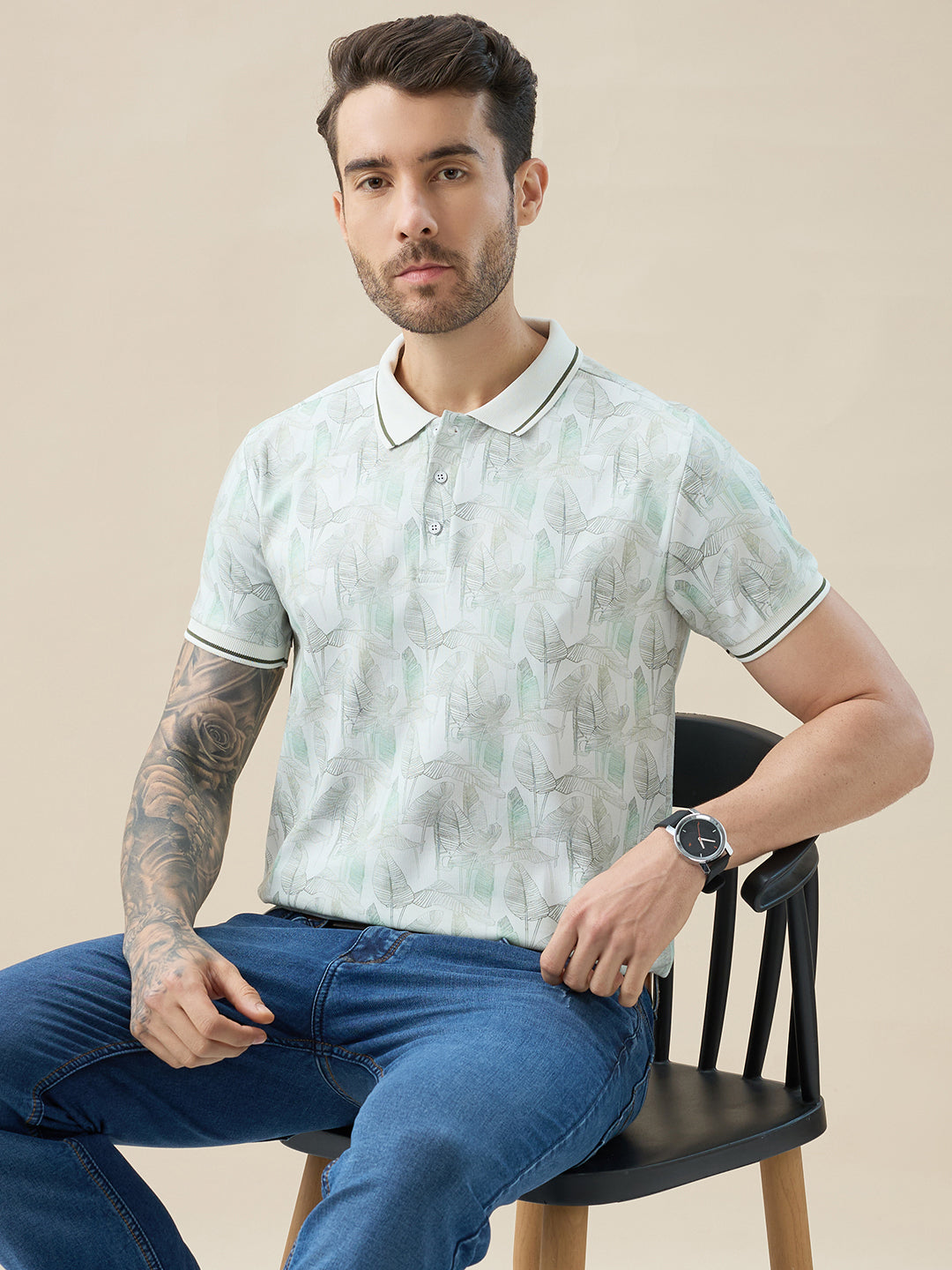 LT.GREEN Men's Half Sleeves Regular Fit Tropical Polo Tshirt With Tipping