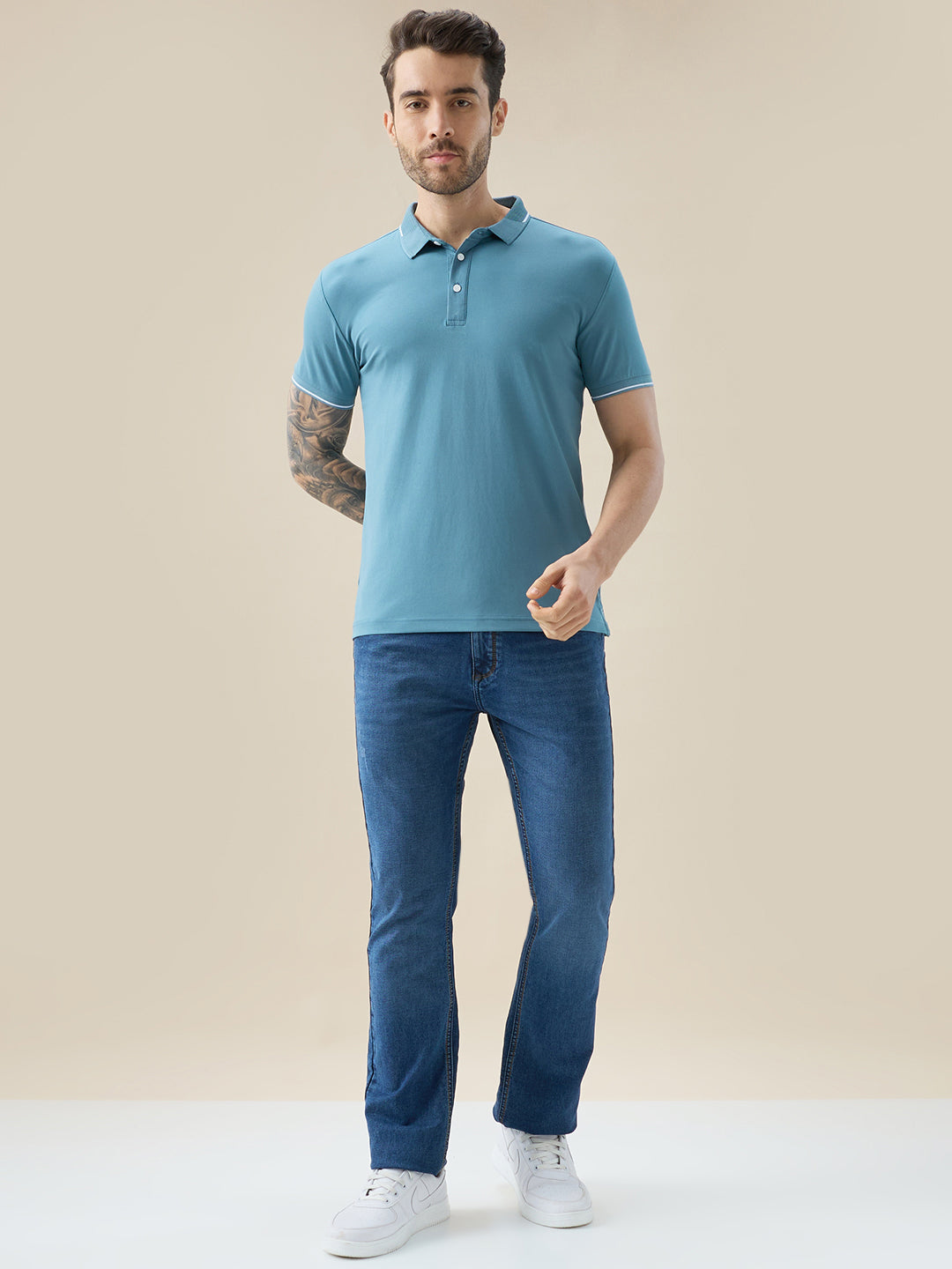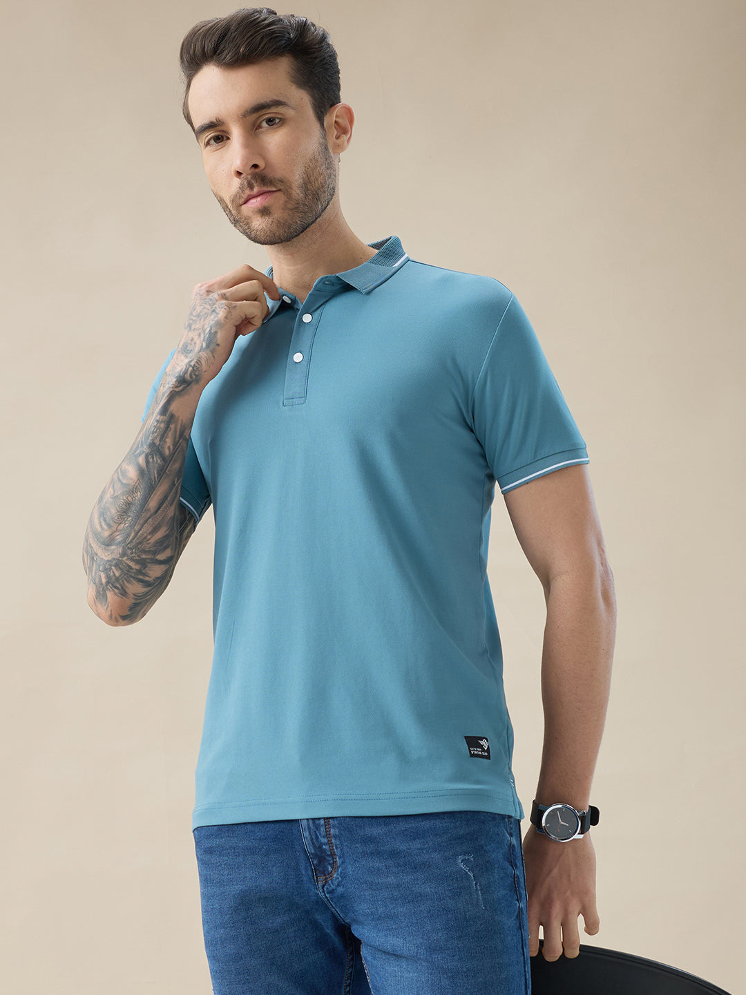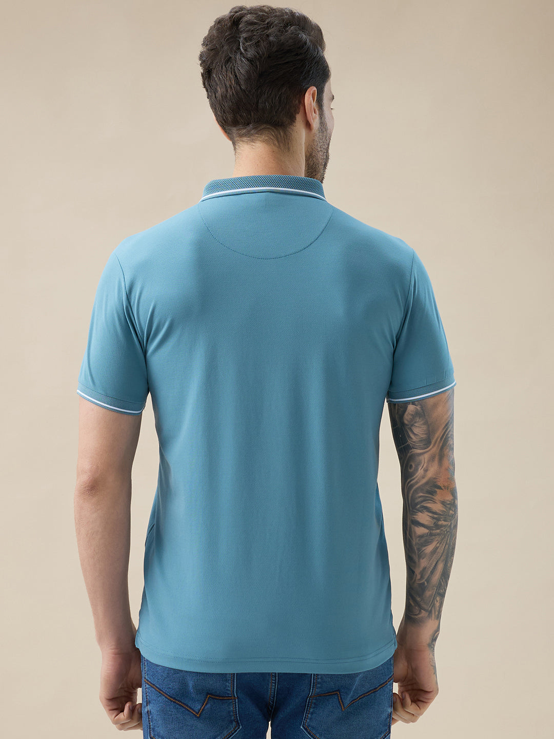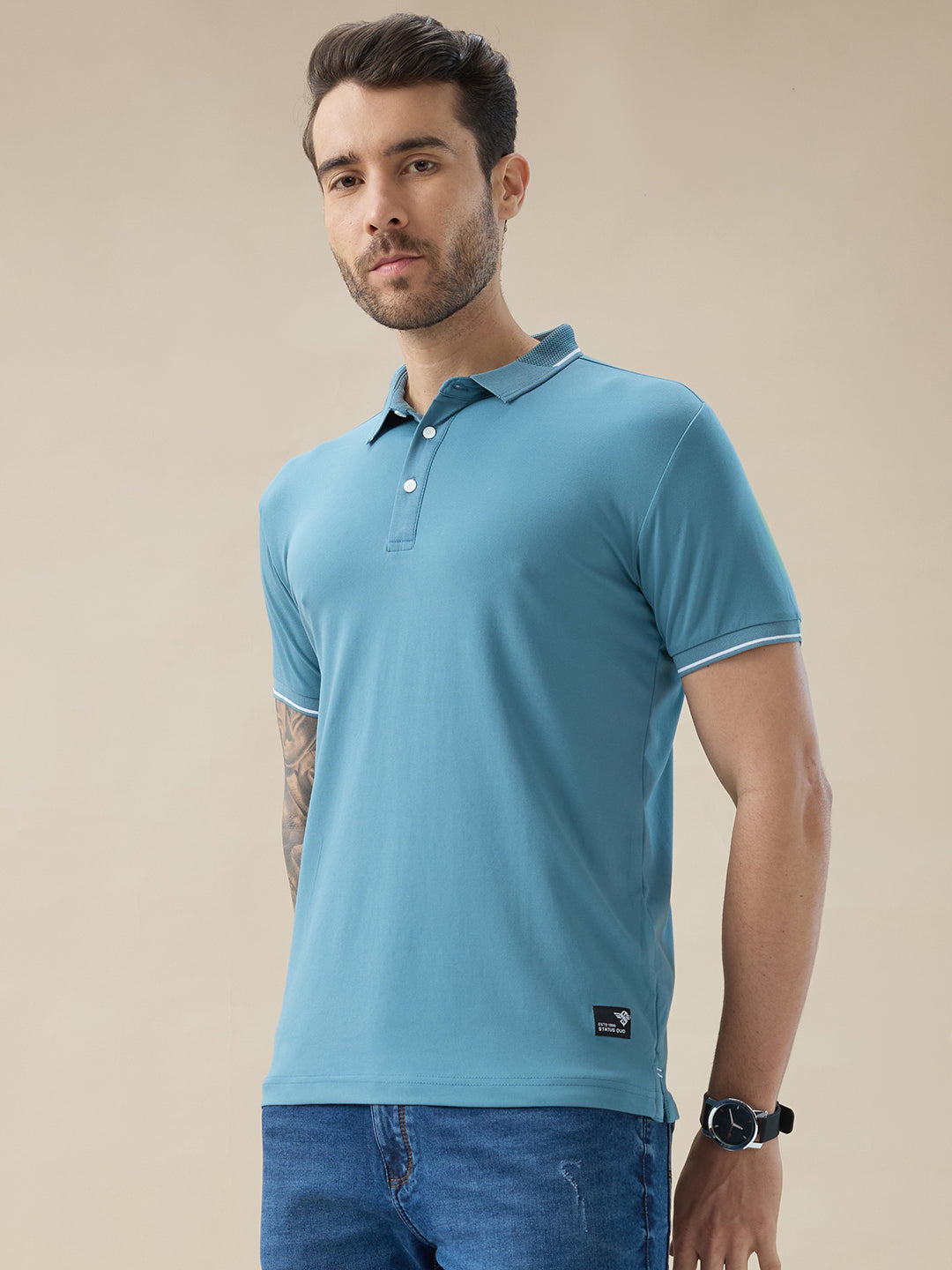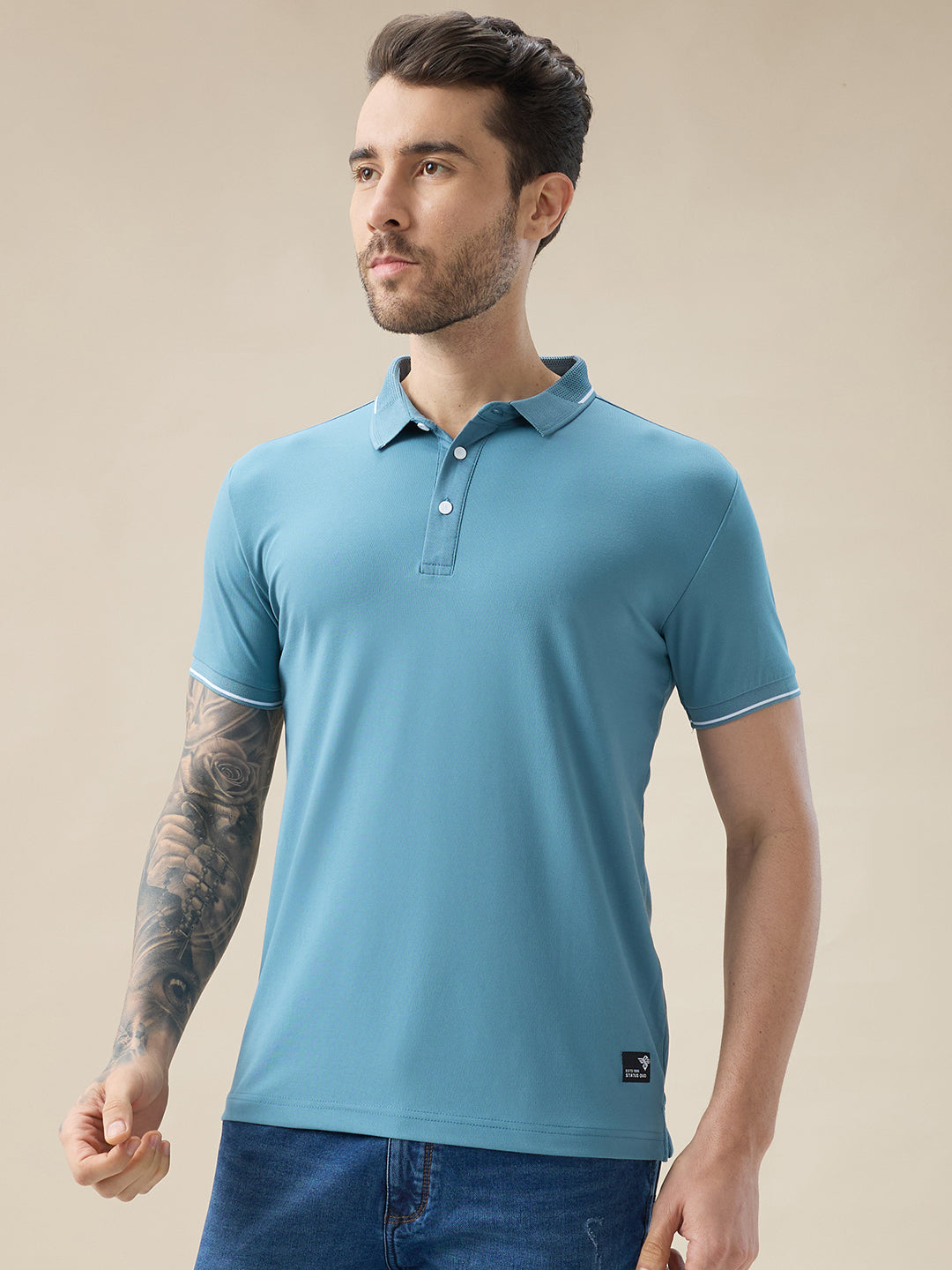 AQUA Men's Solid Polo Regular Fit Half Sleeves T-Shirt with Contrast Tipping