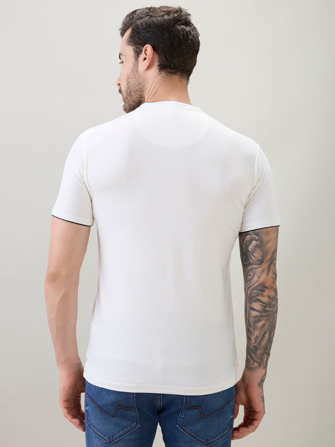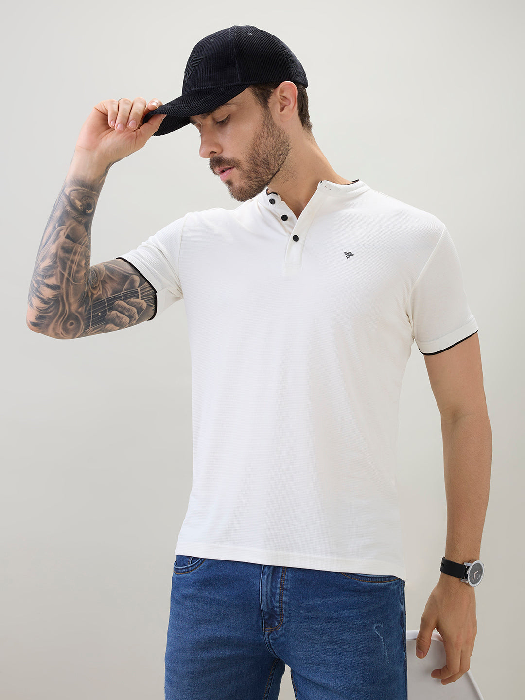 OFF WHITE Men's Regular Fit Henley T-Shirt Half Slevees with Button Closure and Logo