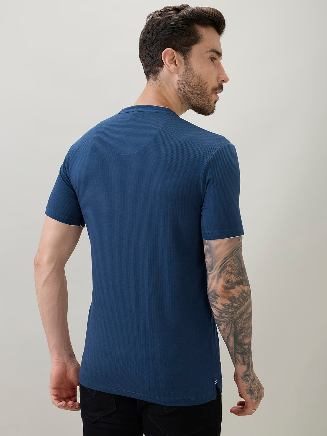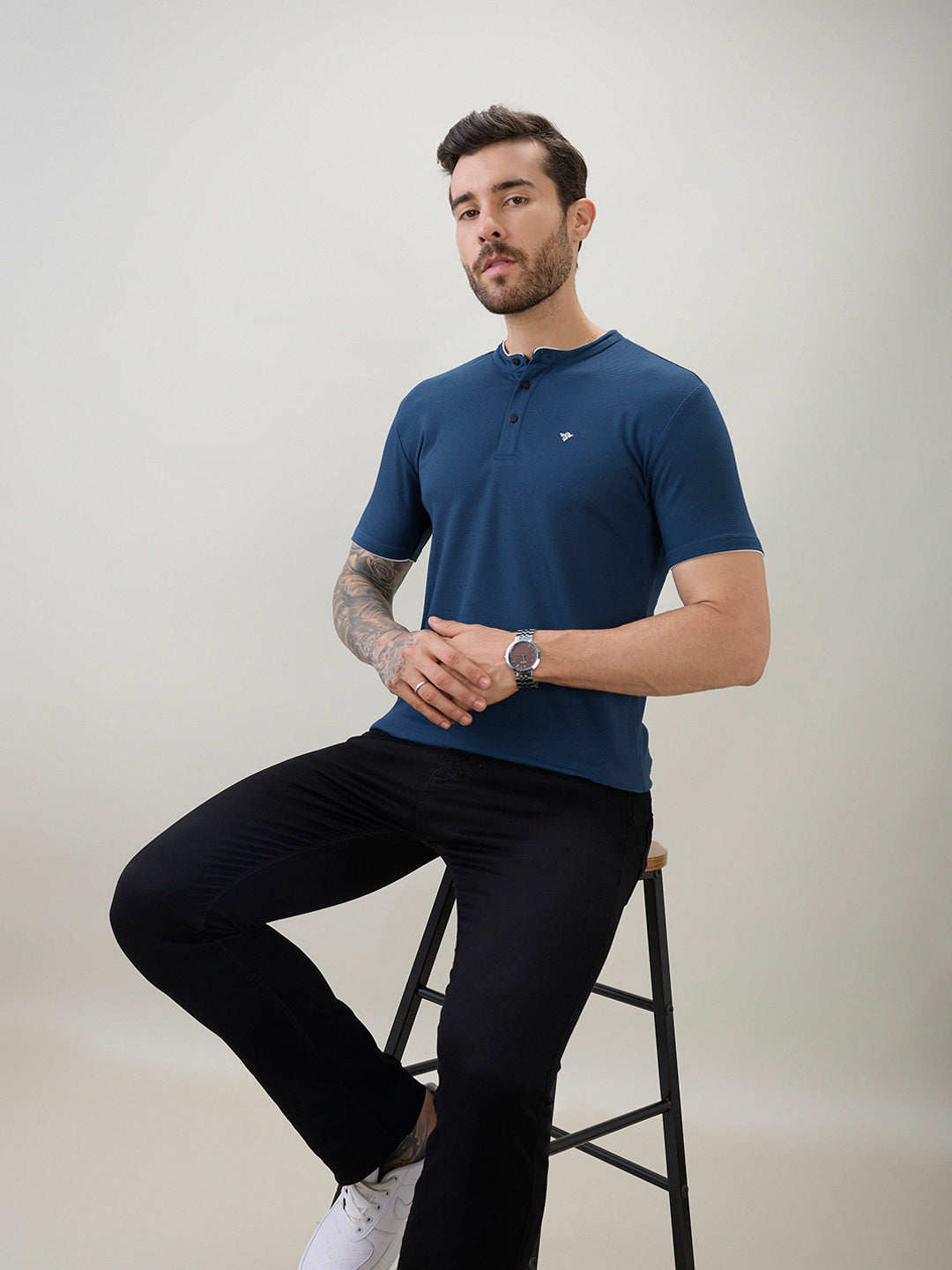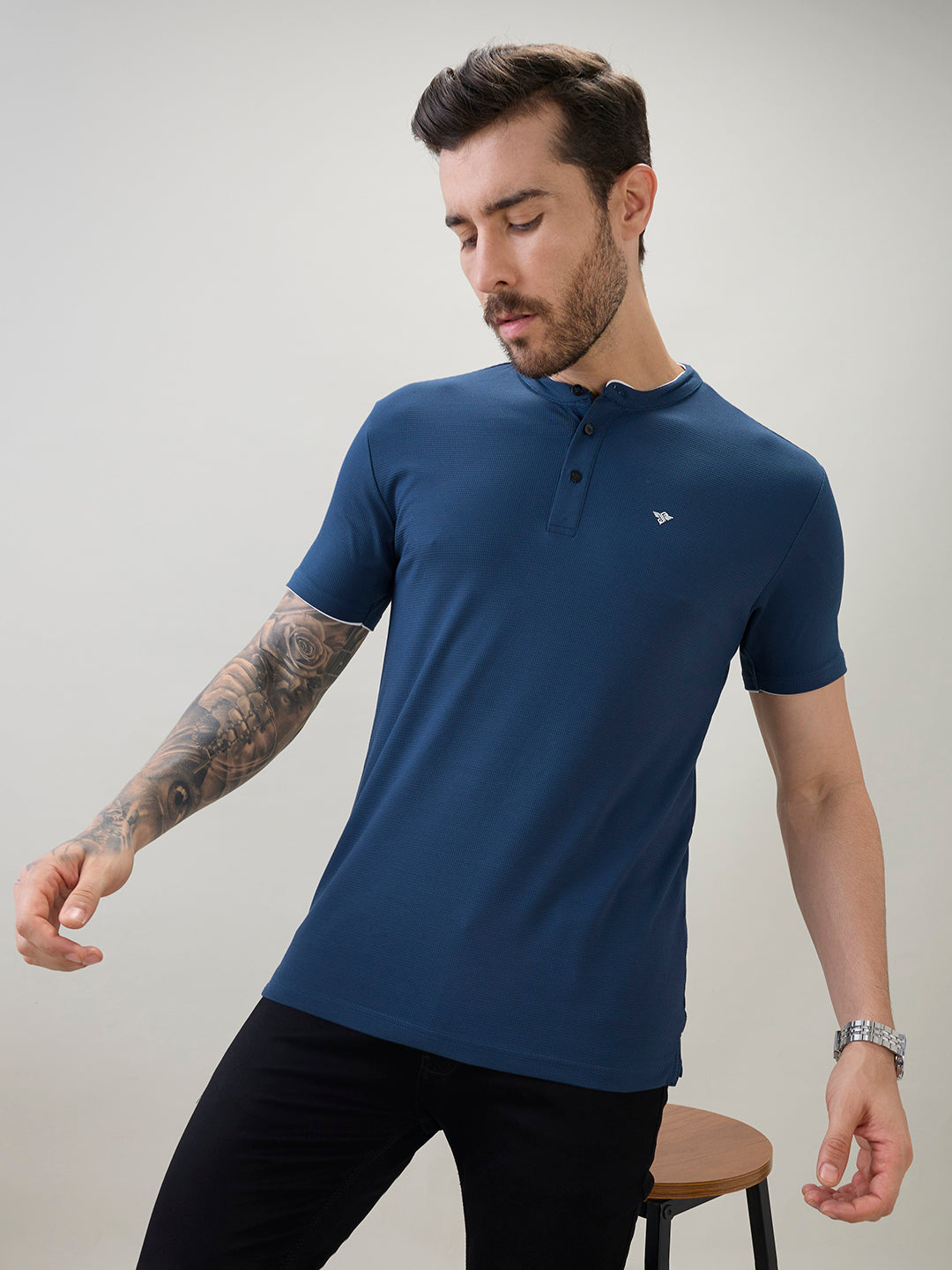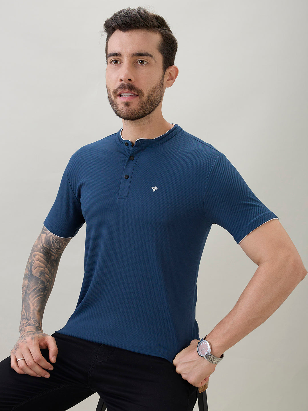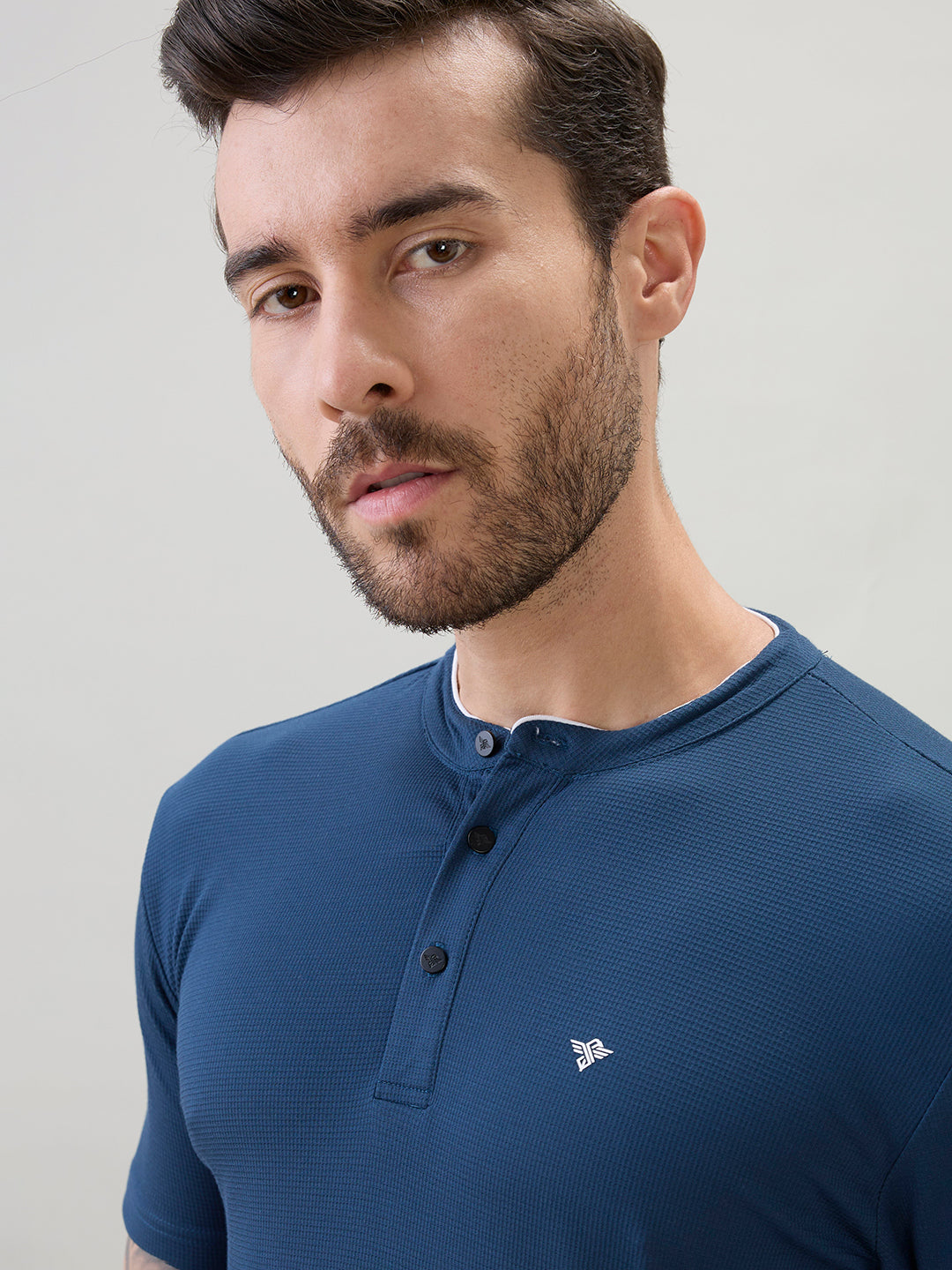 TEAL Men's Regular Fit Henley T-Shirt Half Slevees with Button Closure and Logo