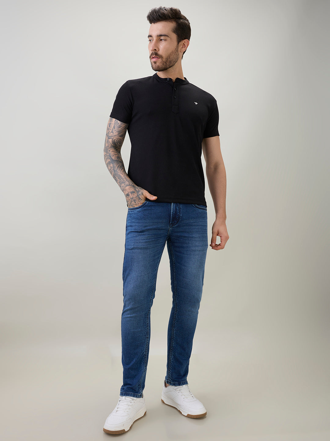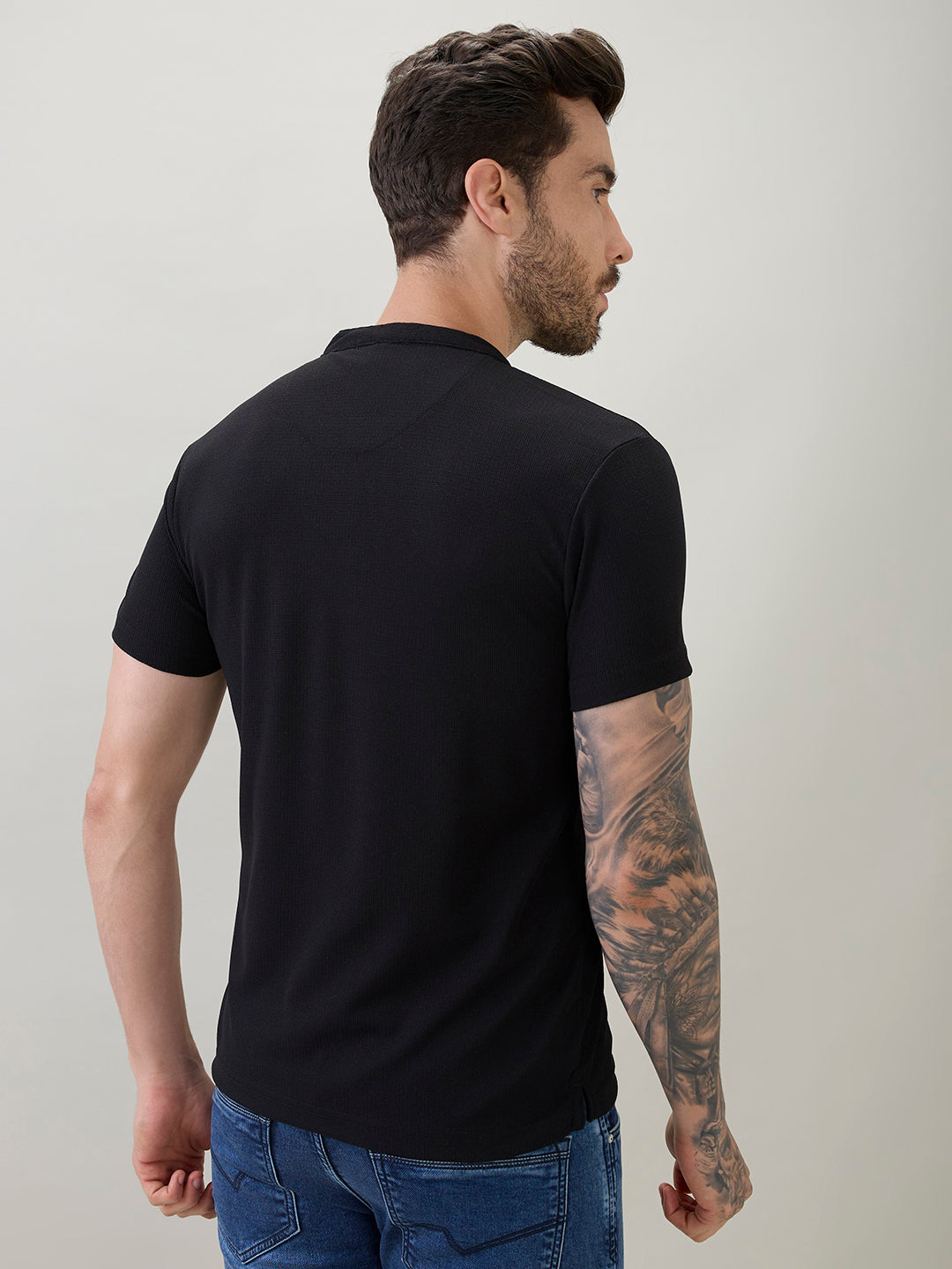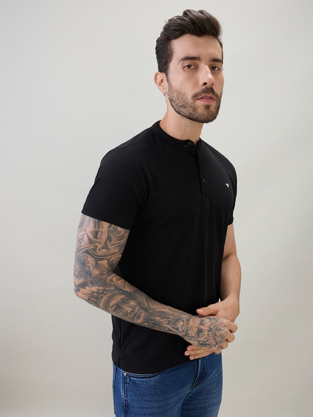 BLACK Men's Regular Fit Henley T-Shirt Half Slevees with Button Closure and Logo
