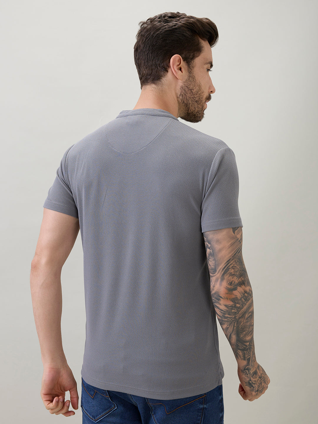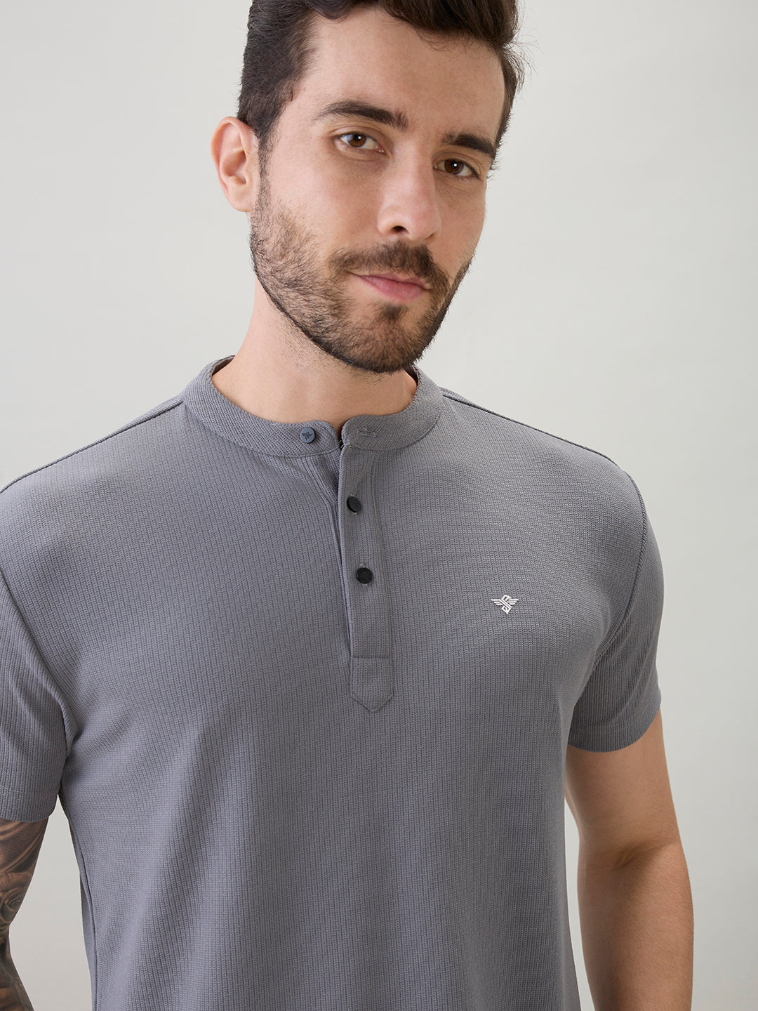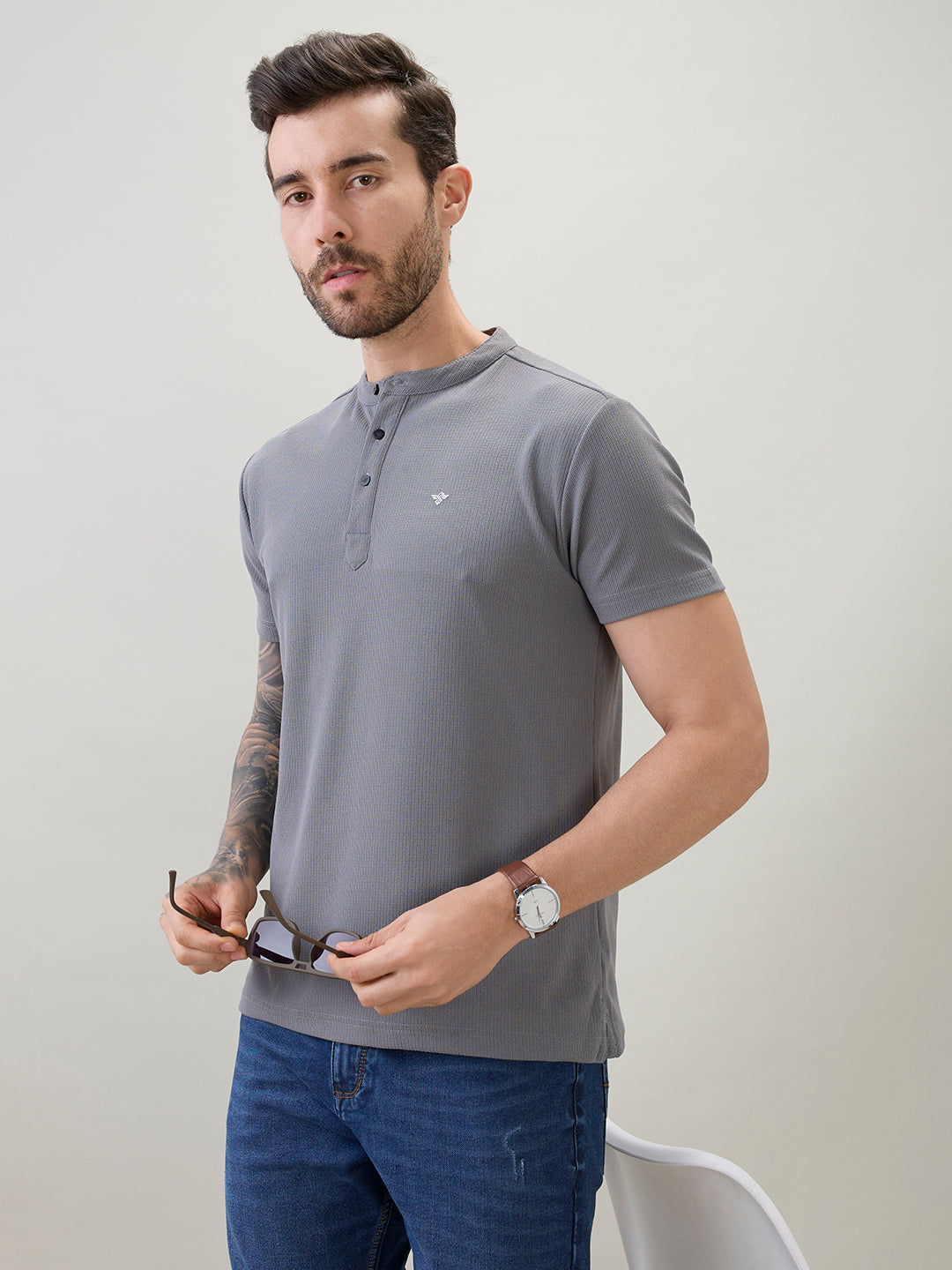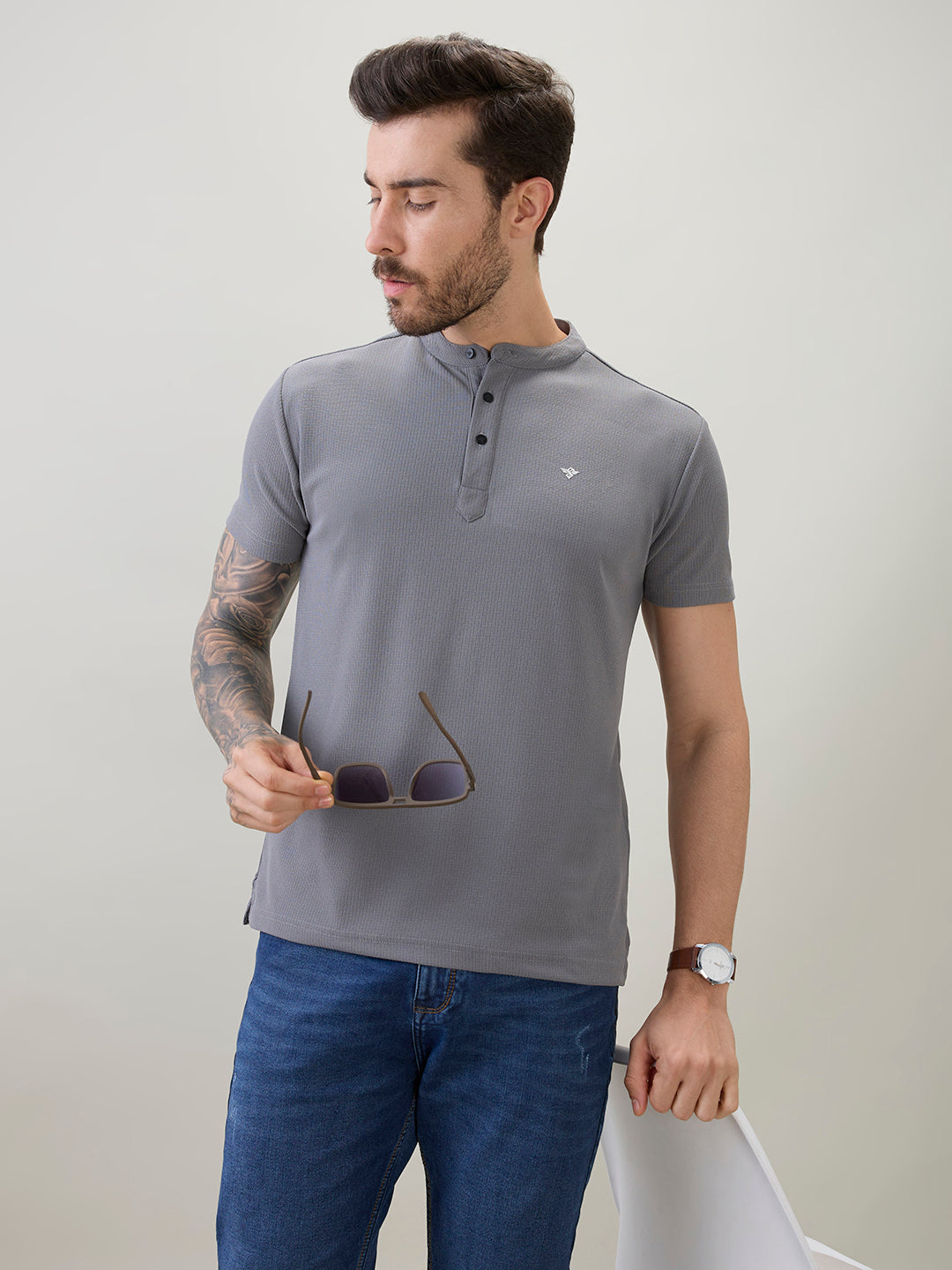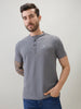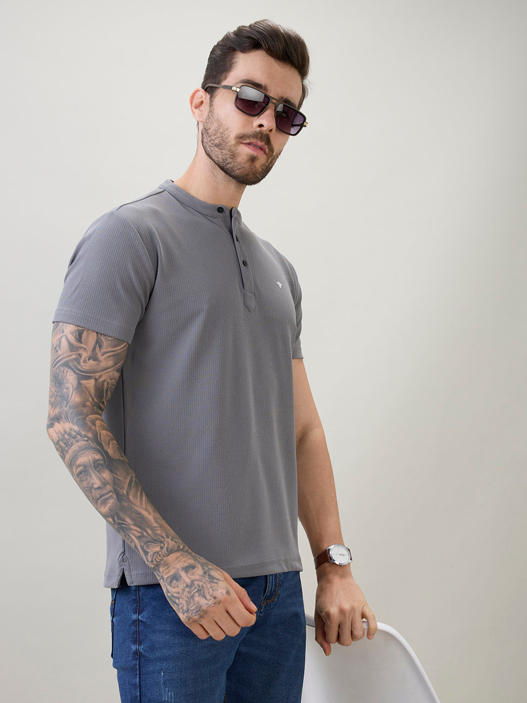 S.GREY Men's Regular Fit Henley T-Shirt Half Slevees with Button Closure and Logo