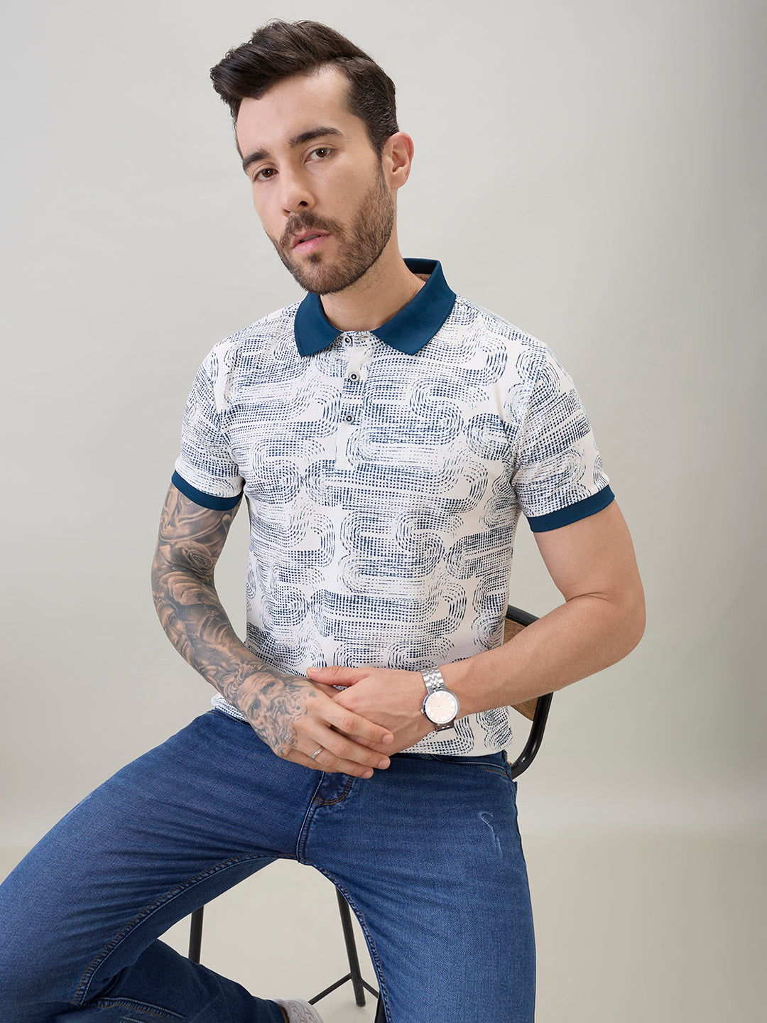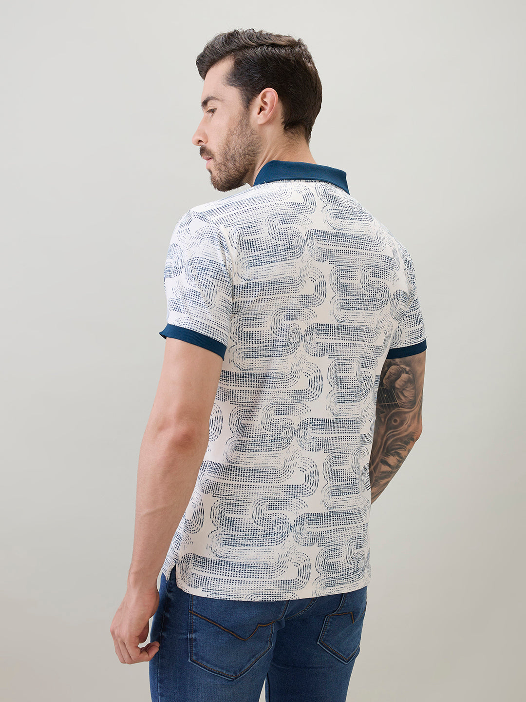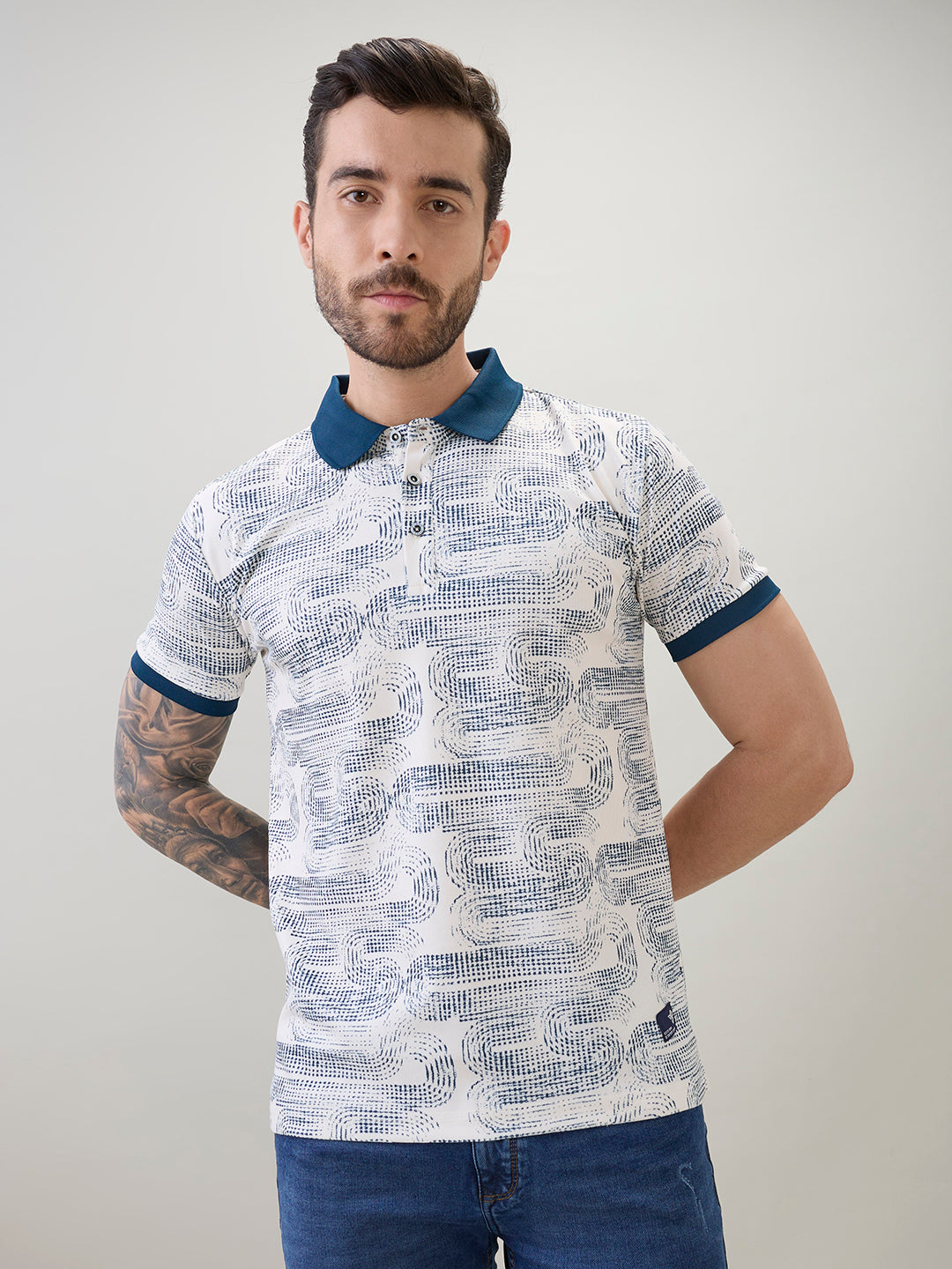 TEAL Men's Abstract Printed Regular Fit Half Sleeves Polo T-Shirt