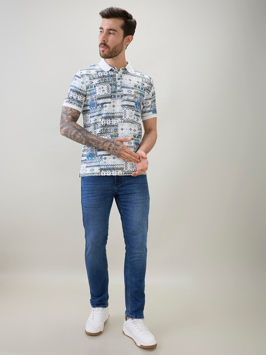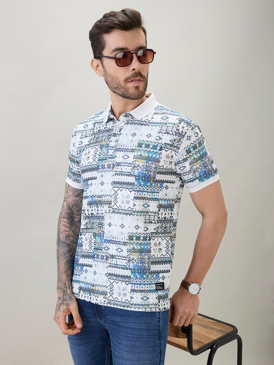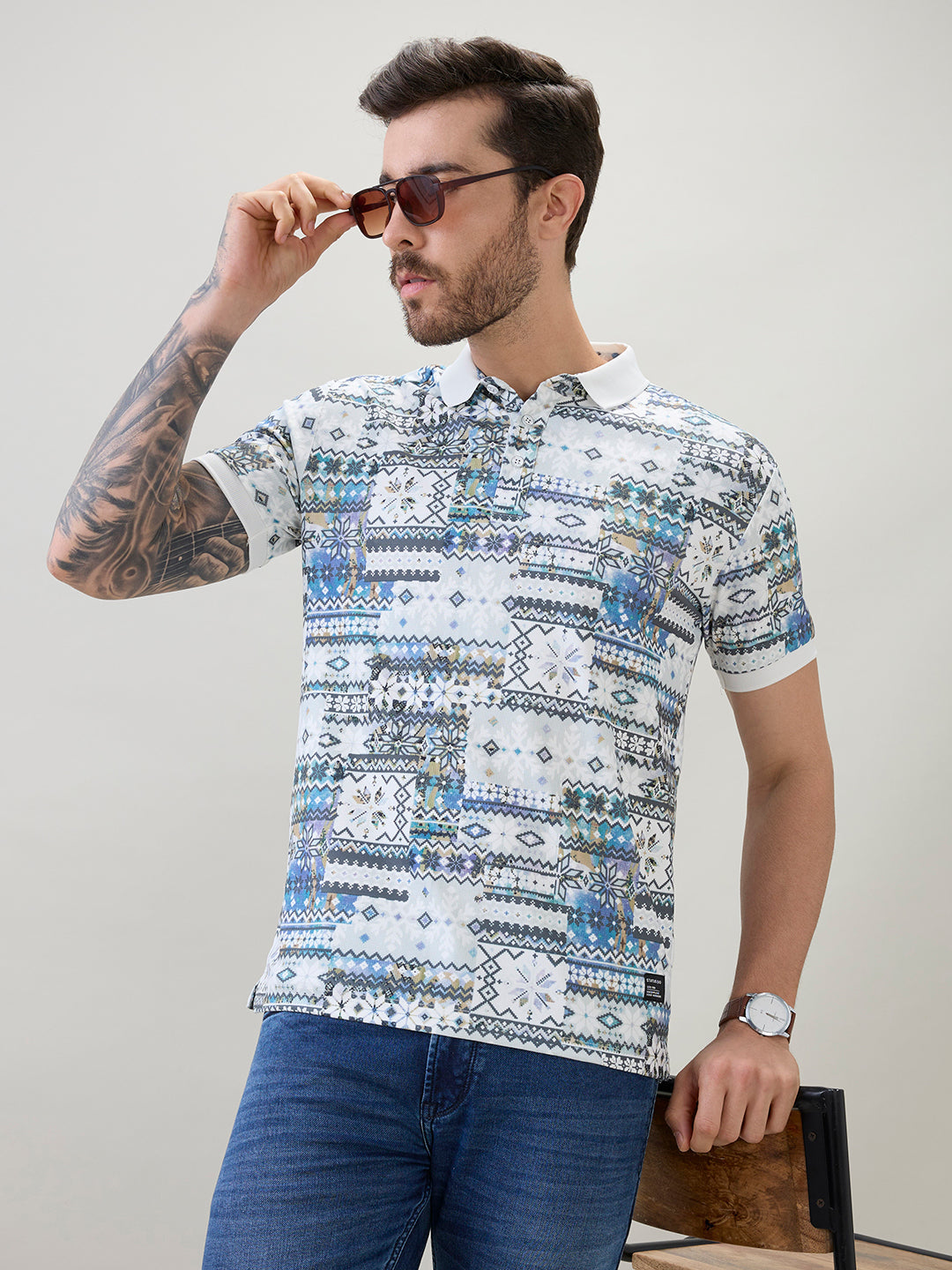 OLIVE Men's Geometric Printed Half Sleeves Regular Fit Polo T-Shirt