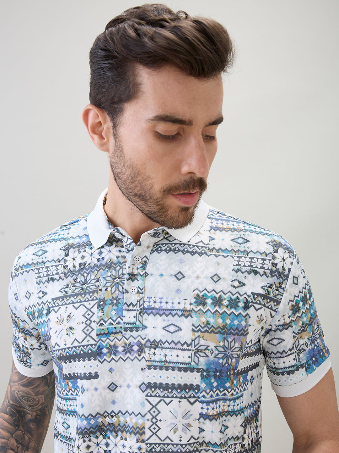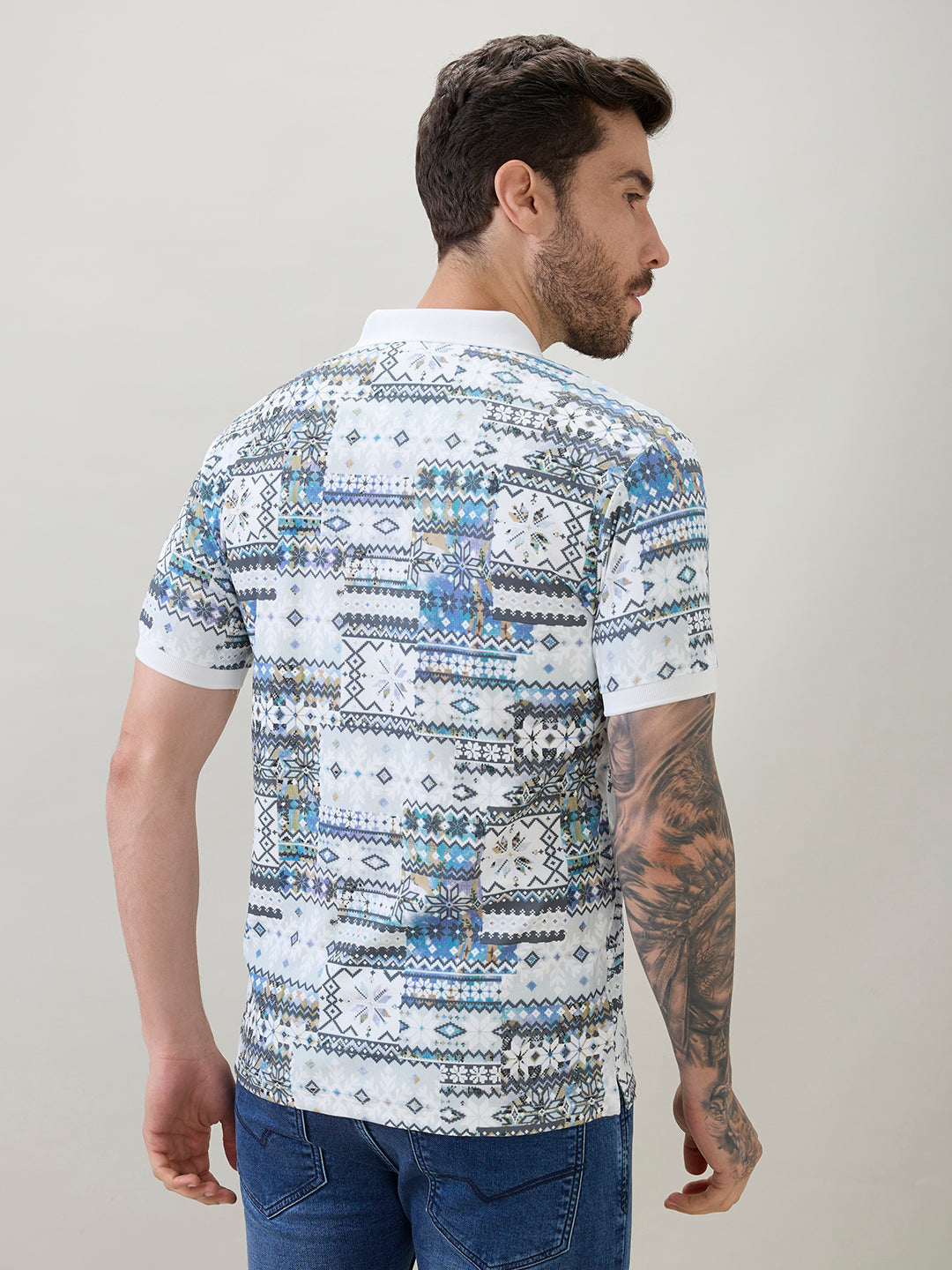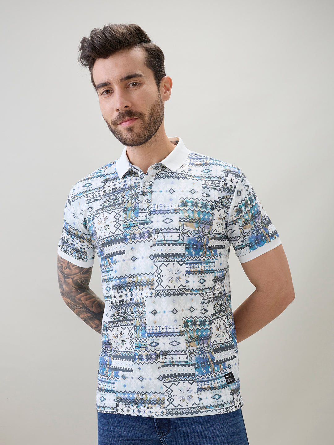 OLIVE Men's Geometric Printed Half Sleeves Regular Fit Polo T-Shirt