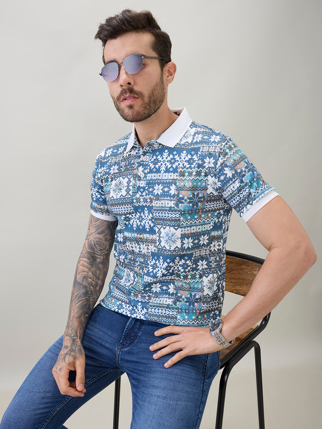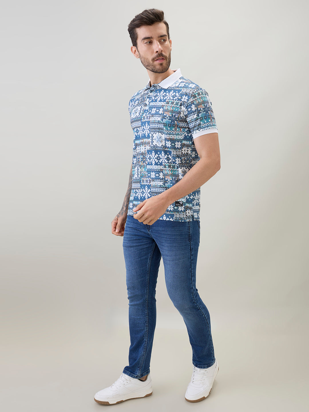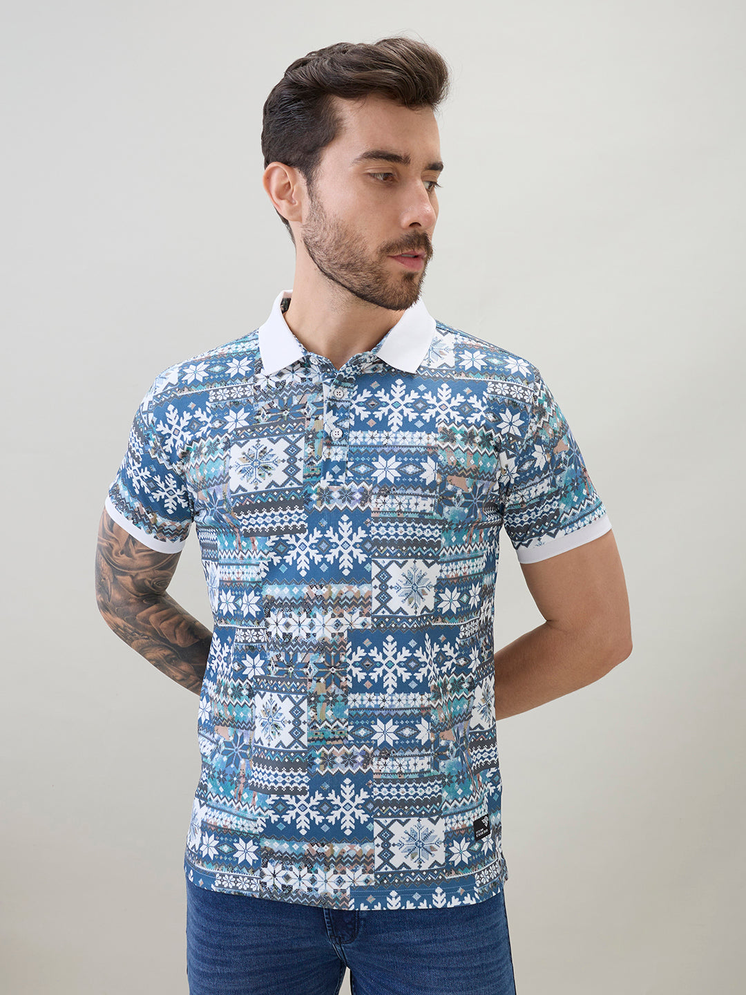 TEAL Men's Geometric Printed Half Sleeves Regular Fit Polo T-Shirt