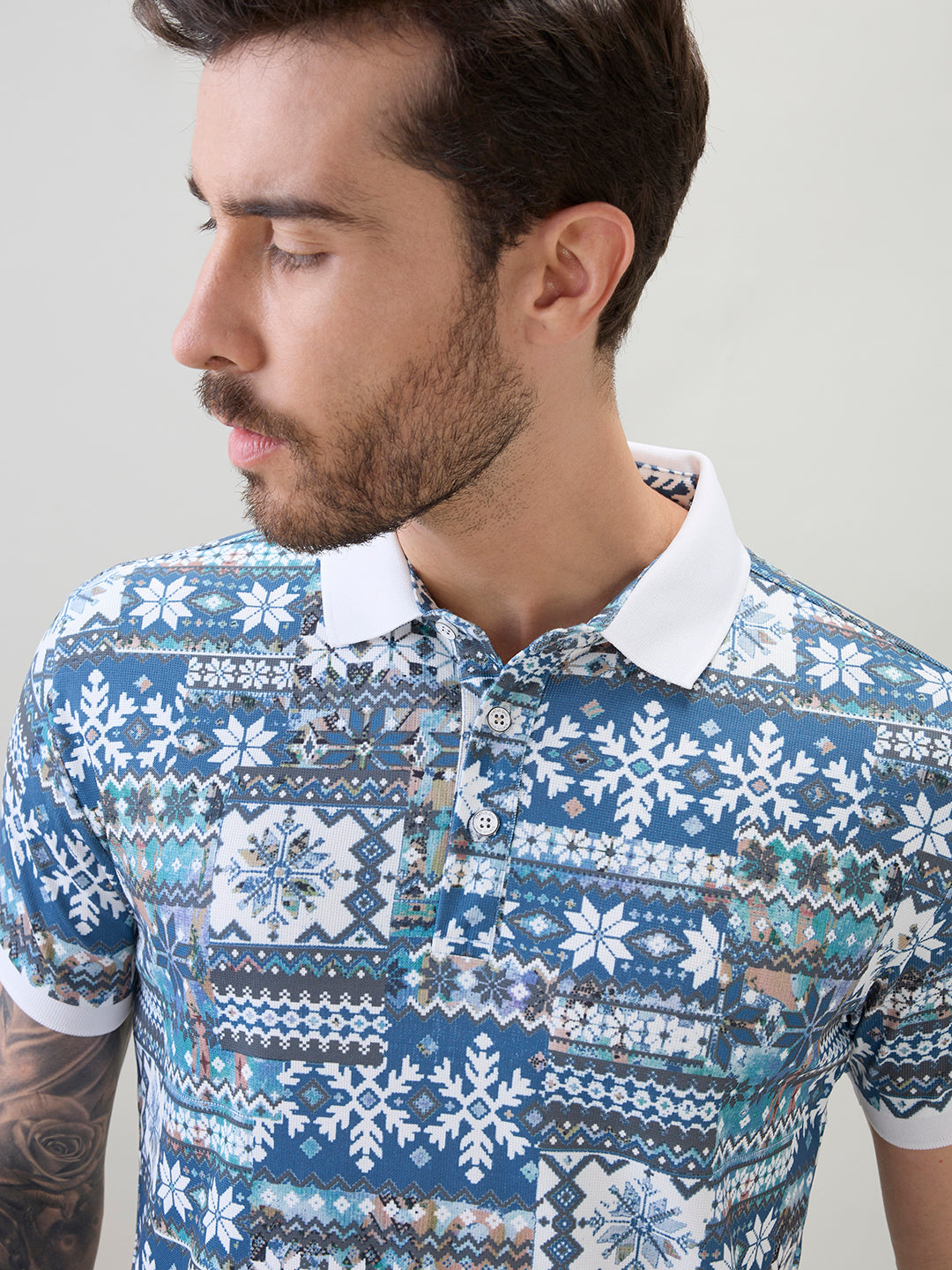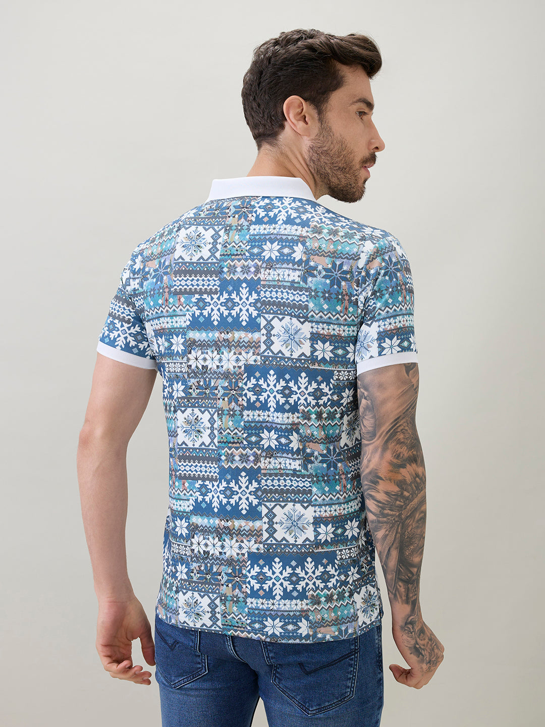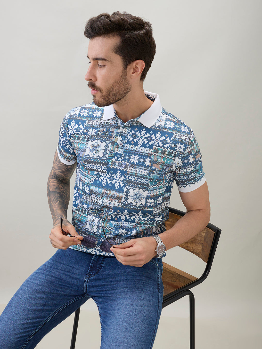 TEAL Men's Geometric Printed Half Sleeves Regular Fit Polo T-Shirt