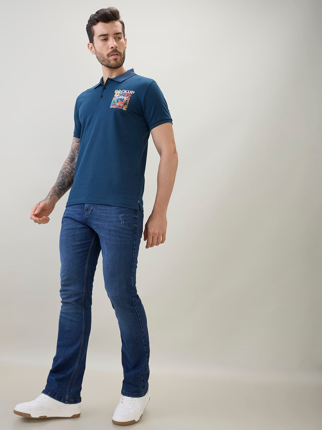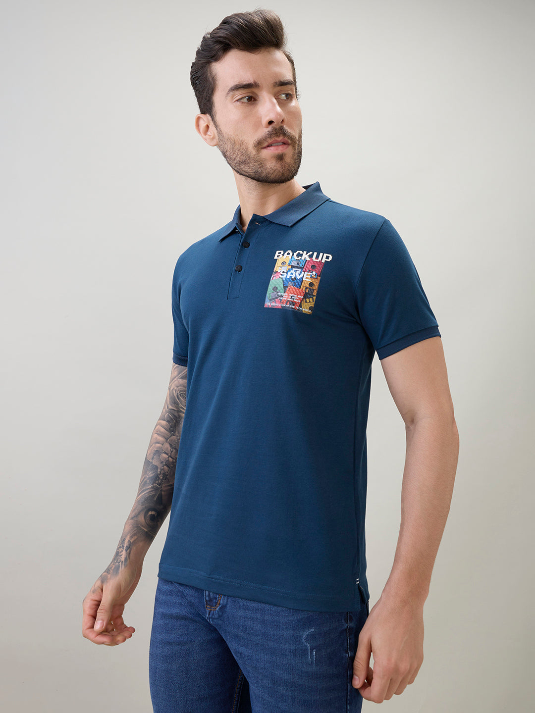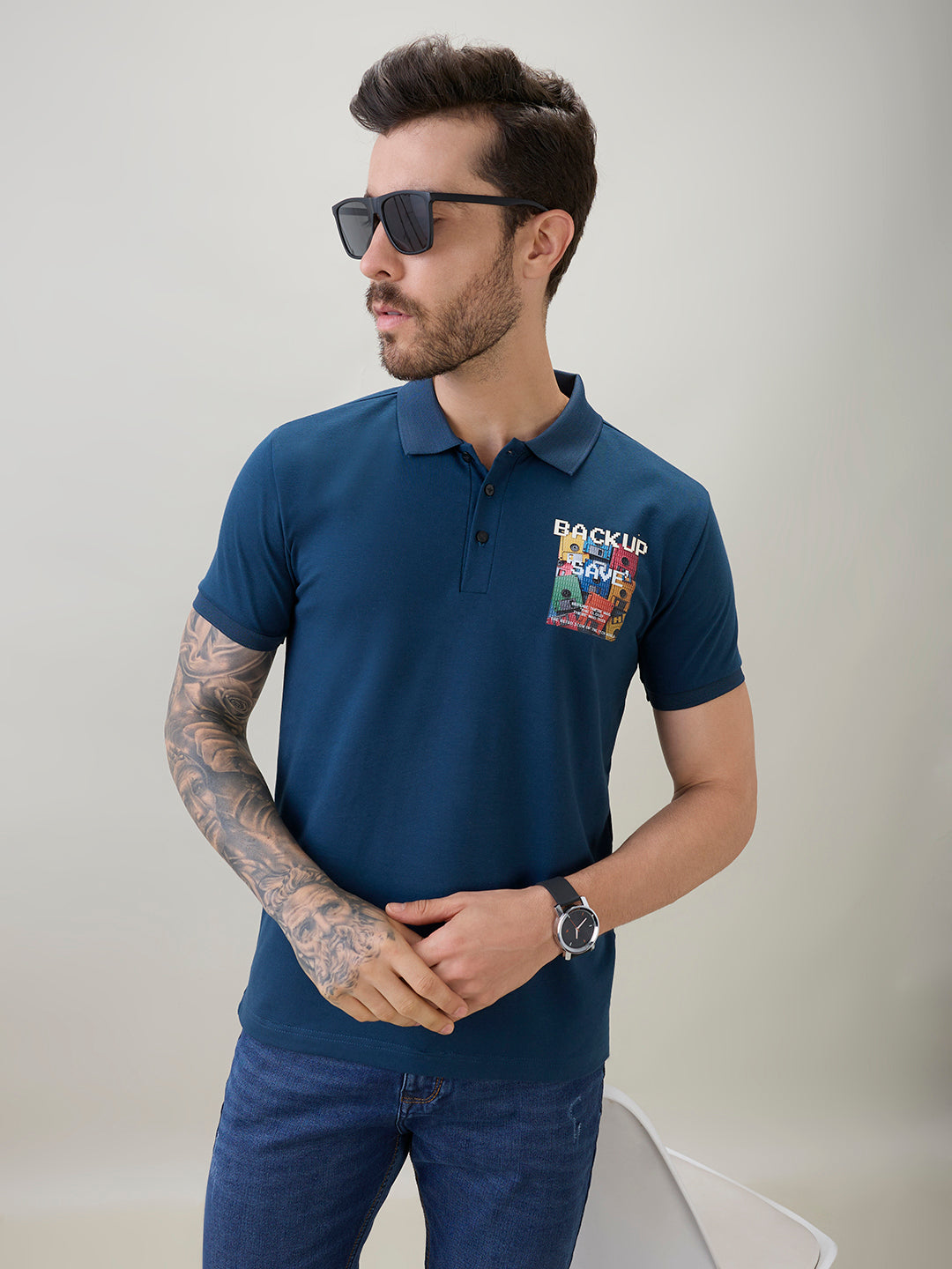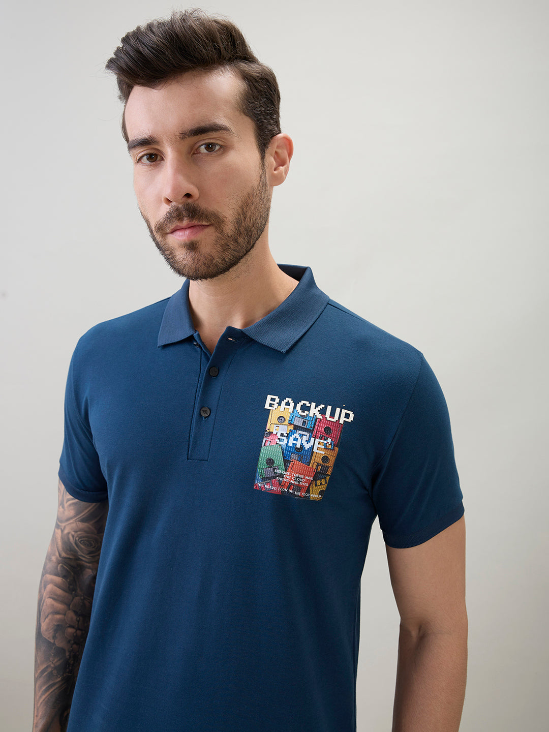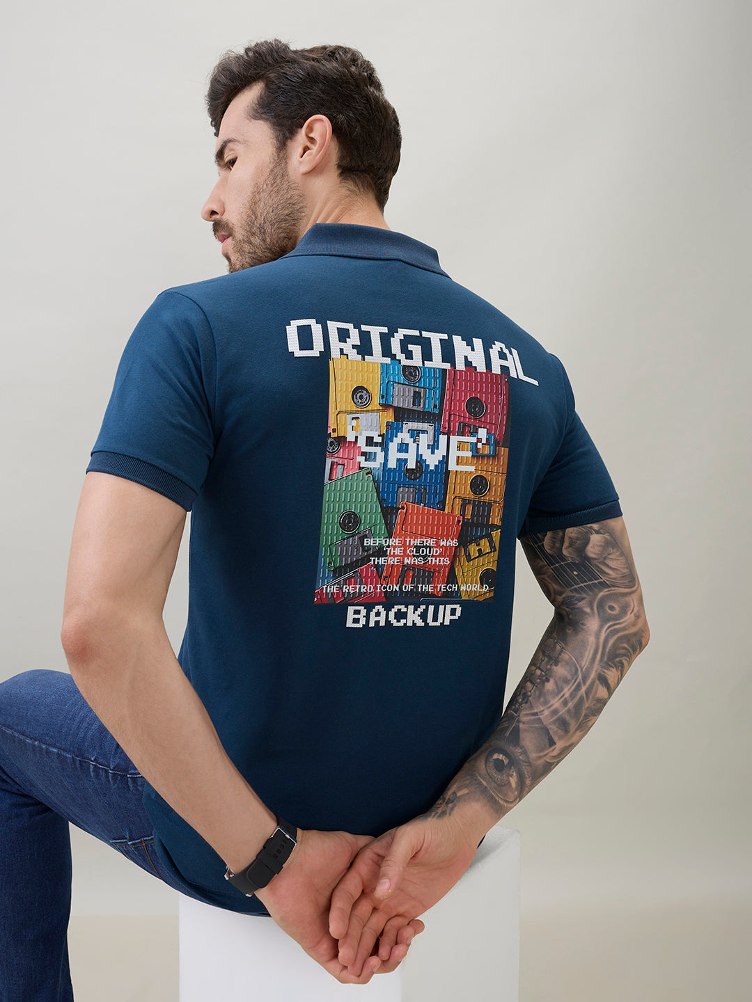 NAVY Men's Back Graphic Print Polo Collar Regular Fit Half Sleeve T-Shirt