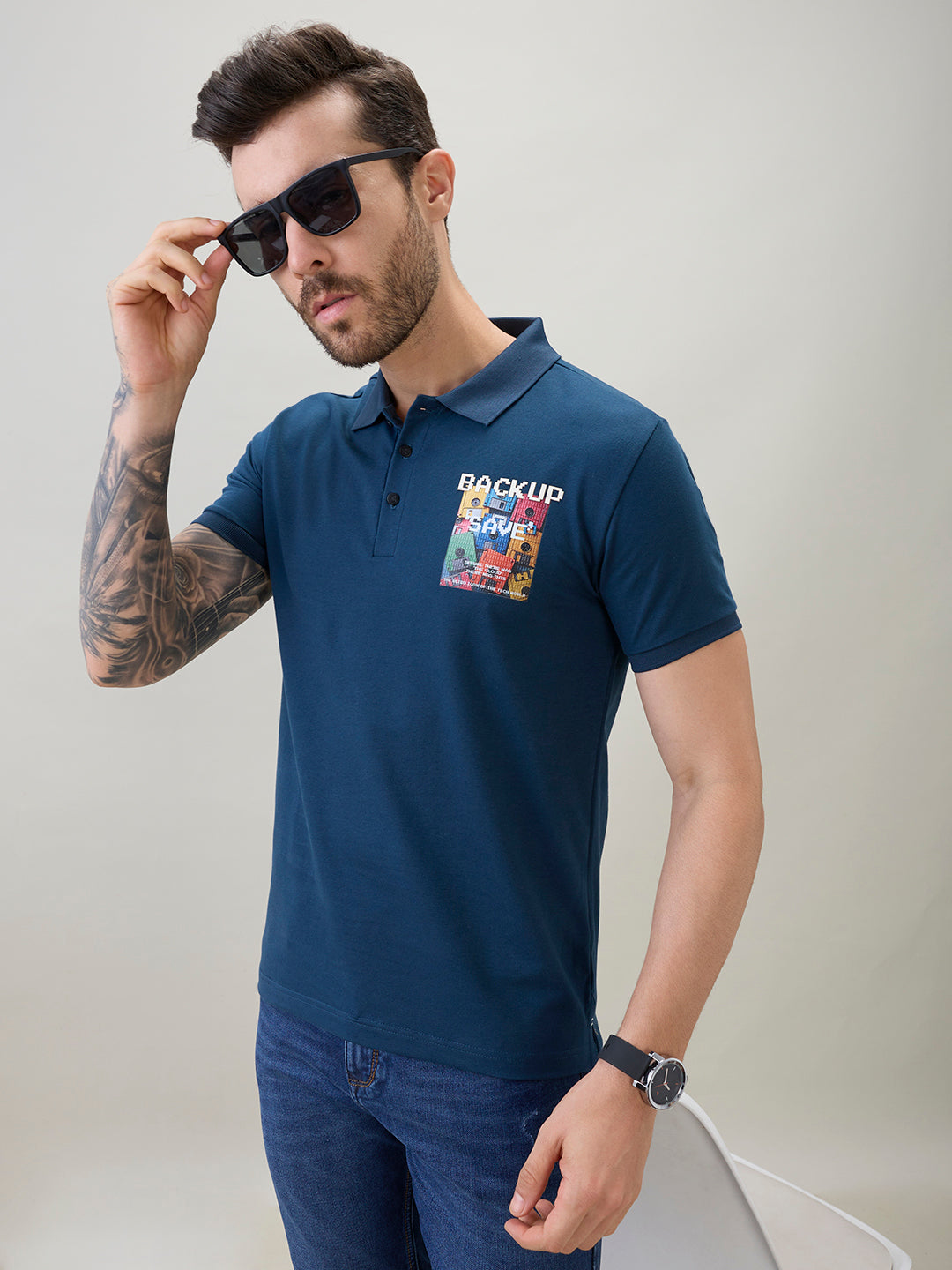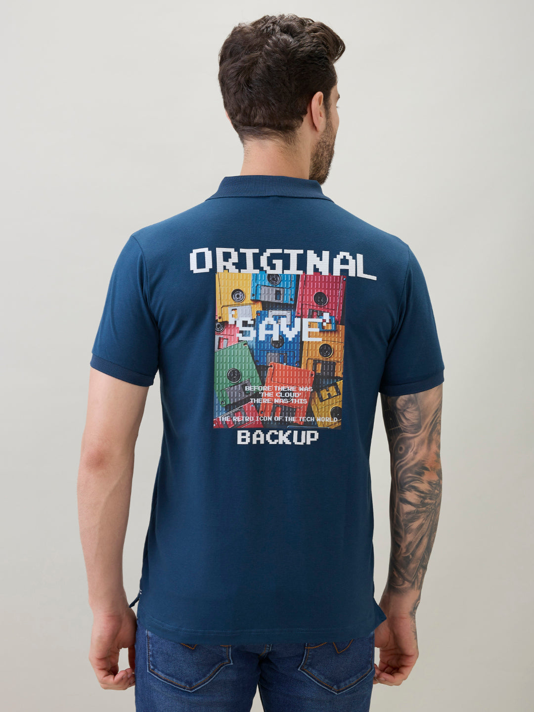 NAVY Men's Back Graphic Print Polo Collar Regular Fit Half Sleeve T-Shirt