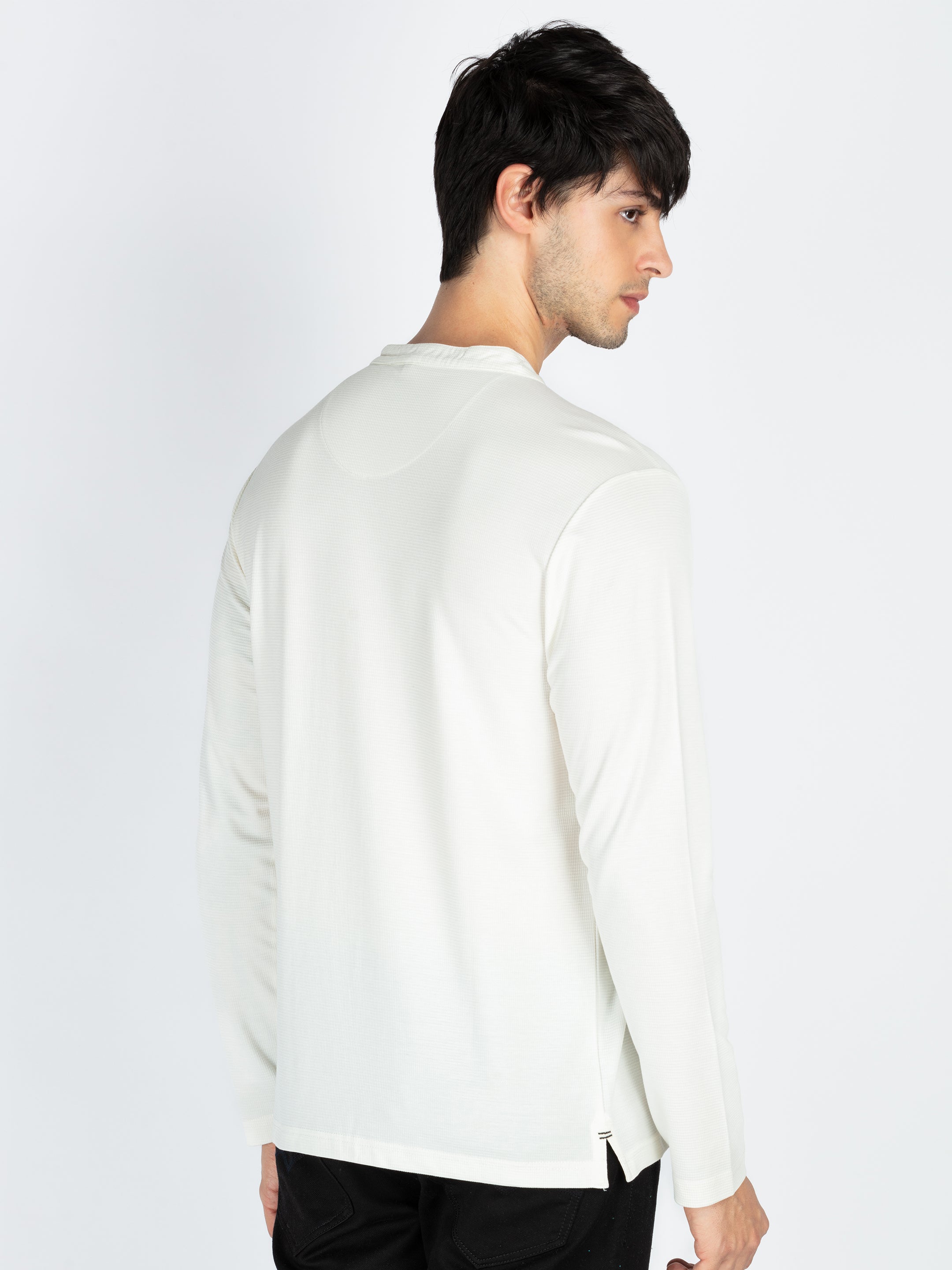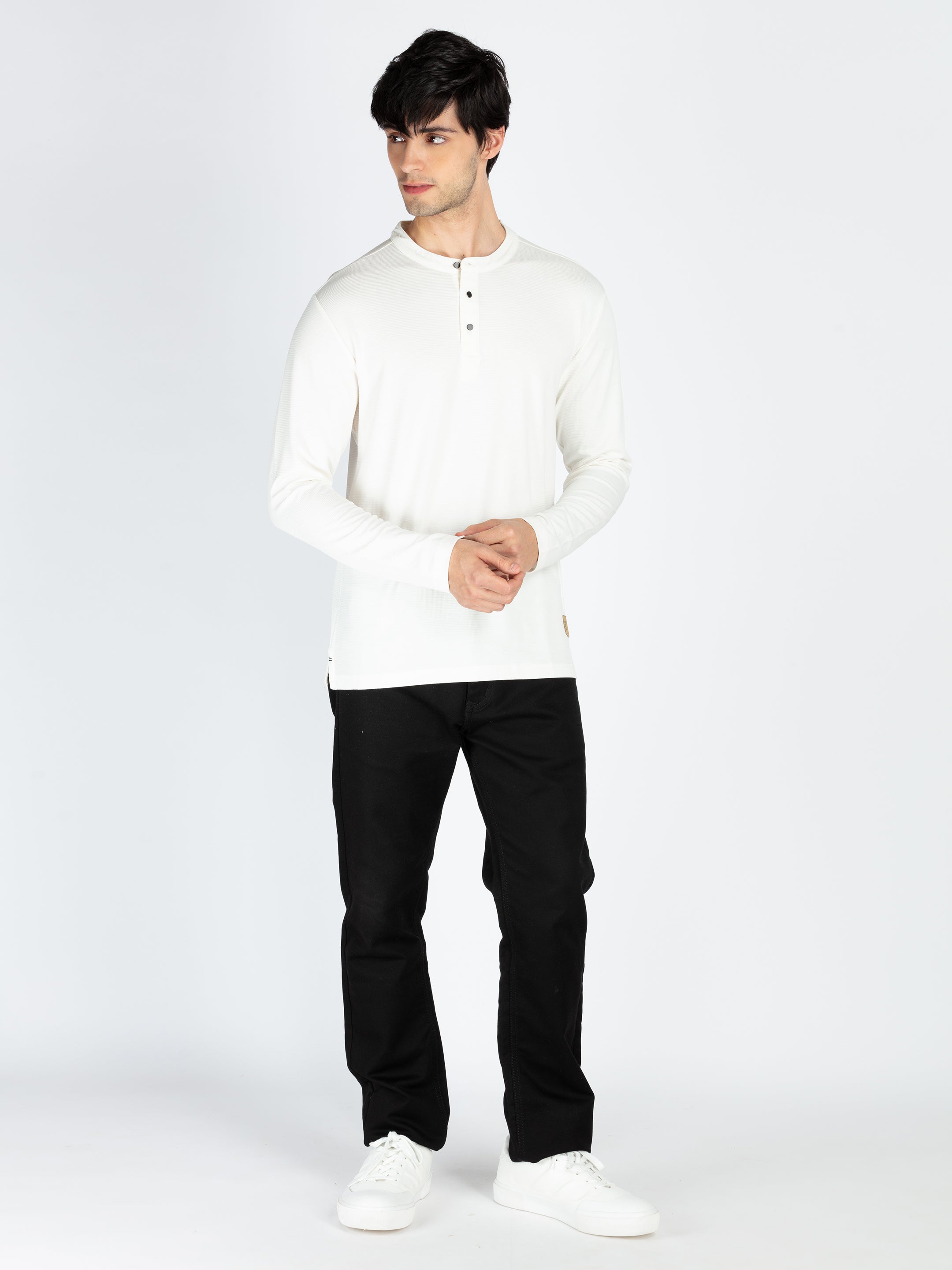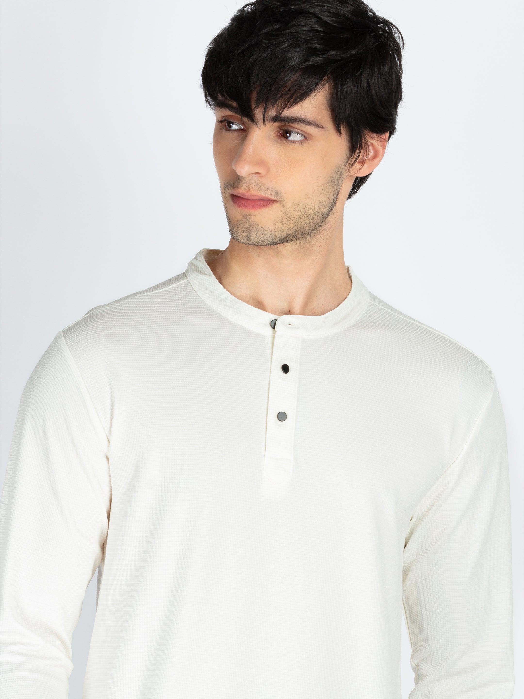 Off White Mens Solid Henley Neck Full Sleeve T-Shirt