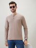 BEIGE Men's Solid Henley Neck Regular Fit Full Sleeve T-Shirt with Logo