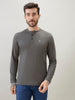 DK.OLIVE Men's Solid Henley Neck Regular Fit Full Sleeve T-Shirt with Logo