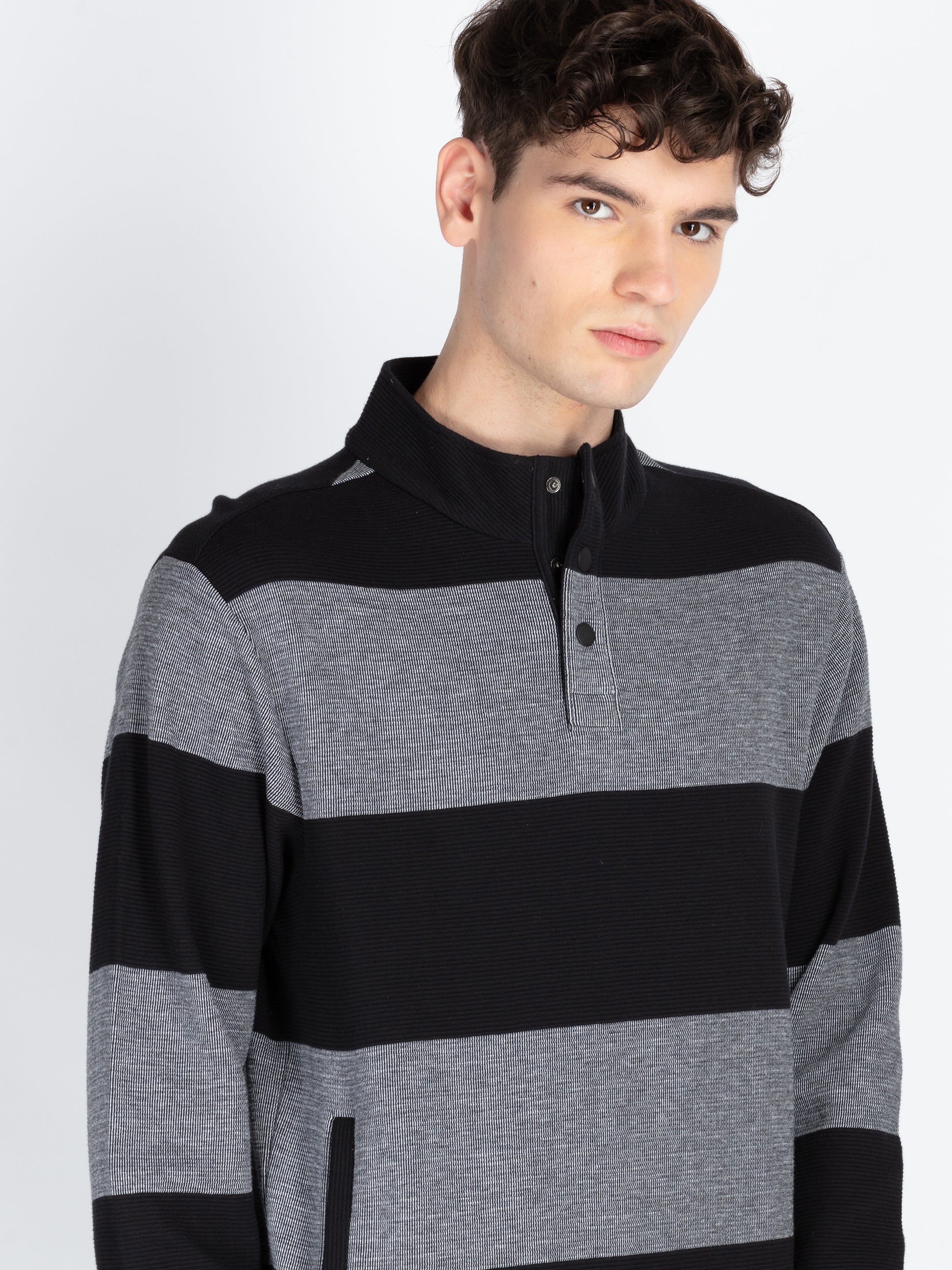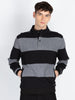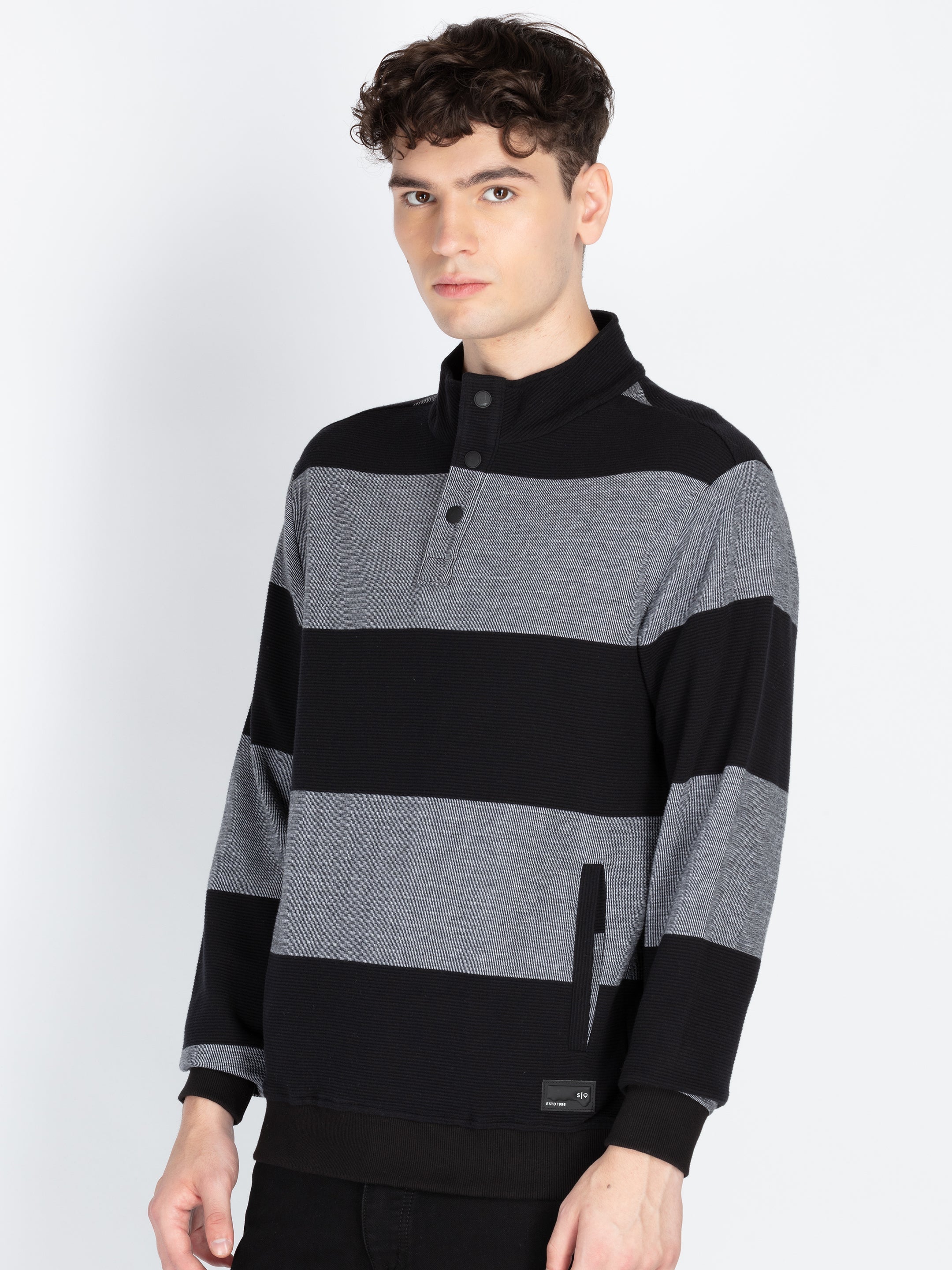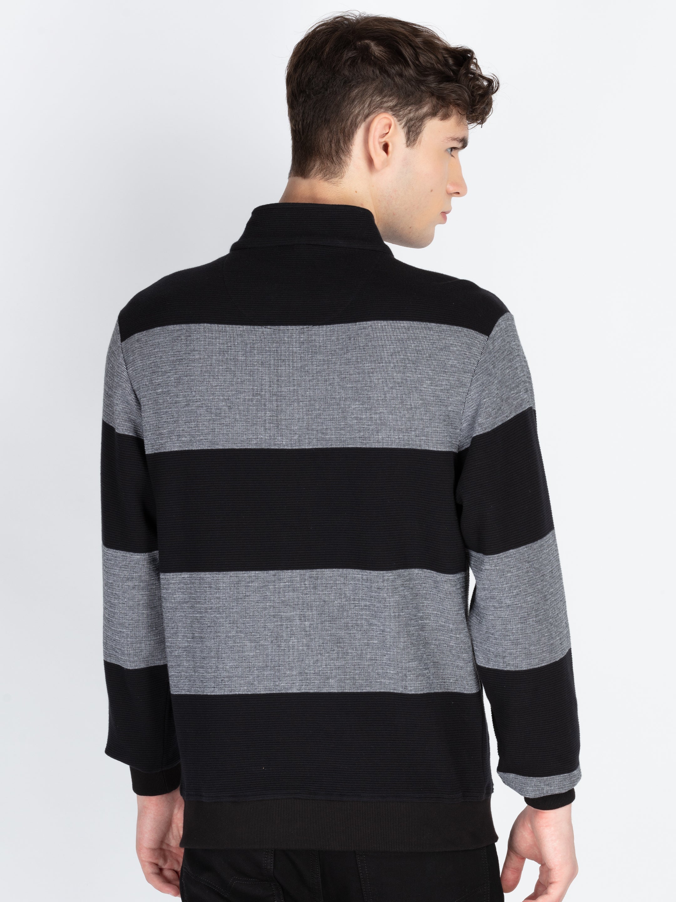 BLACK Men's Striped Knitted Regular Fit Winter Sweatshirt With High Neck and Full Sleeves.
