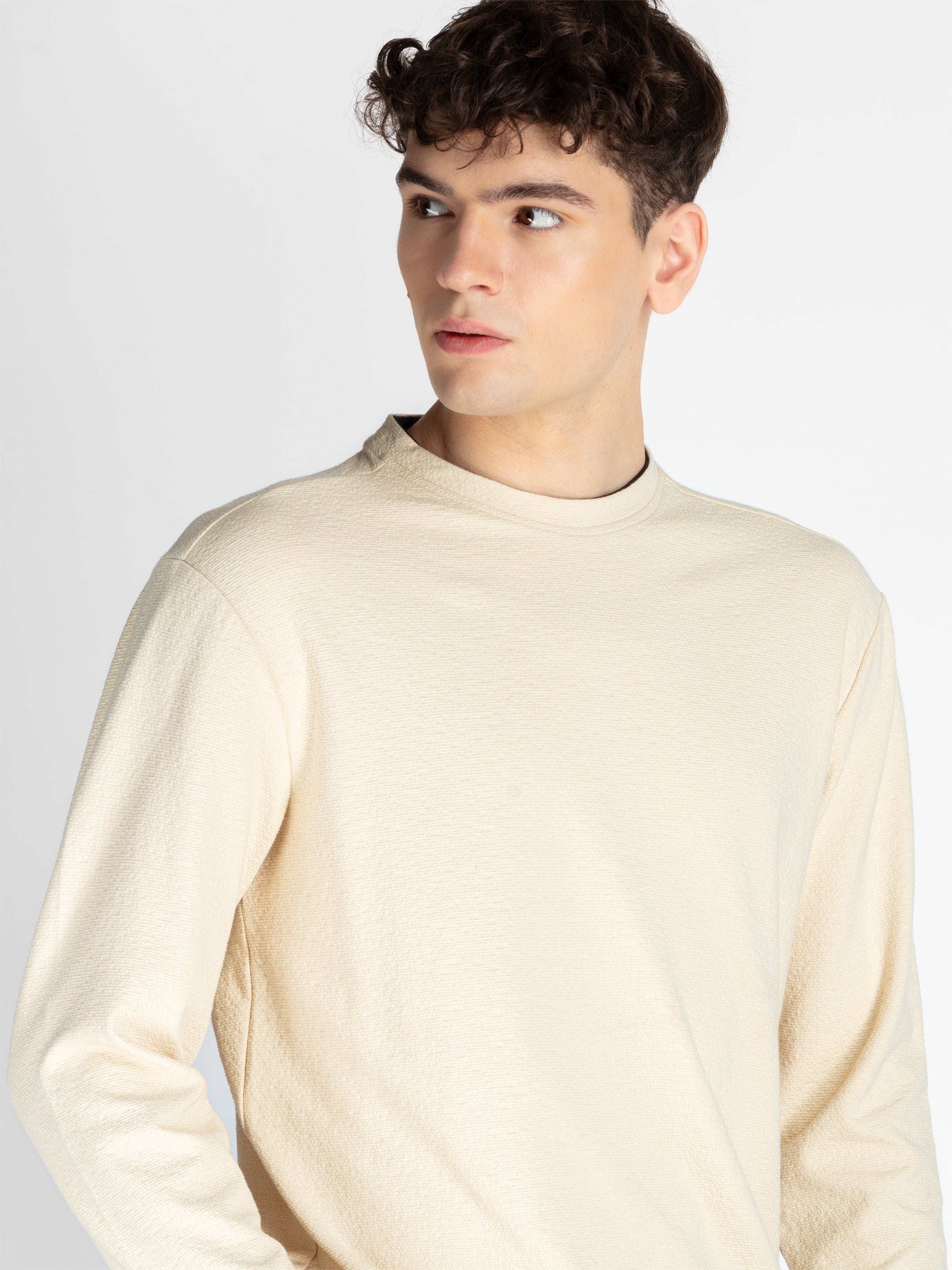 OFF WHITE Lightweight Sweatshirt Has Round Neck With Full Sleeves.