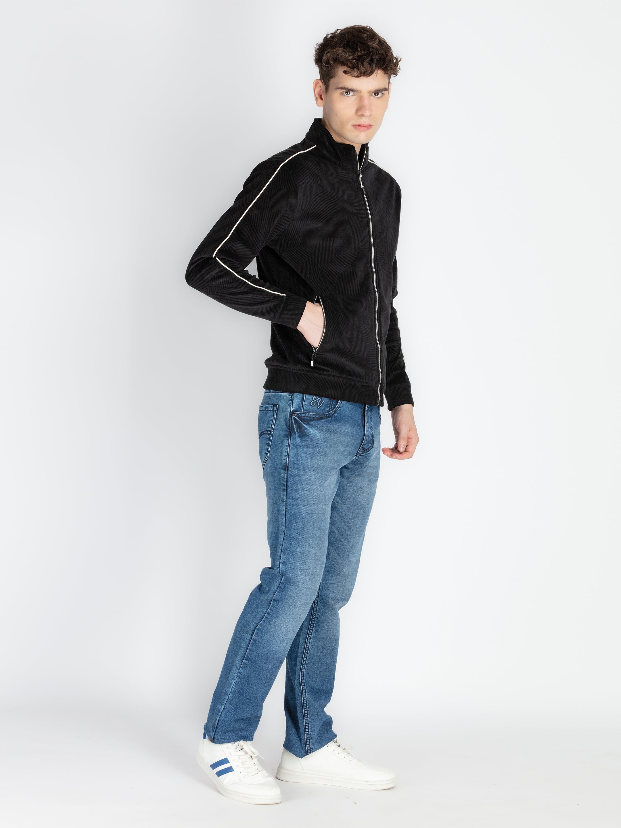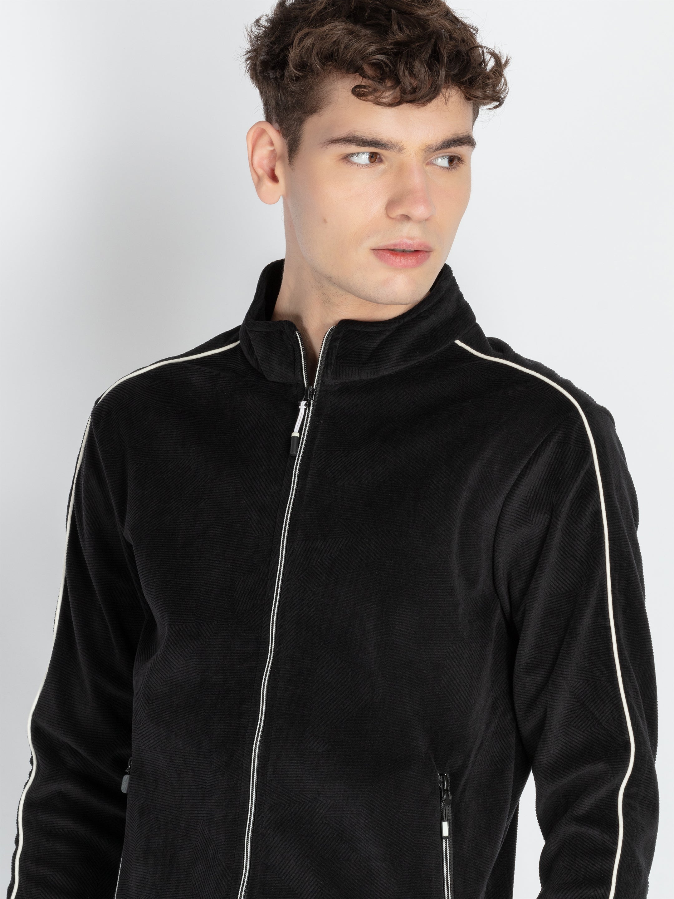 BLACK Lightweight Sweatshirt Has High Neck With Full Sleeves.