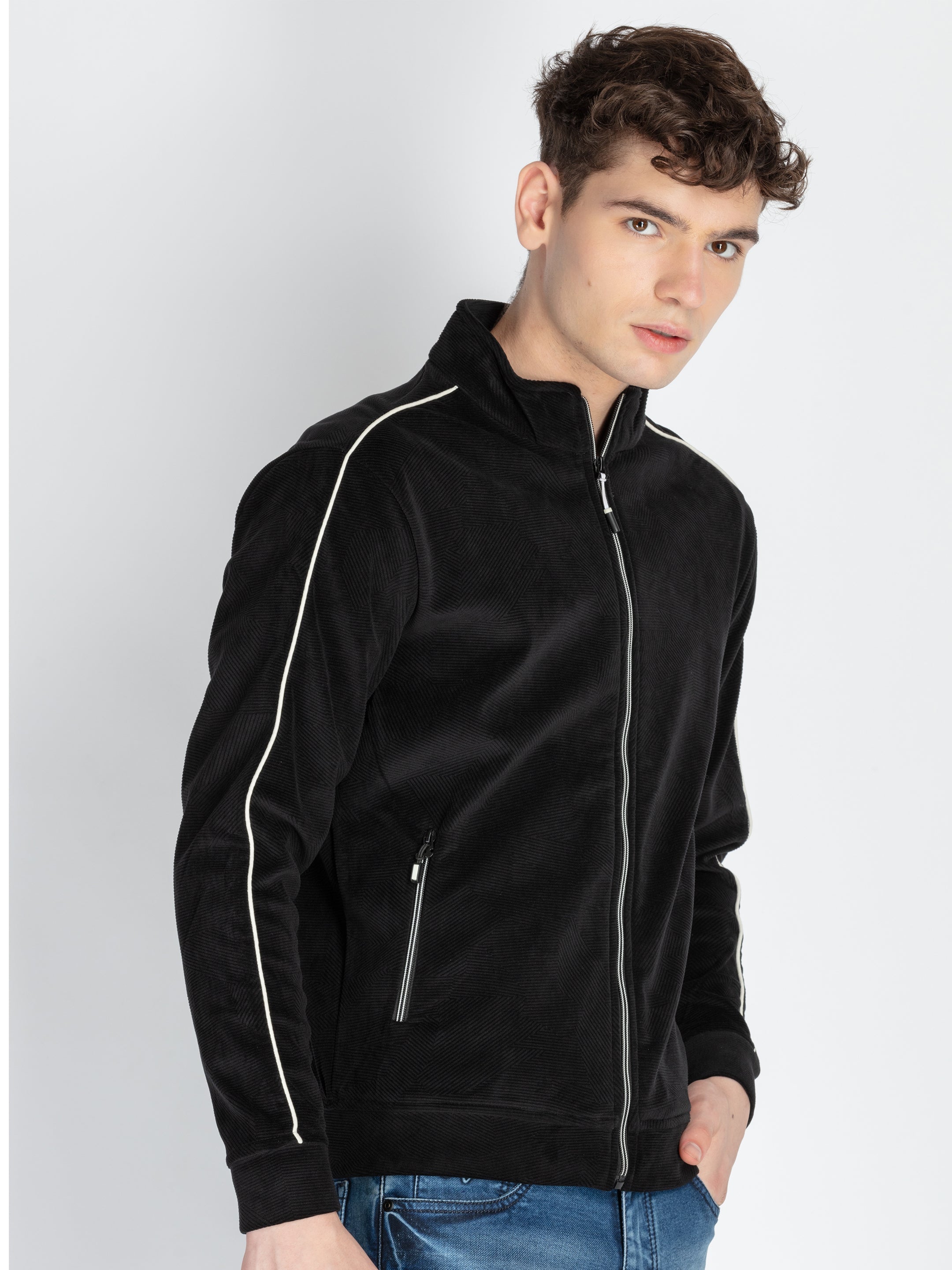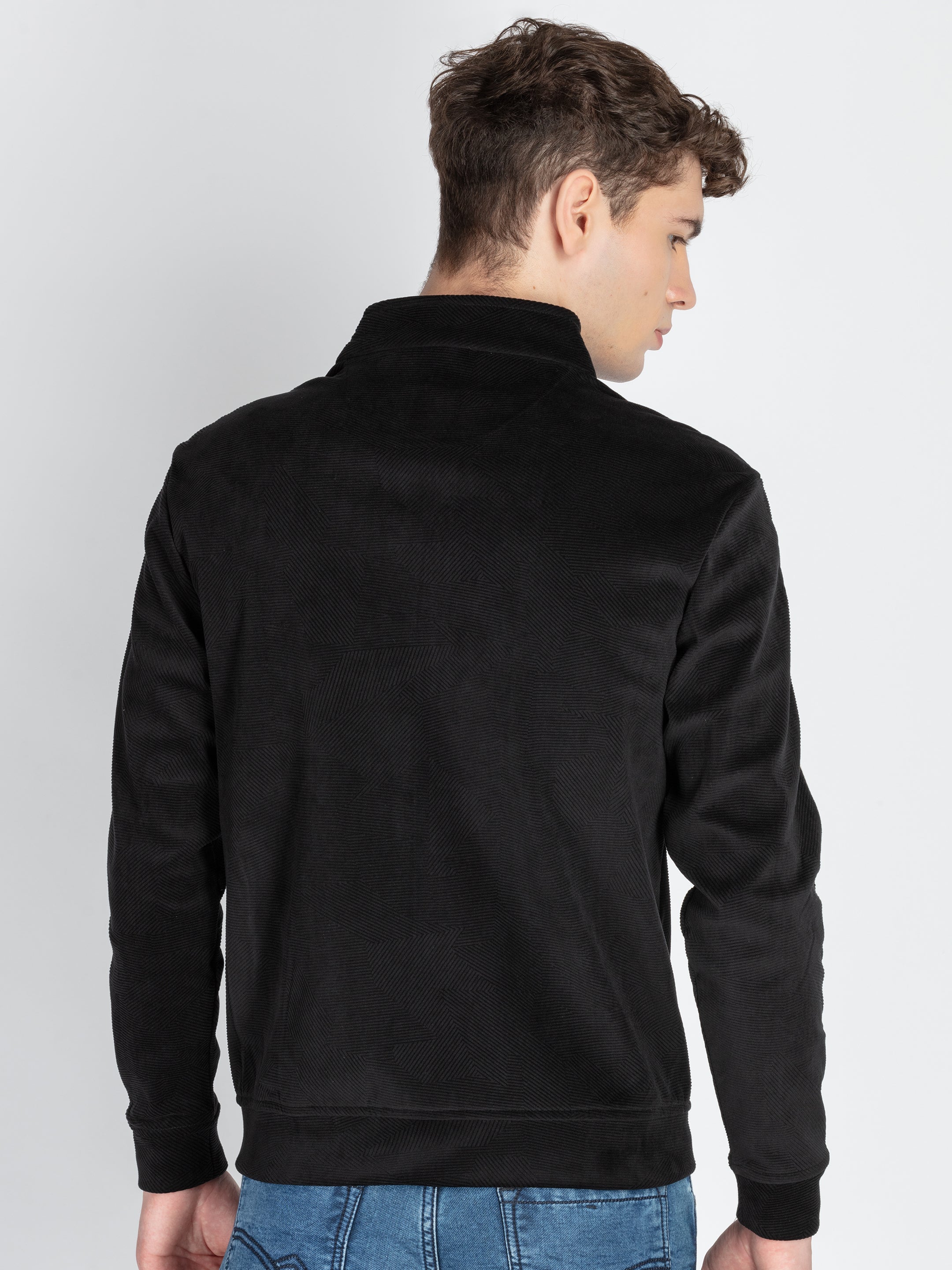 BLACK Lightweight Sweatshirt Has High Neck With Full Sleeves.