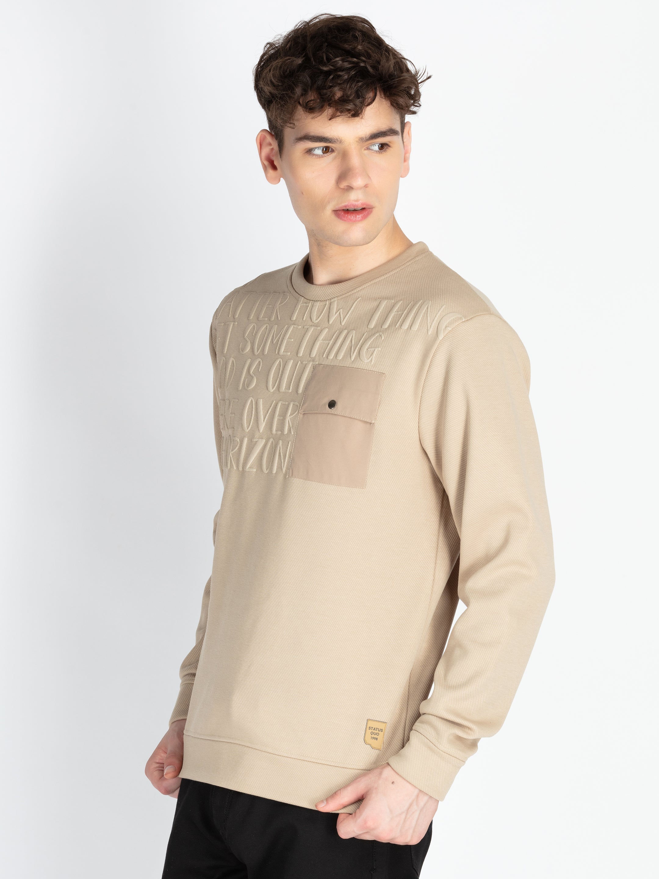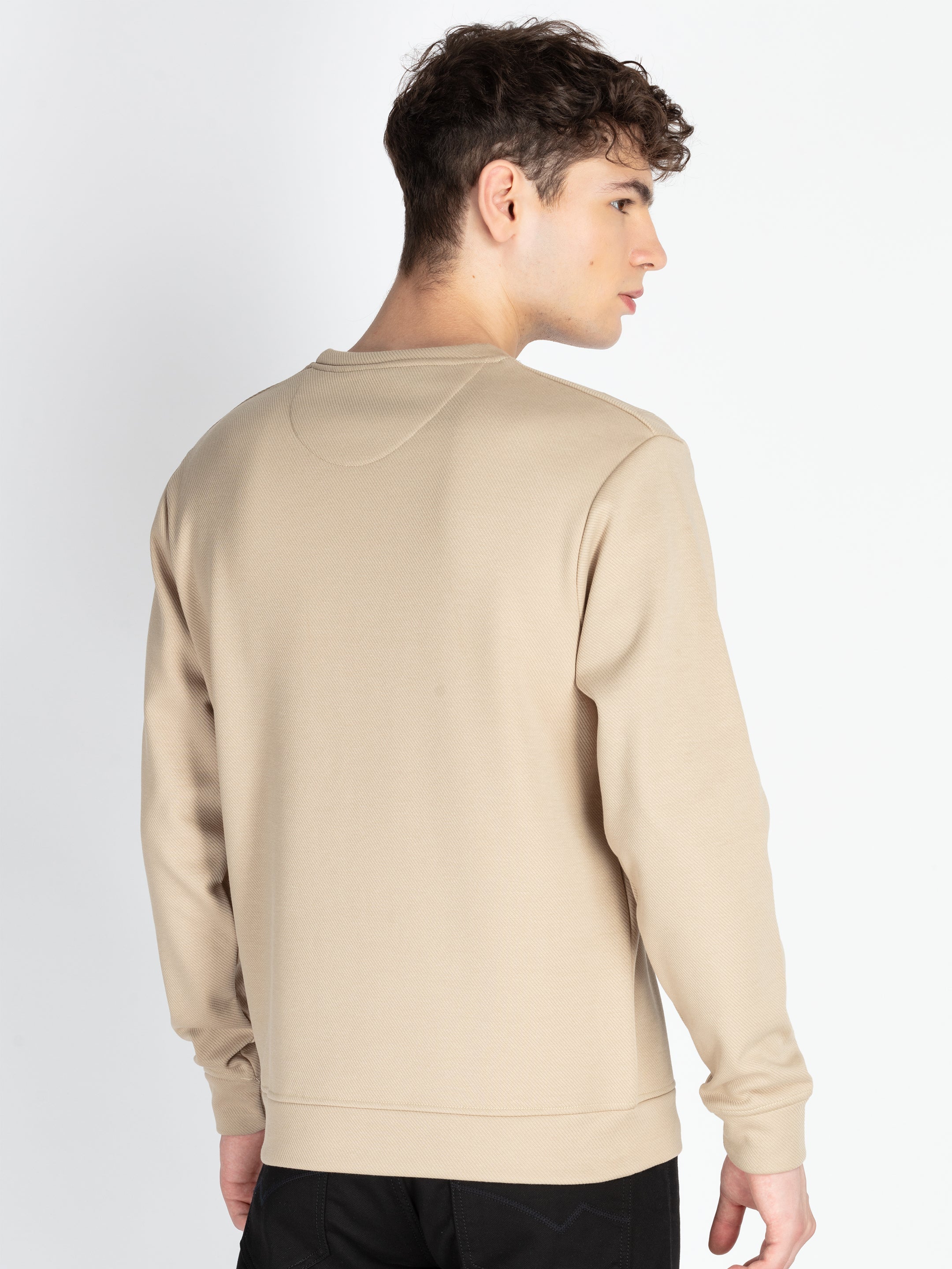 BEIGE Lightweight Sweatshirt Has Round Neck With Full Sleeves.