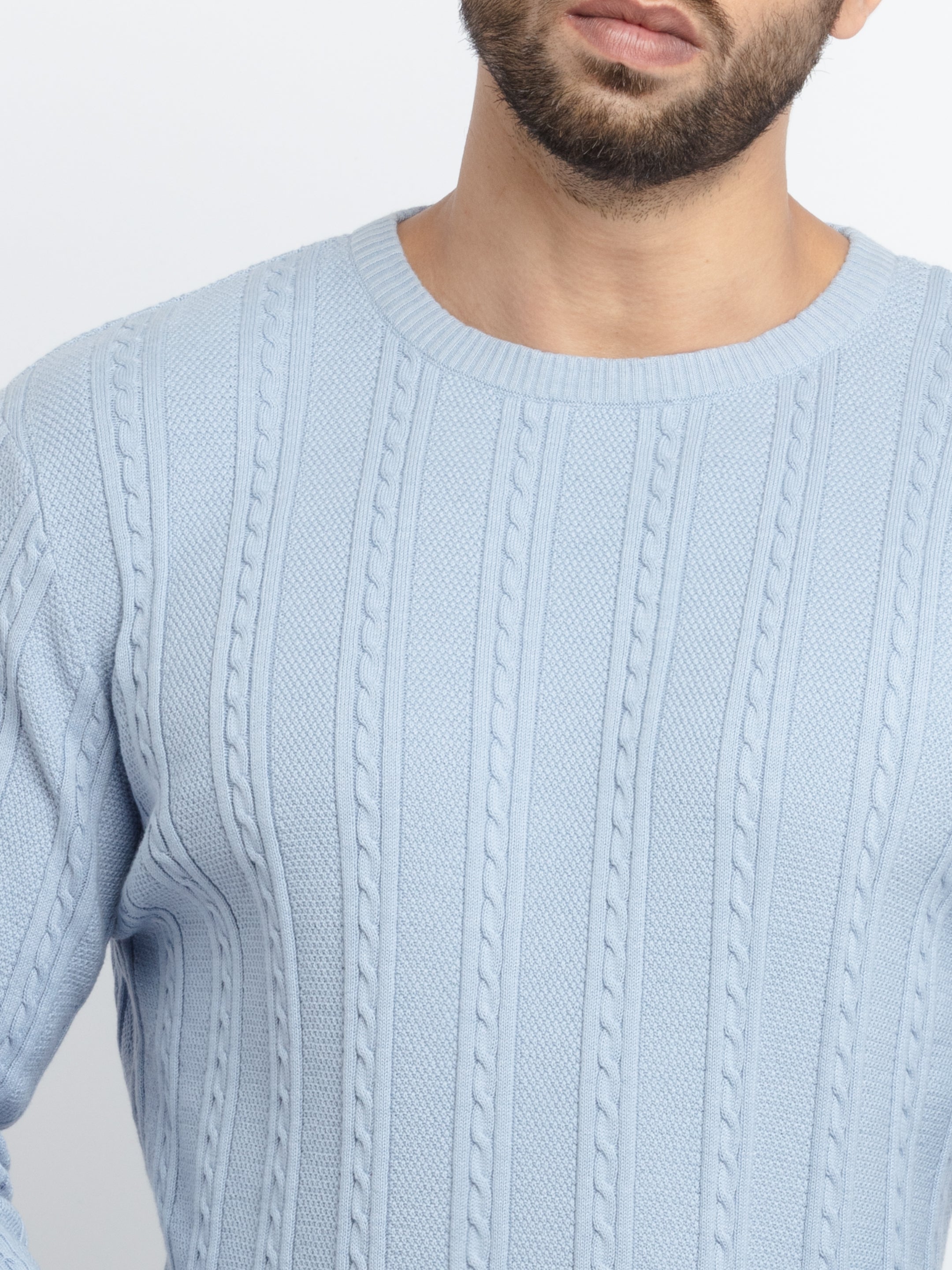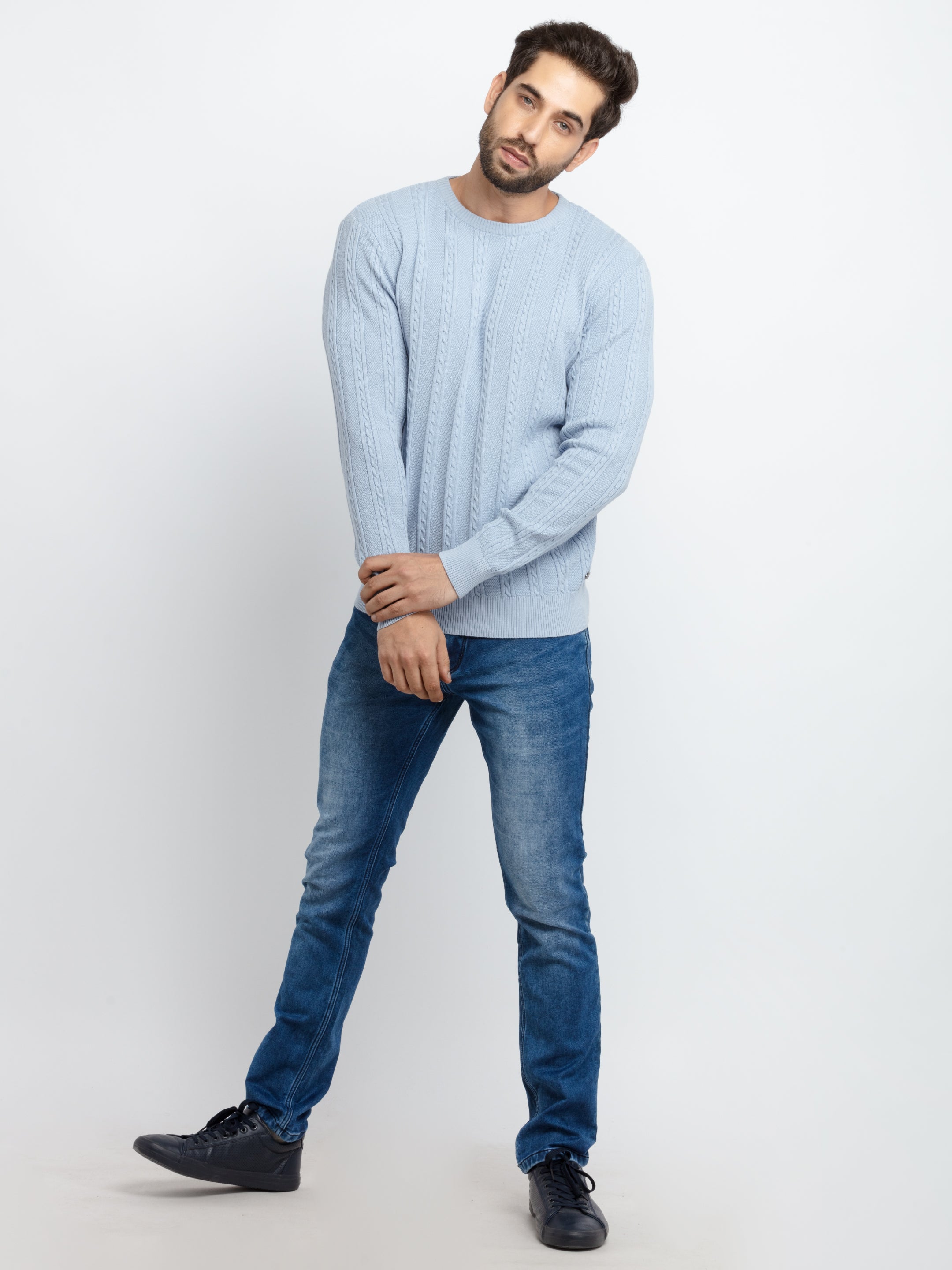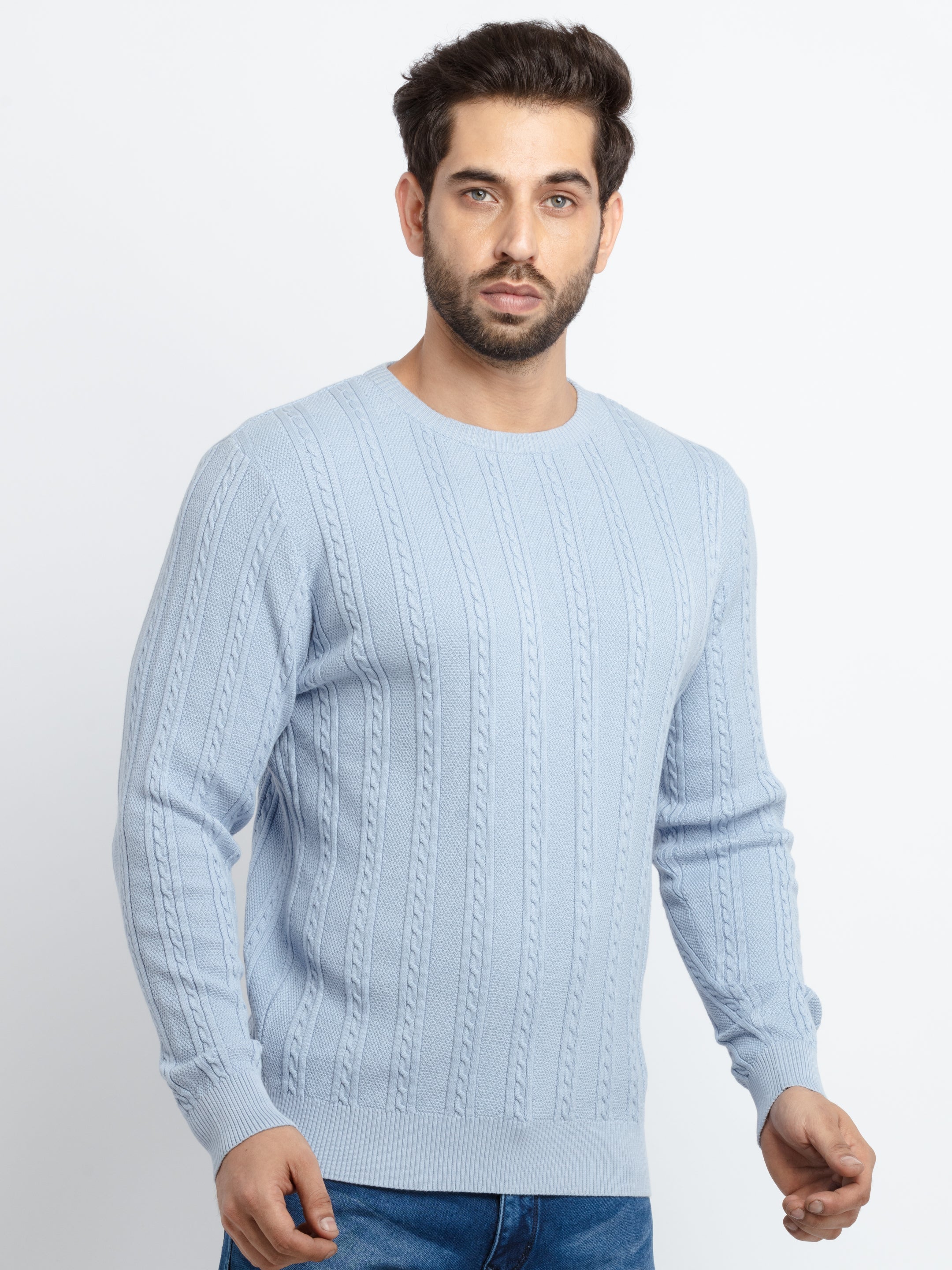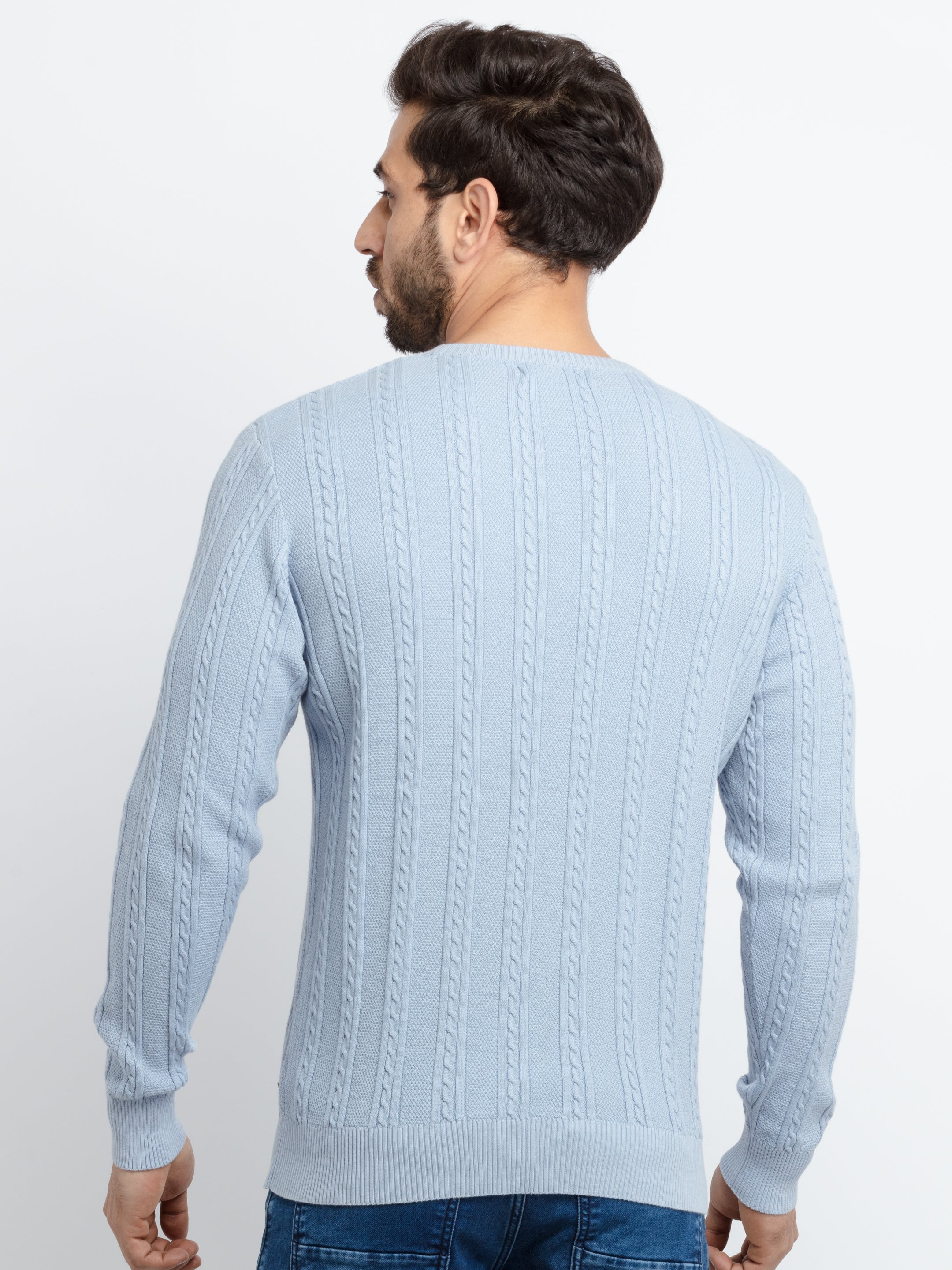 Sky Solid Sweater has Round Neck, Full Sleeves.