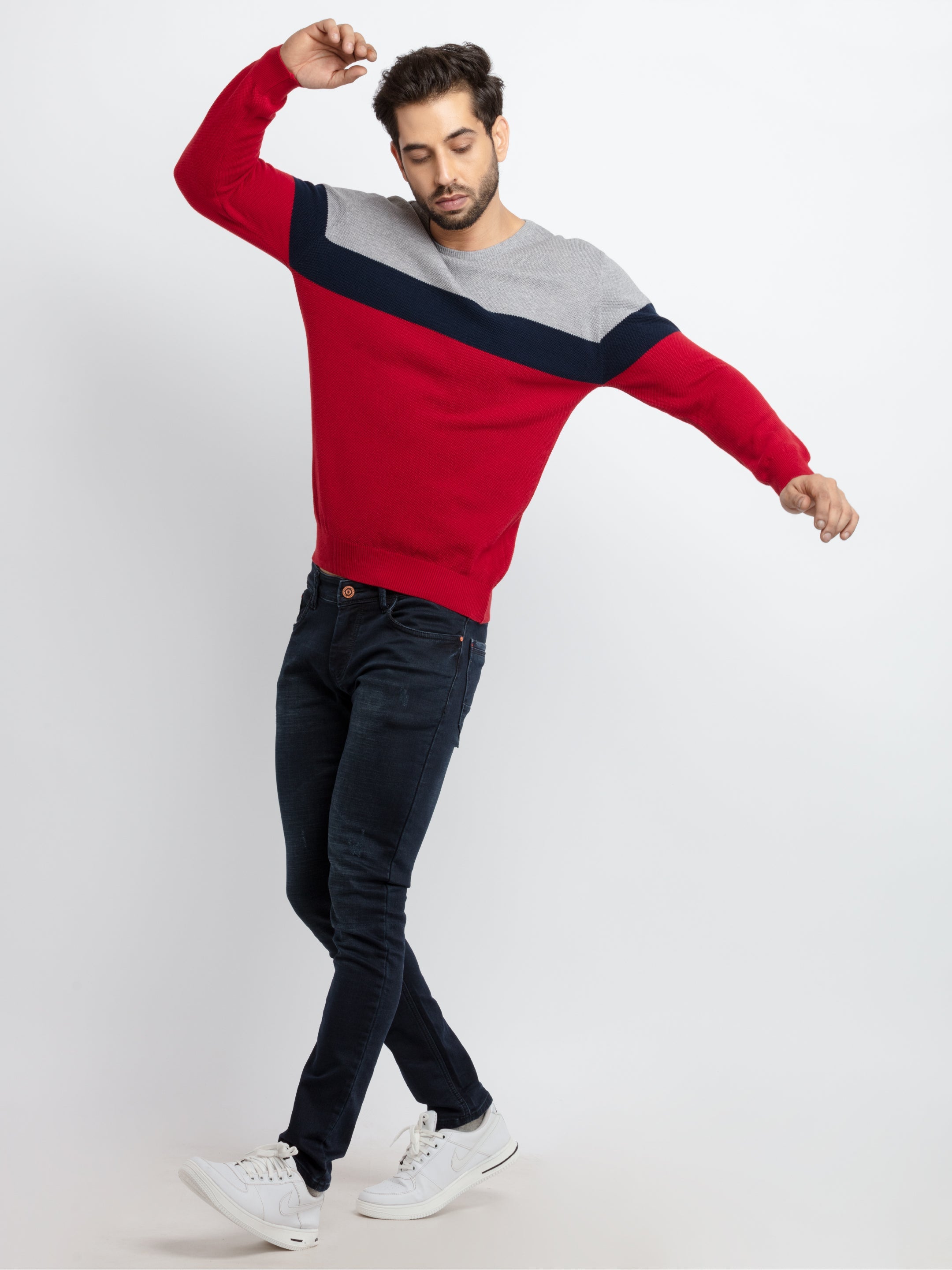 Maroon Solid Sweater has Round Neck, Full Sleeves.