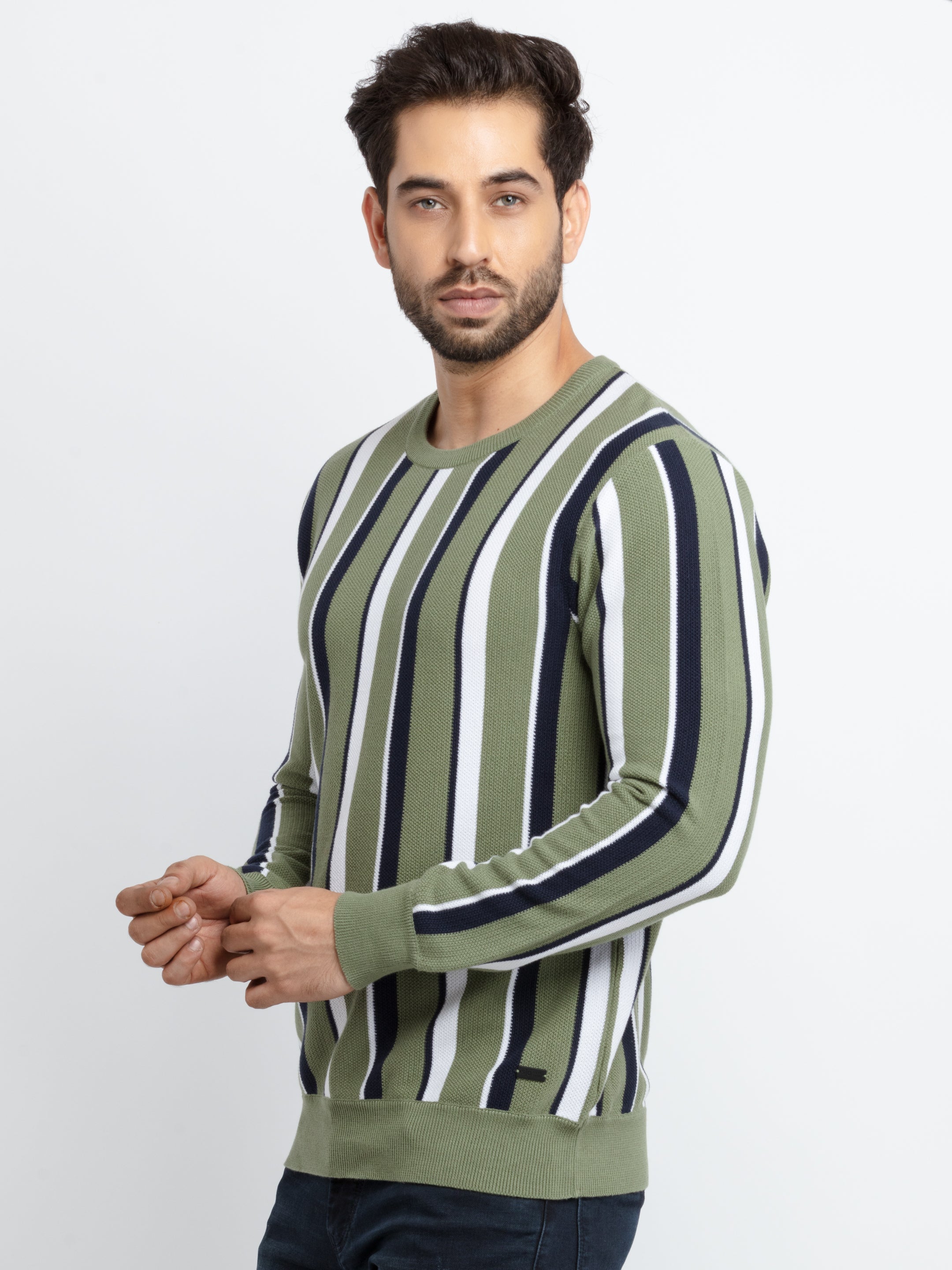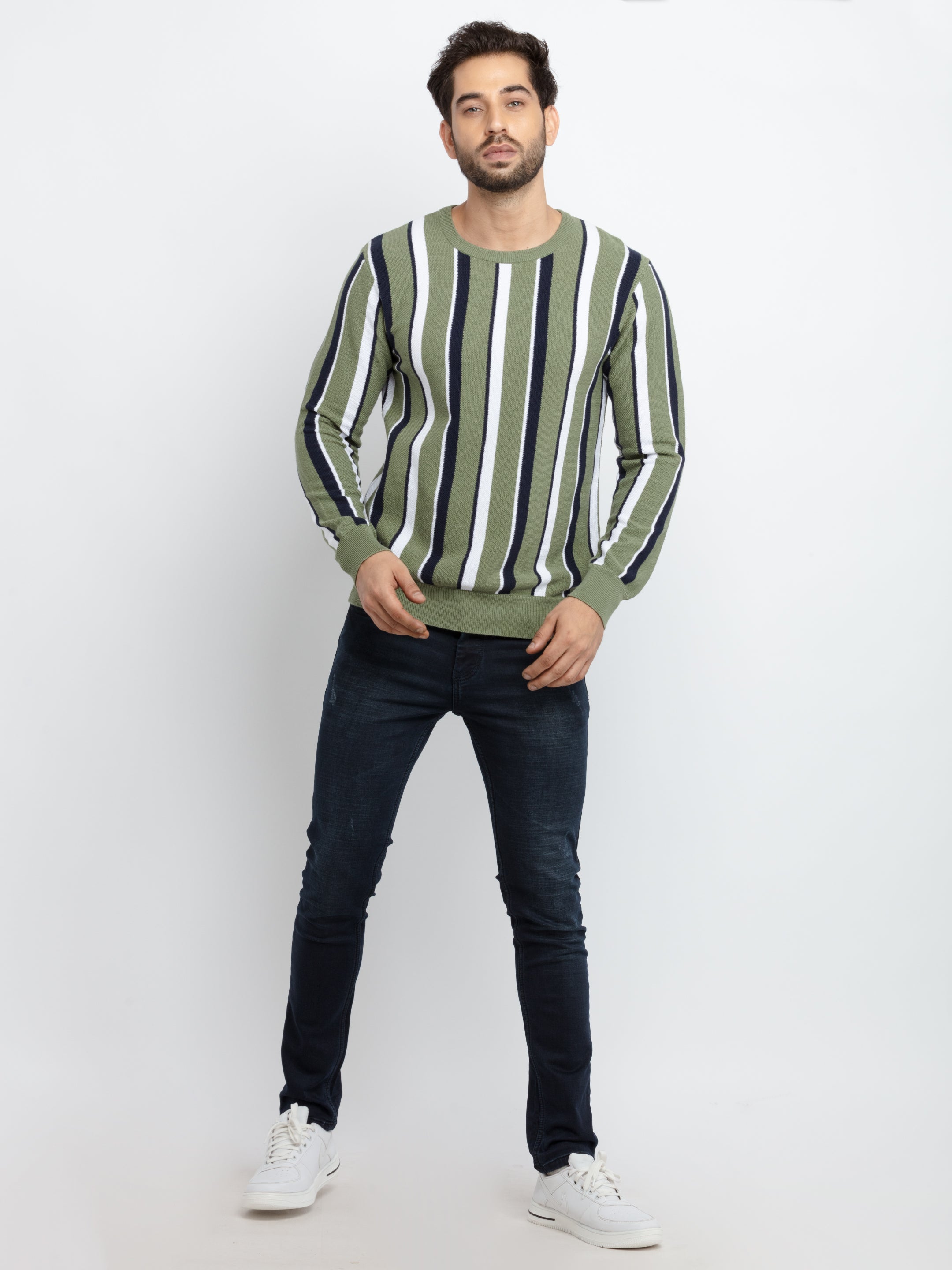 Pista Solid Sweater has Vertical Stripe, Full Sleeves.