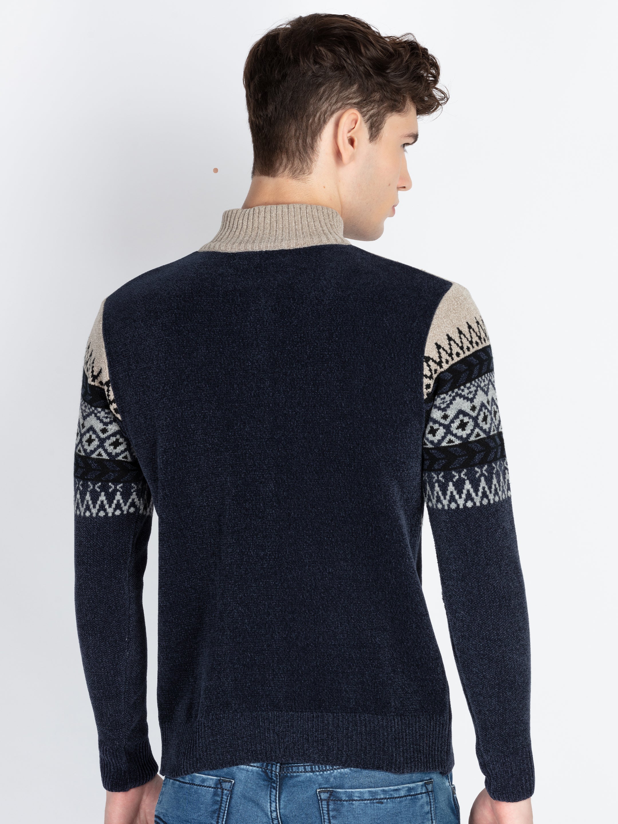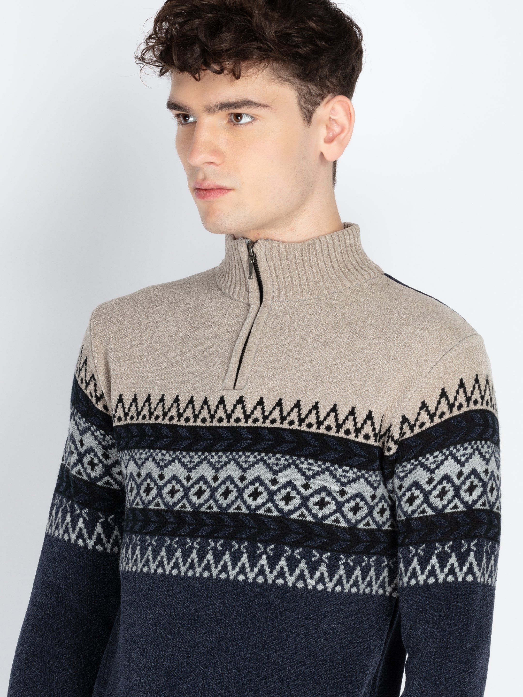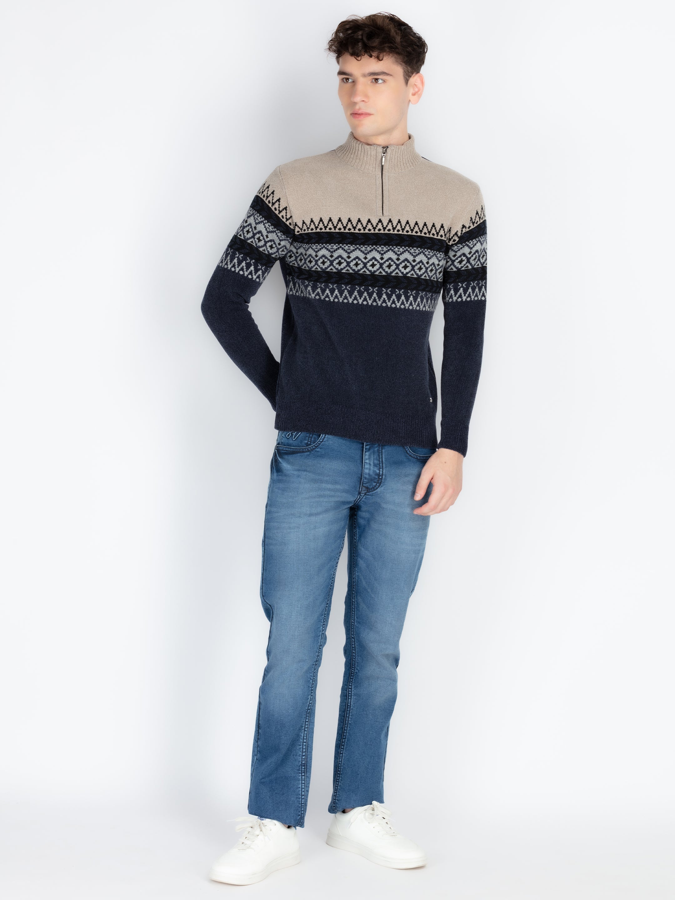 SILVER NAVY Lightweight Sweater Has HALF ZIPPER MOCK COLLAR With Full Sleeves.