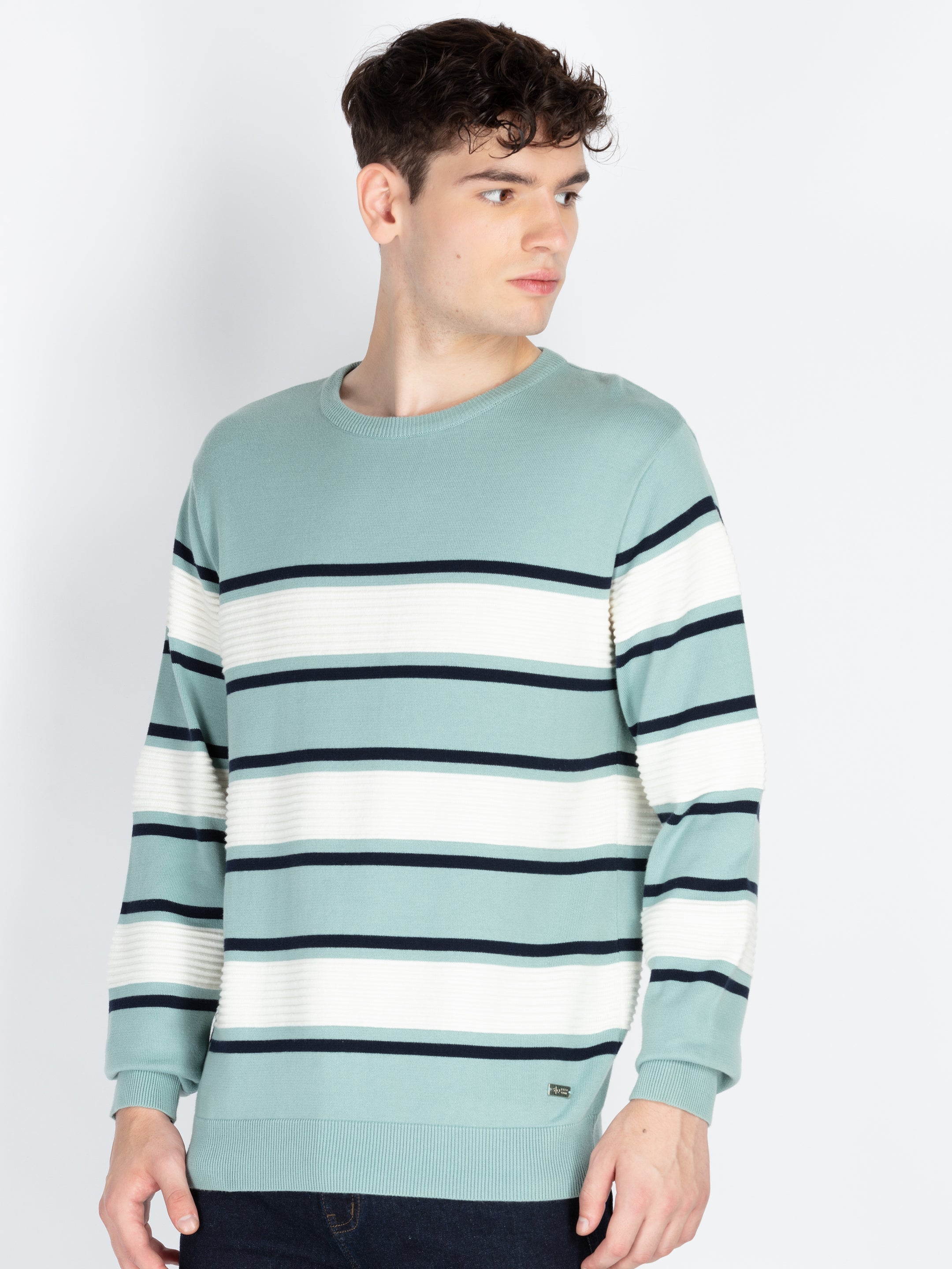 SEA GREEN/WHITE Lightweight Sweater Has Round Neck With Full Sleeves.