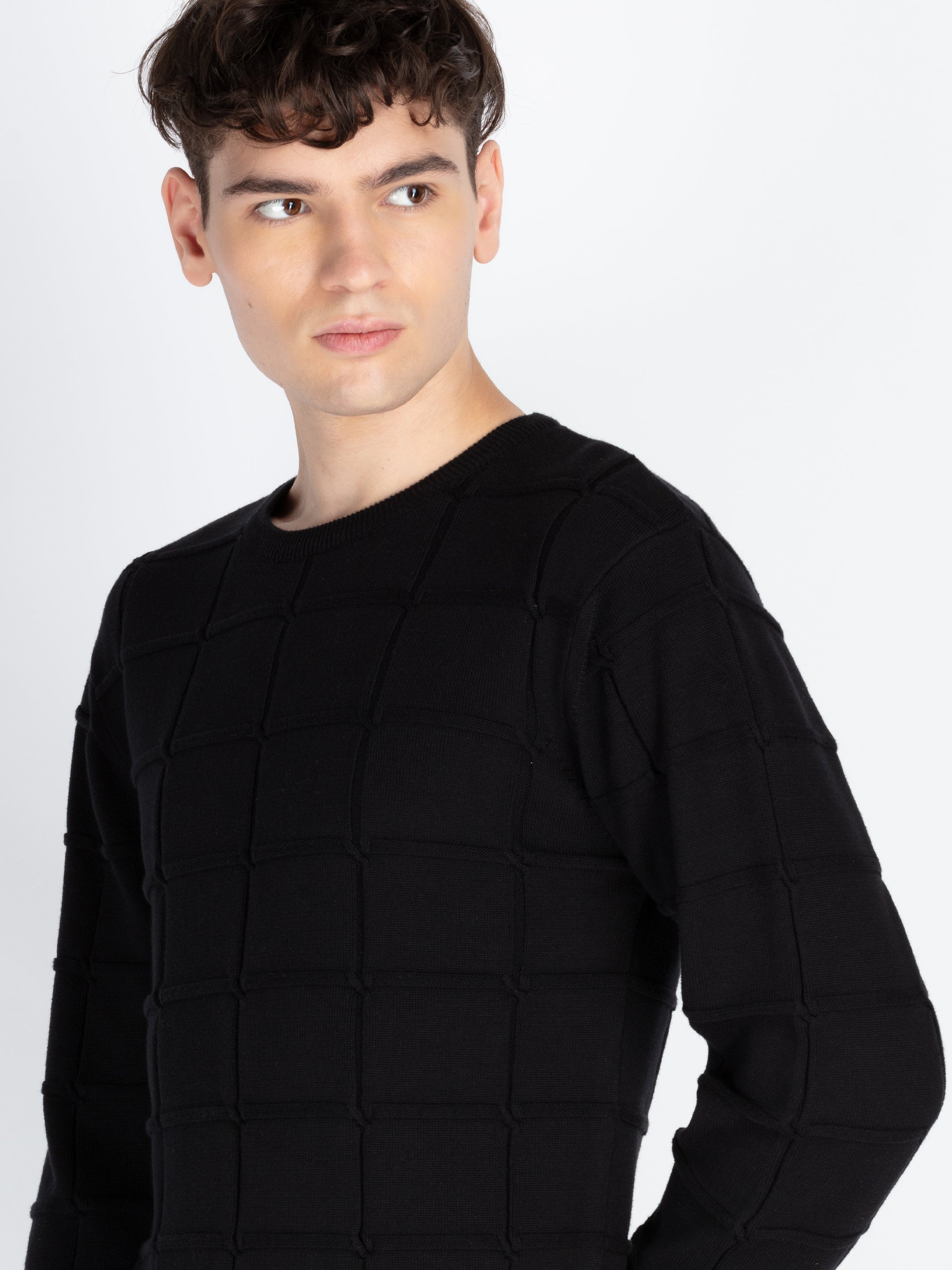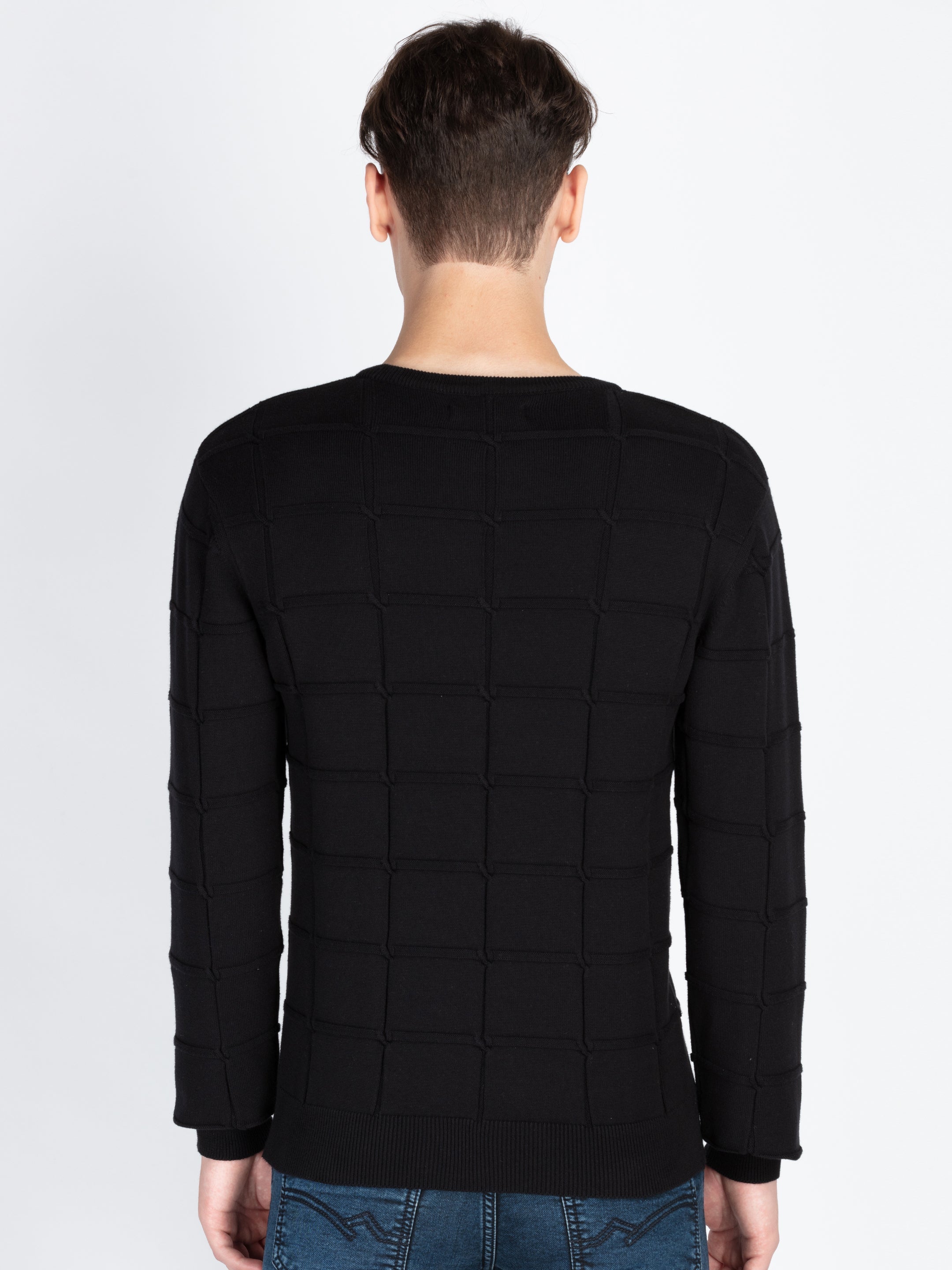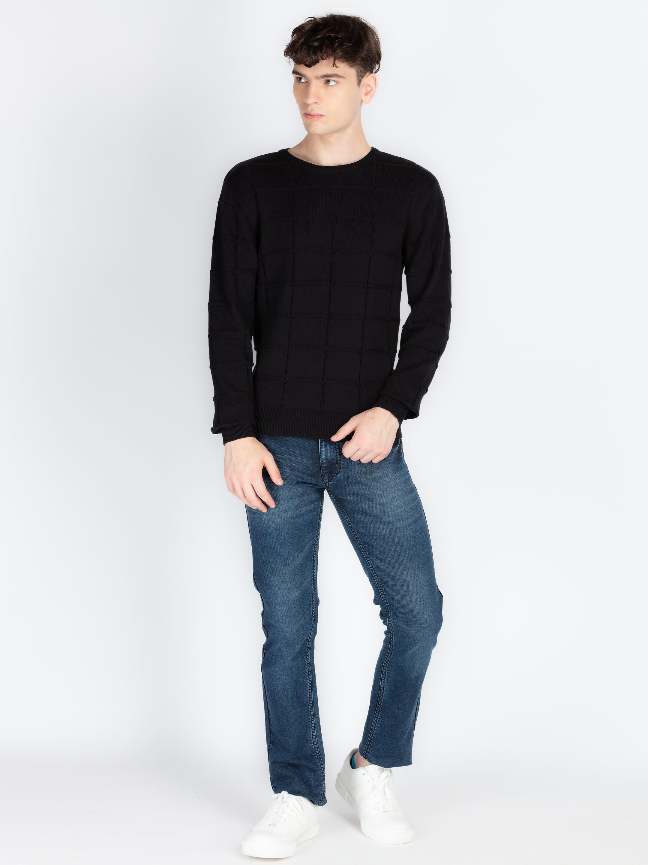 BLACK Lightweight Sweater Has Round Neck With Full Sleeves.