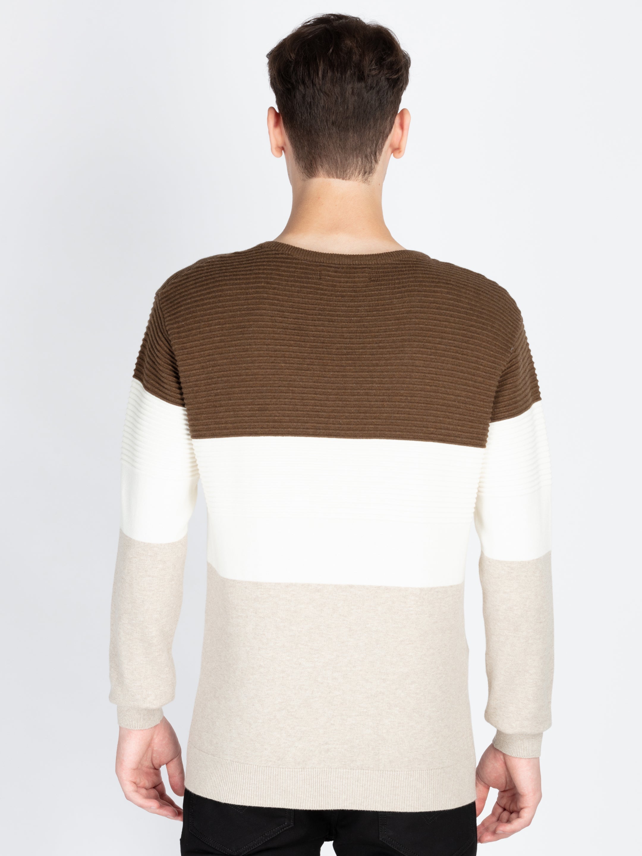 BROWN/WHITE Lightweight Sweater Has Round Neck With Full Sleeves.