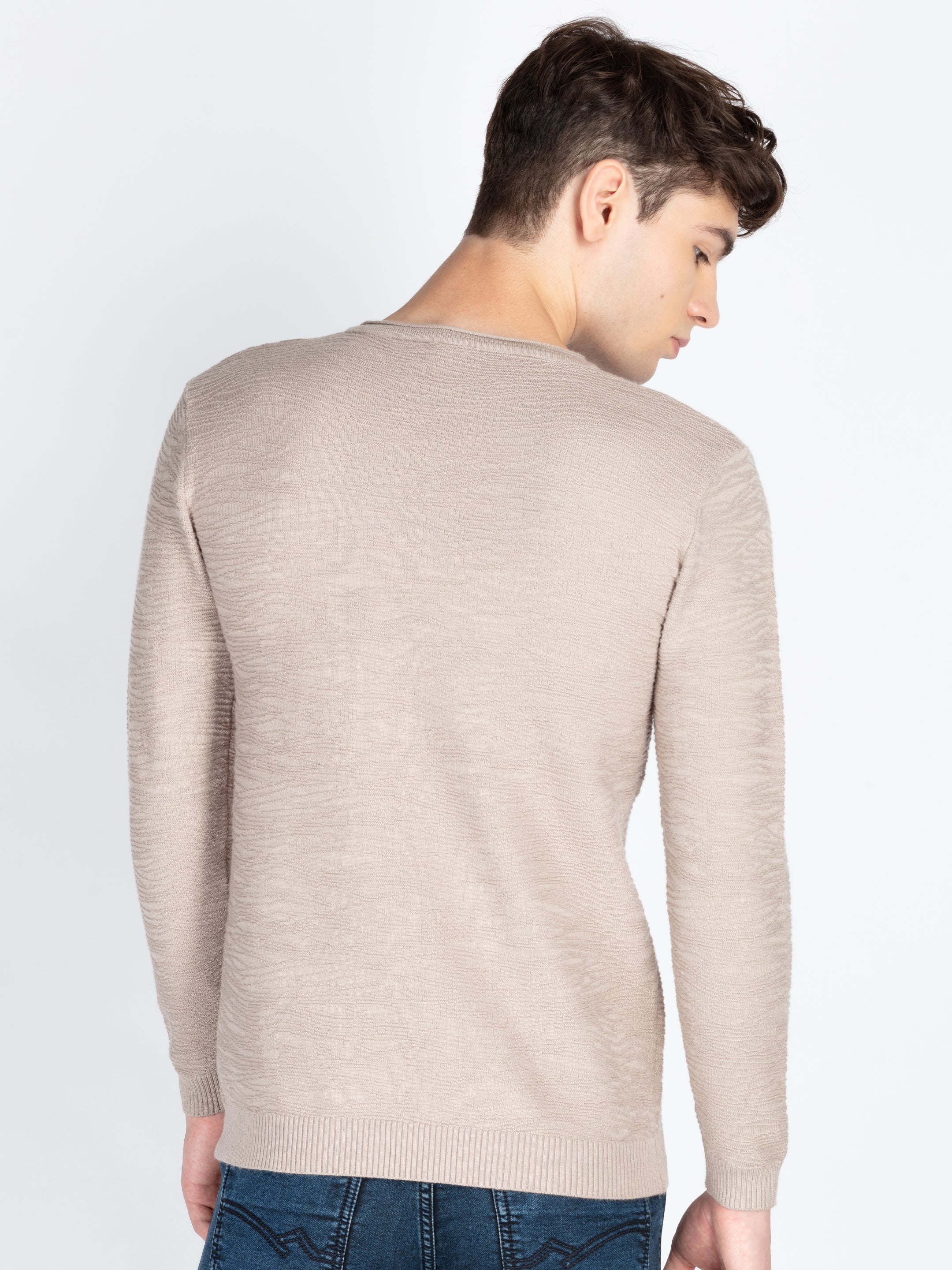 BEIGE Lightweight Sweater Has Round Neck With Full Sleeves.