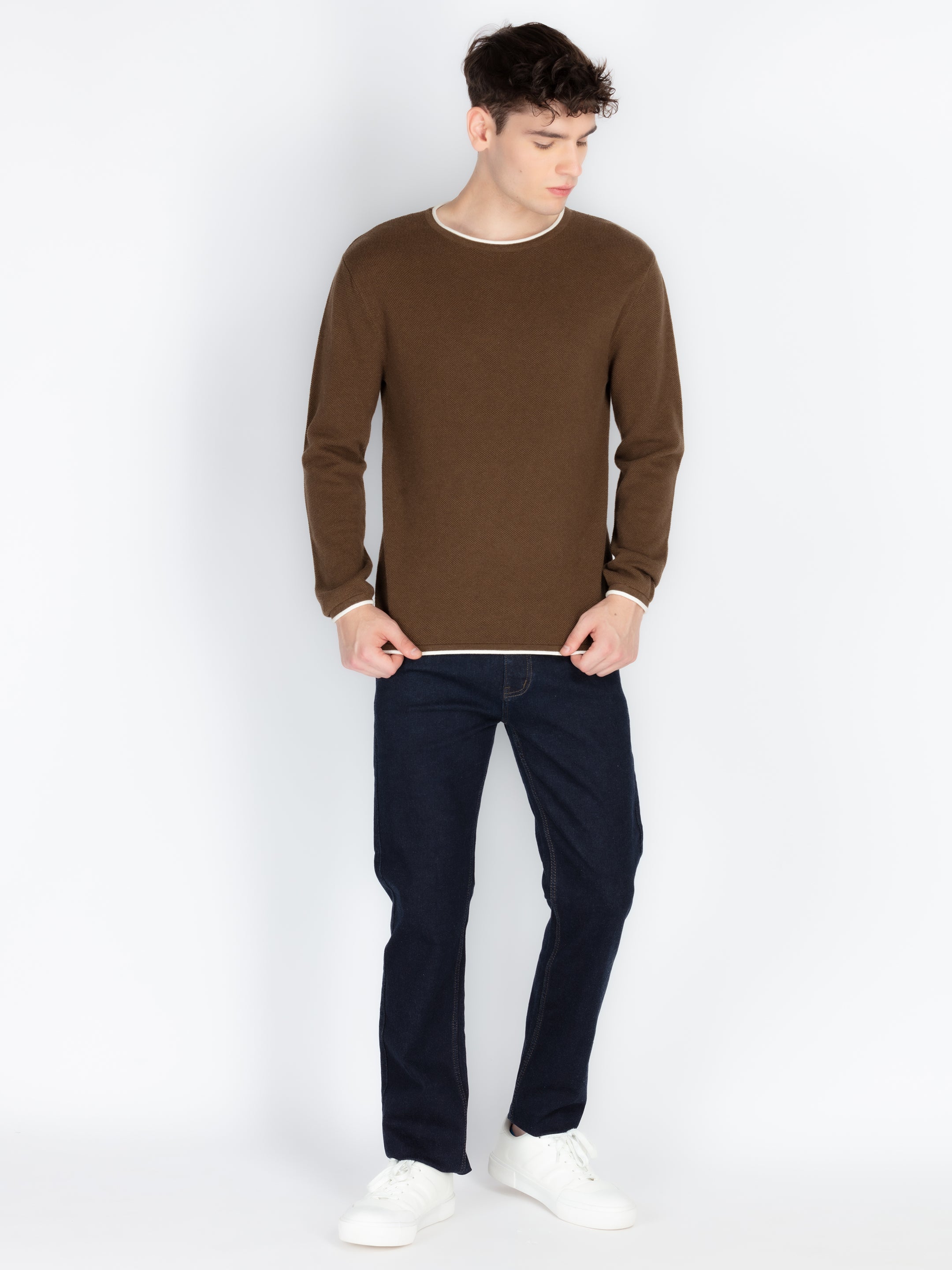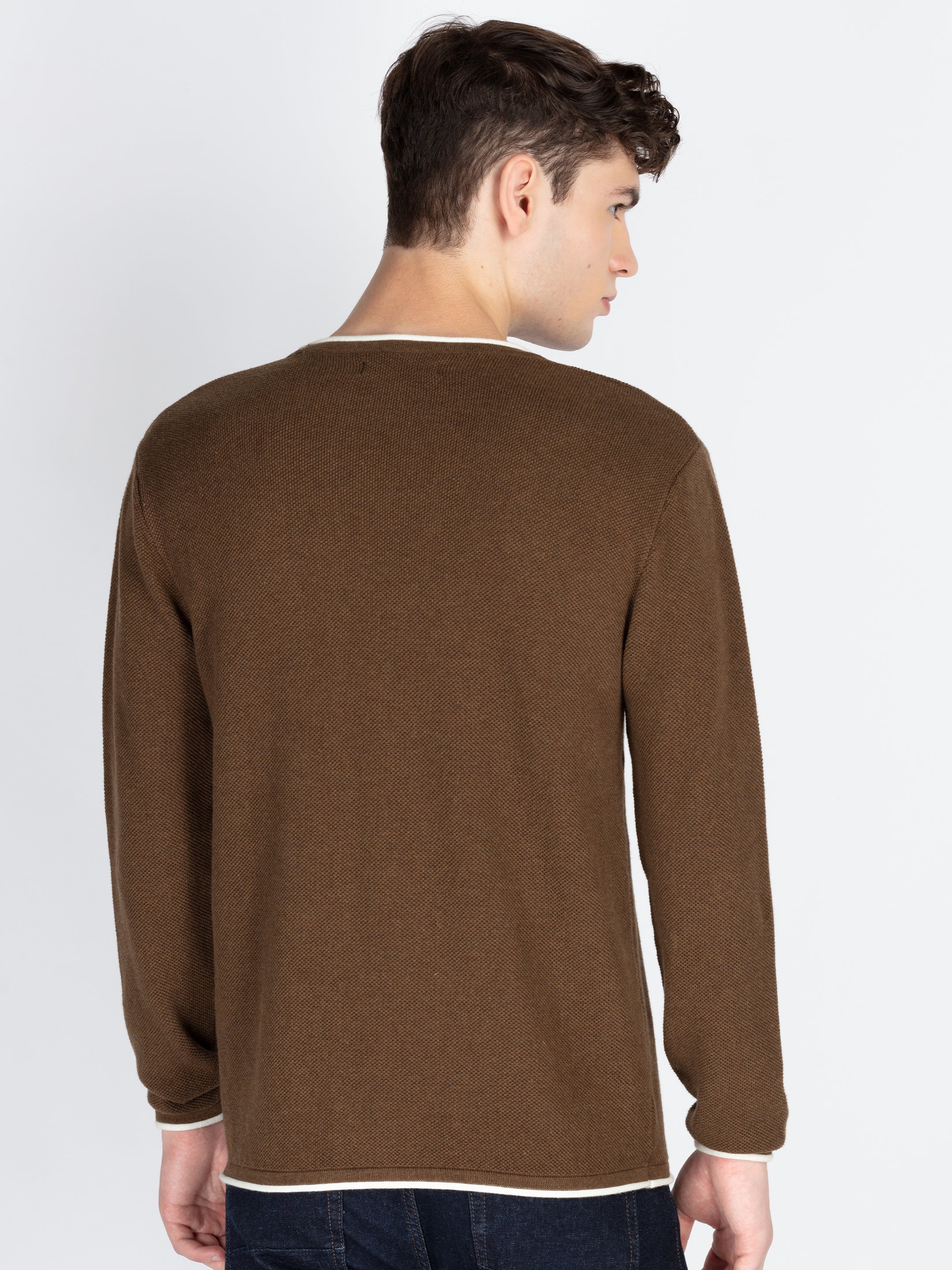 COFFEE Lightweight Sweater Has ROUND NECK With Full Sleeves.