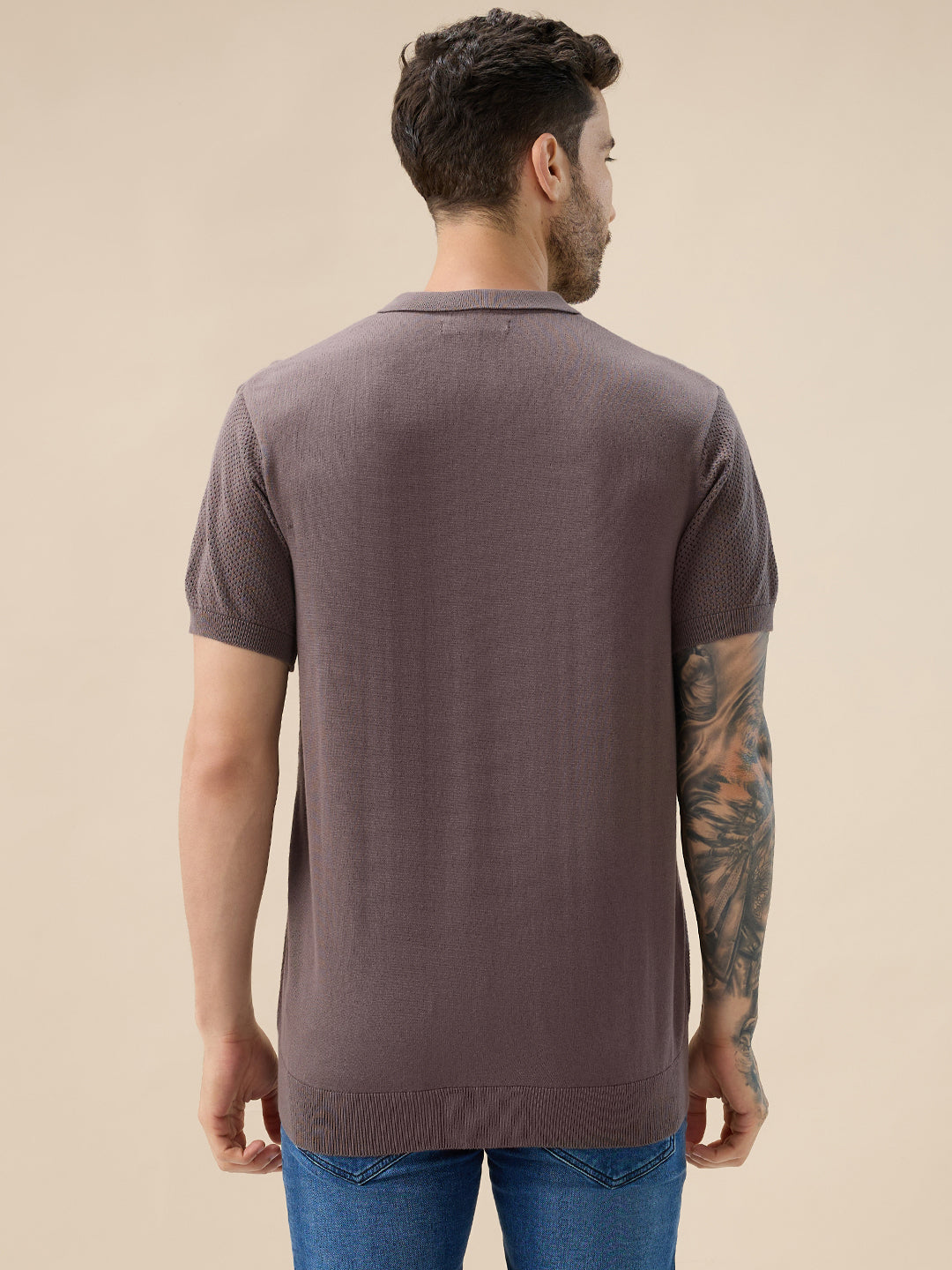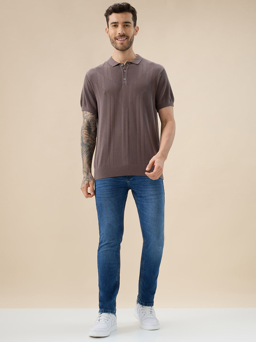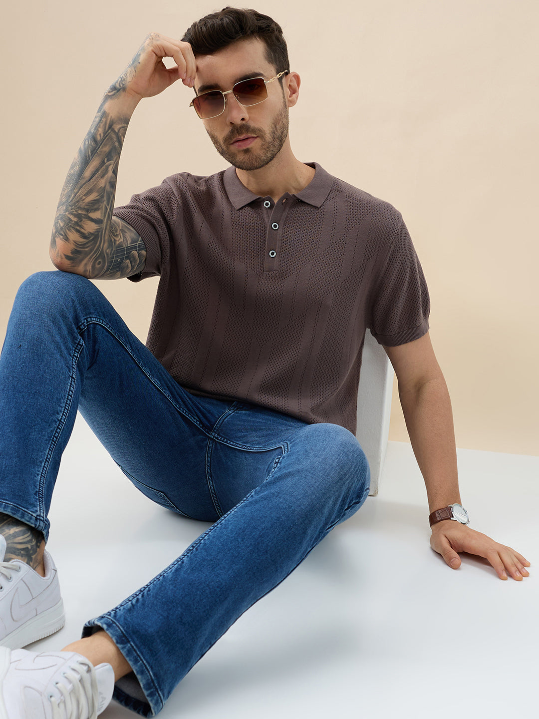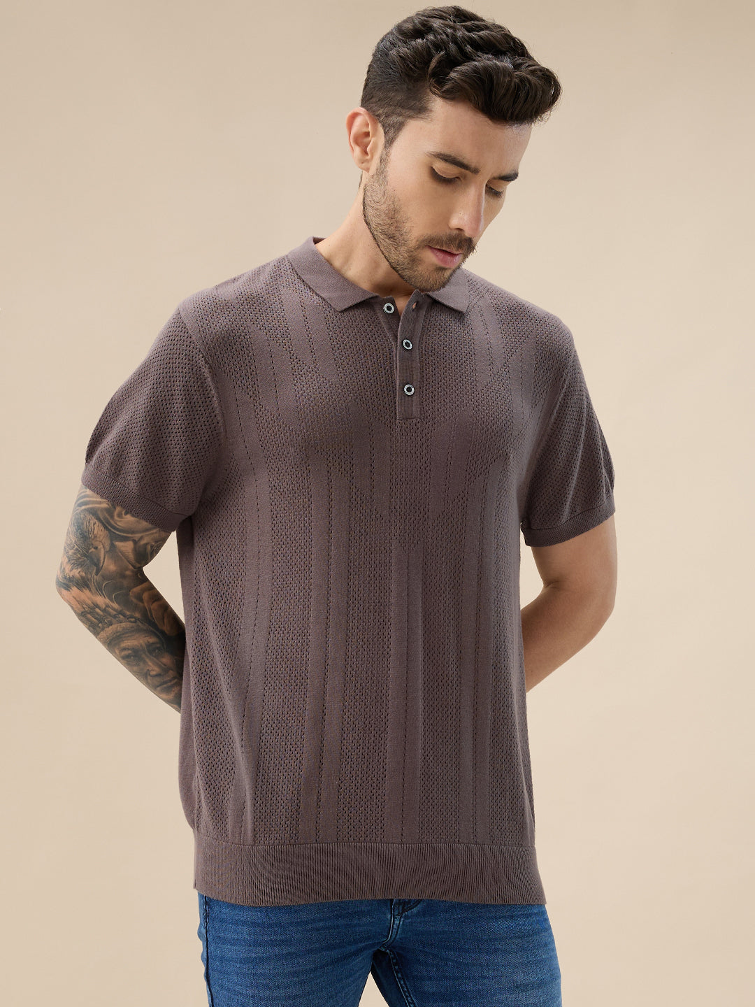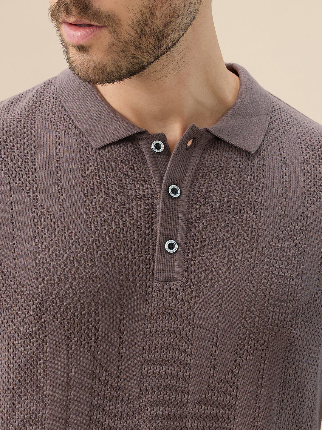 MOUSE Men's Textured Geometric Polo Collar Half Sleeve Regular Fit Sweater