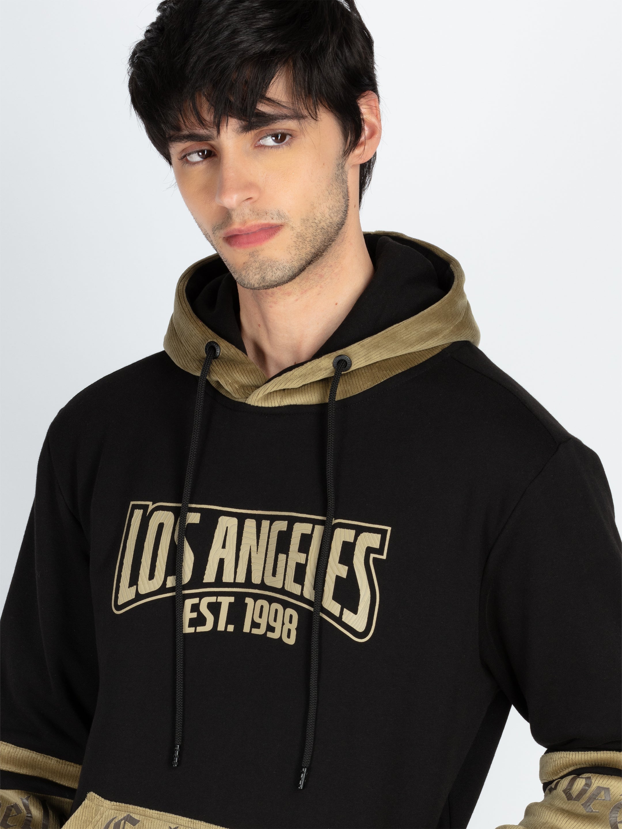 Black Mens Colorblocked Full Sleeve Hooded Sweatshirt