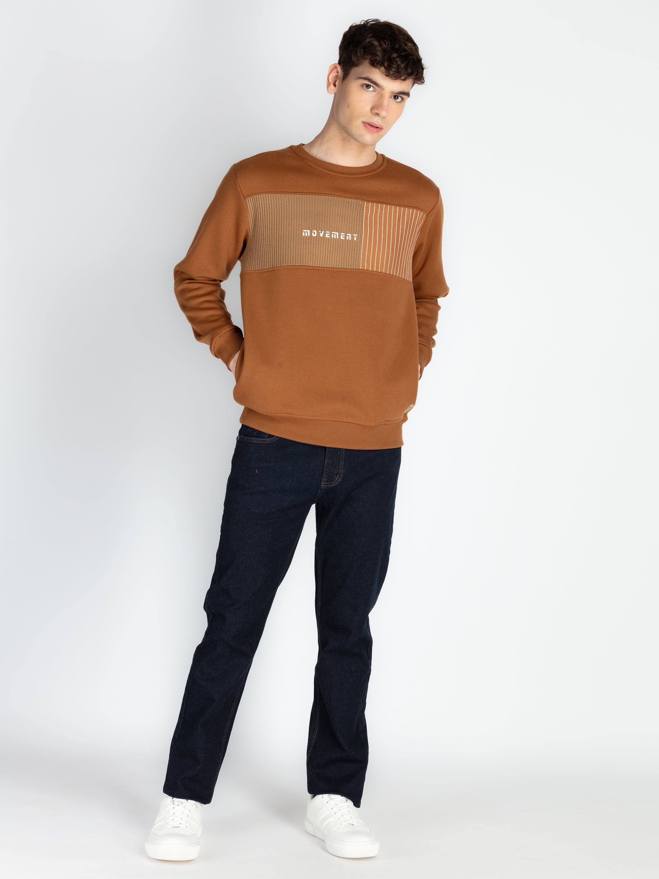 BROWN Sweatshirt Has Round Neck With Full Sleeves.