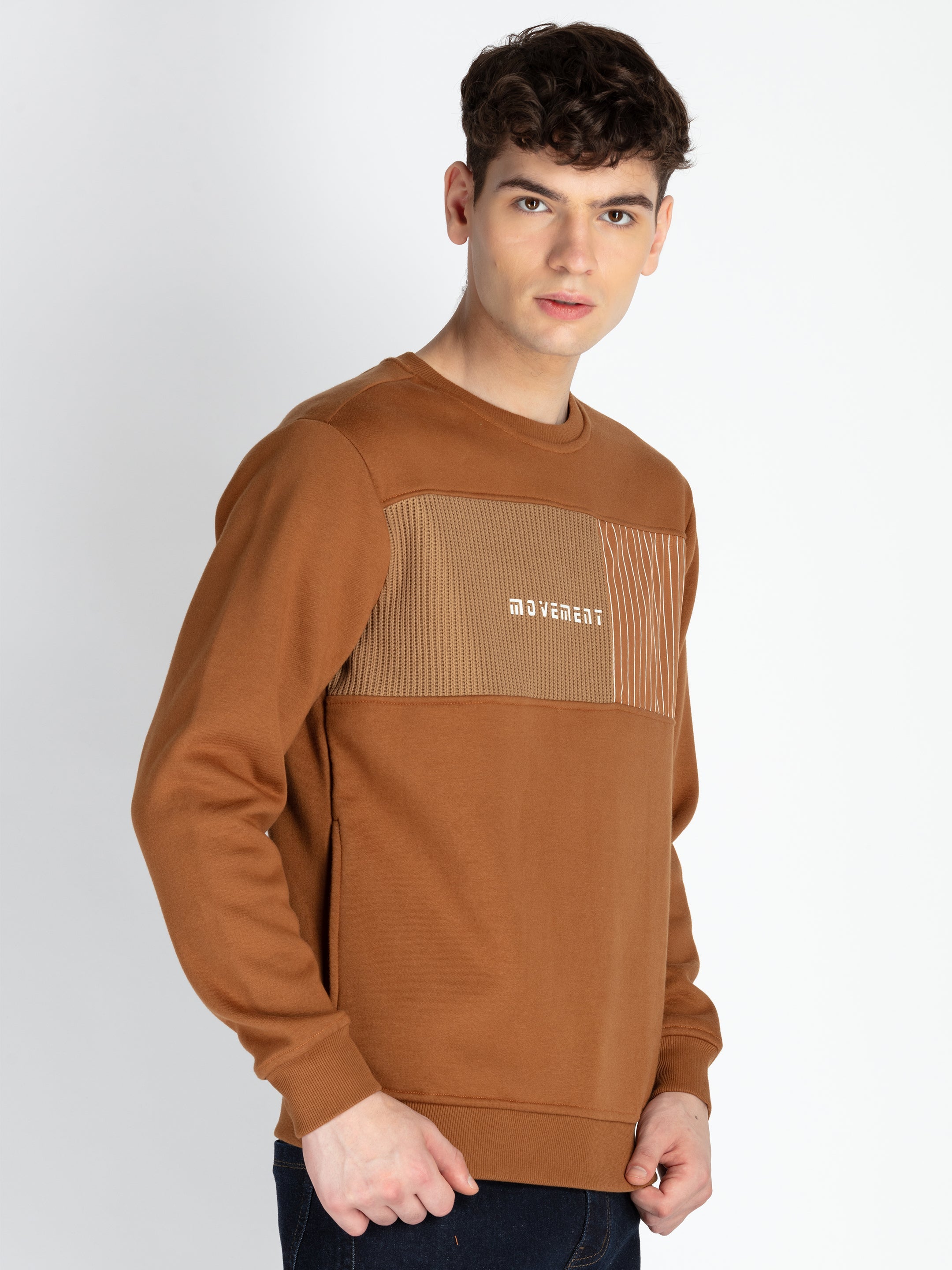 BROWN Sweatshirt Has Round Neck With Full Sleeves.