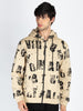 Beige Mens All Over Printed Hooded Sweatshirt With Full Sleeves