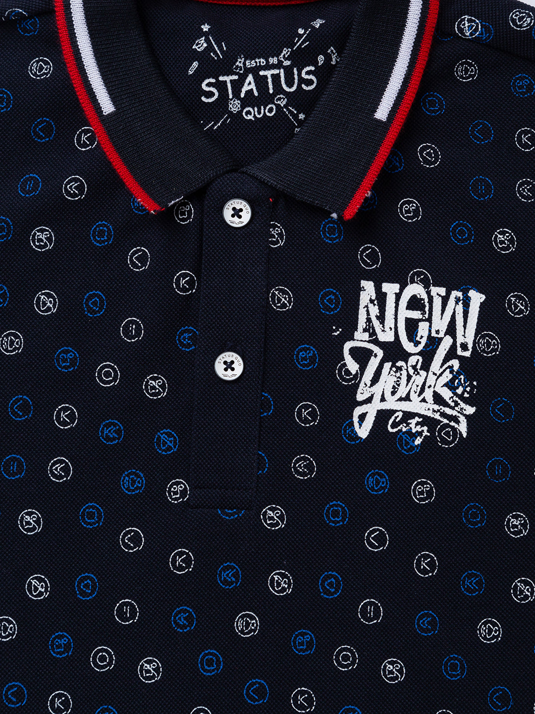 NAVY Printed Polo T-shirt has Pigment print, Half Sleeves