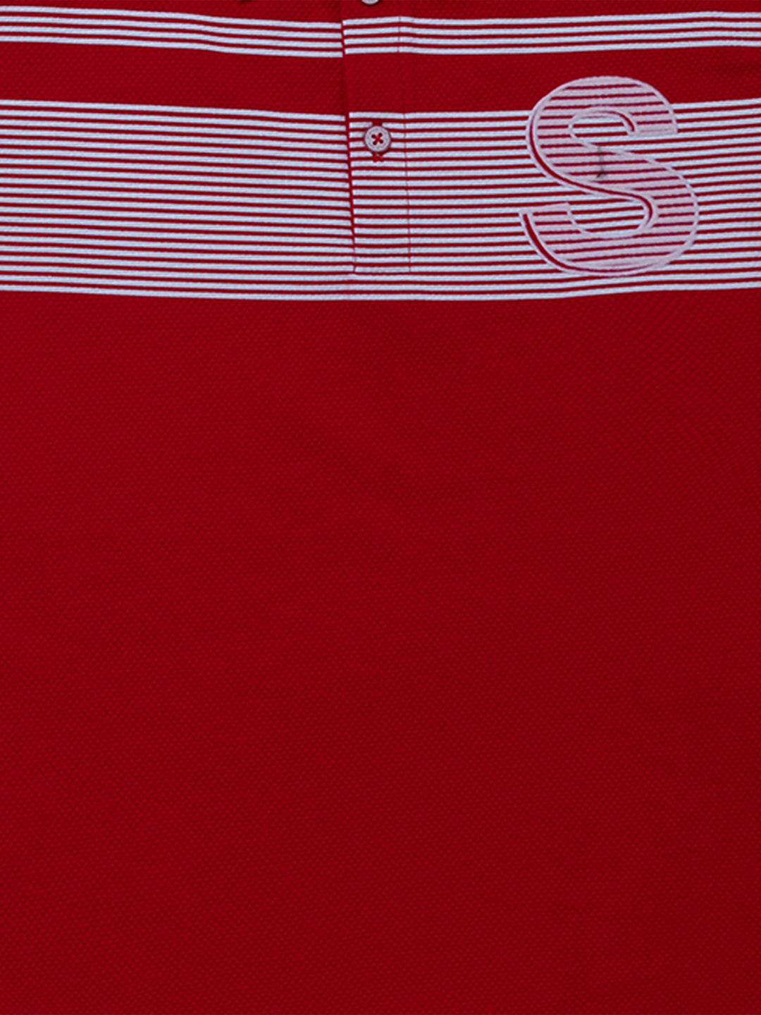 RED Striped Polo T-shirt has Media Tape, Half Sleeves