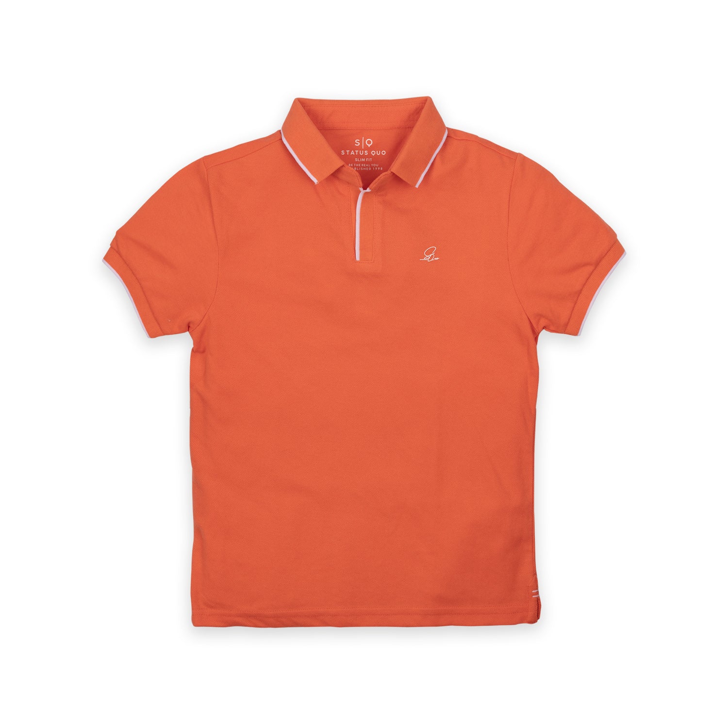 CANDY ORANGE Polo With Tipping Collar has HD Print, Half Sleeves