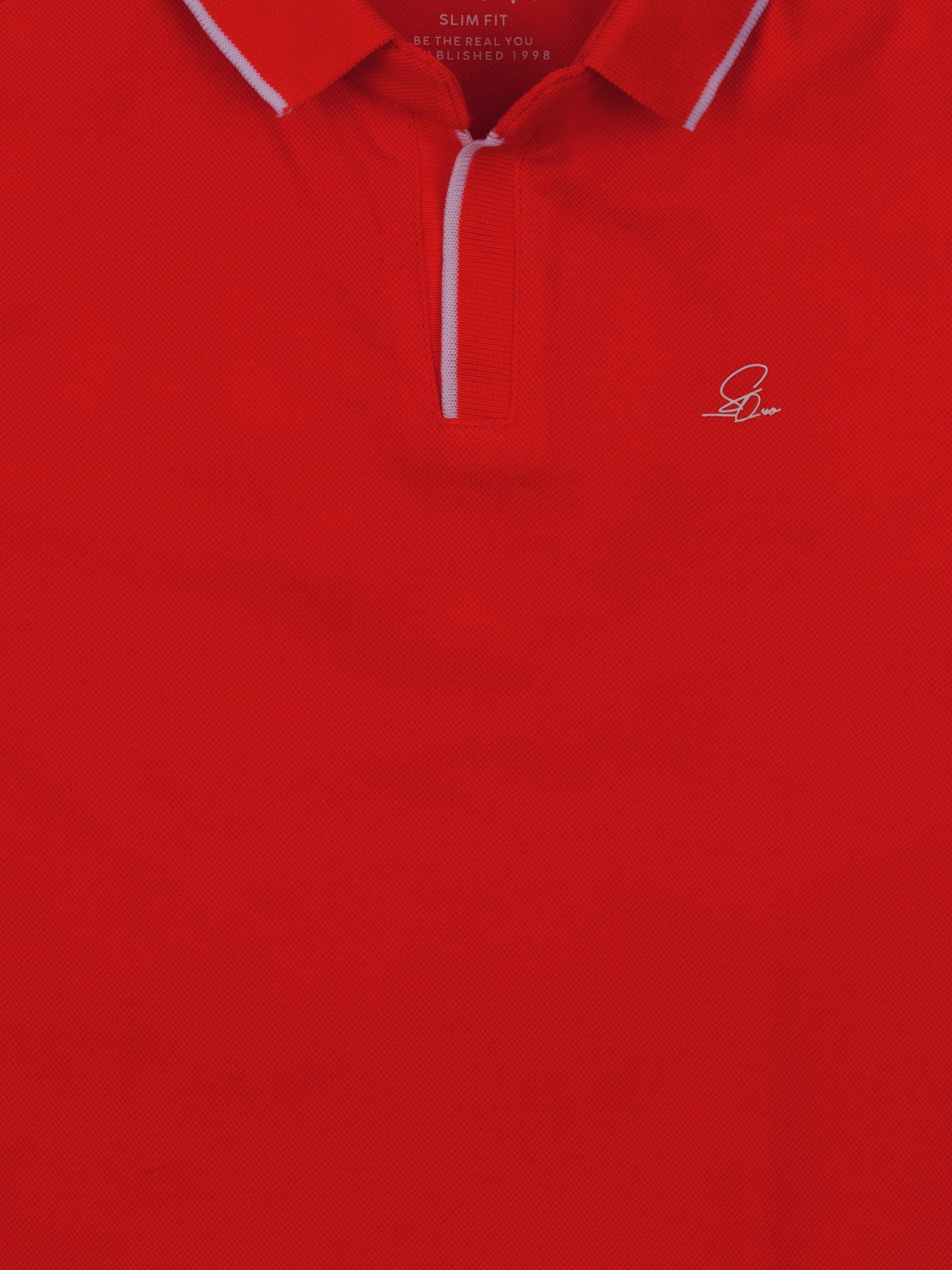 RED Polo With Tipping Collar has HD Print, Half Sleeves