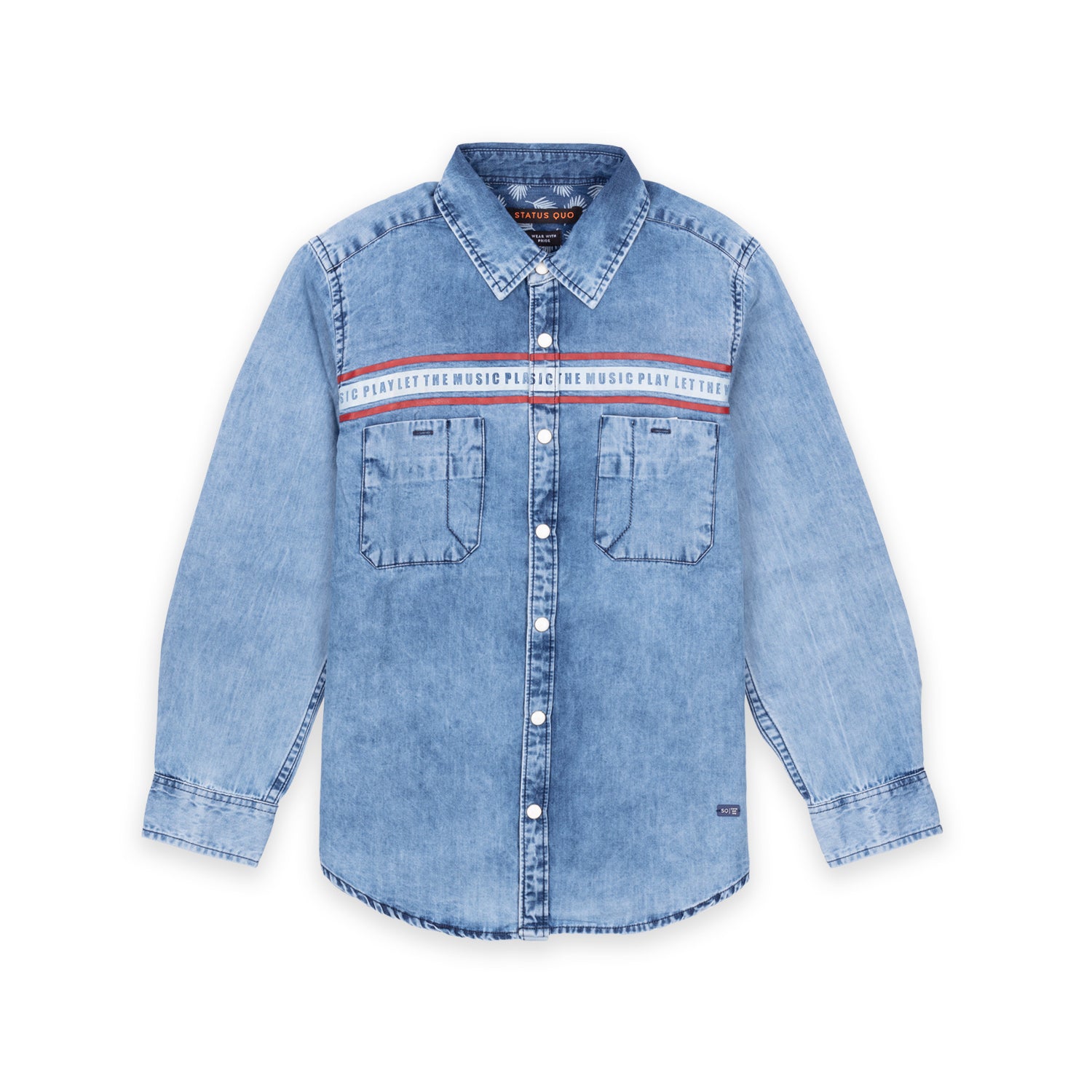 DENIM Printed Shirt has Pocket at Chest, Full Sleeves