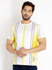 WHITE/LIME Round Neck T-Shirt has Striped, Half Sleeves,Regular Fit
