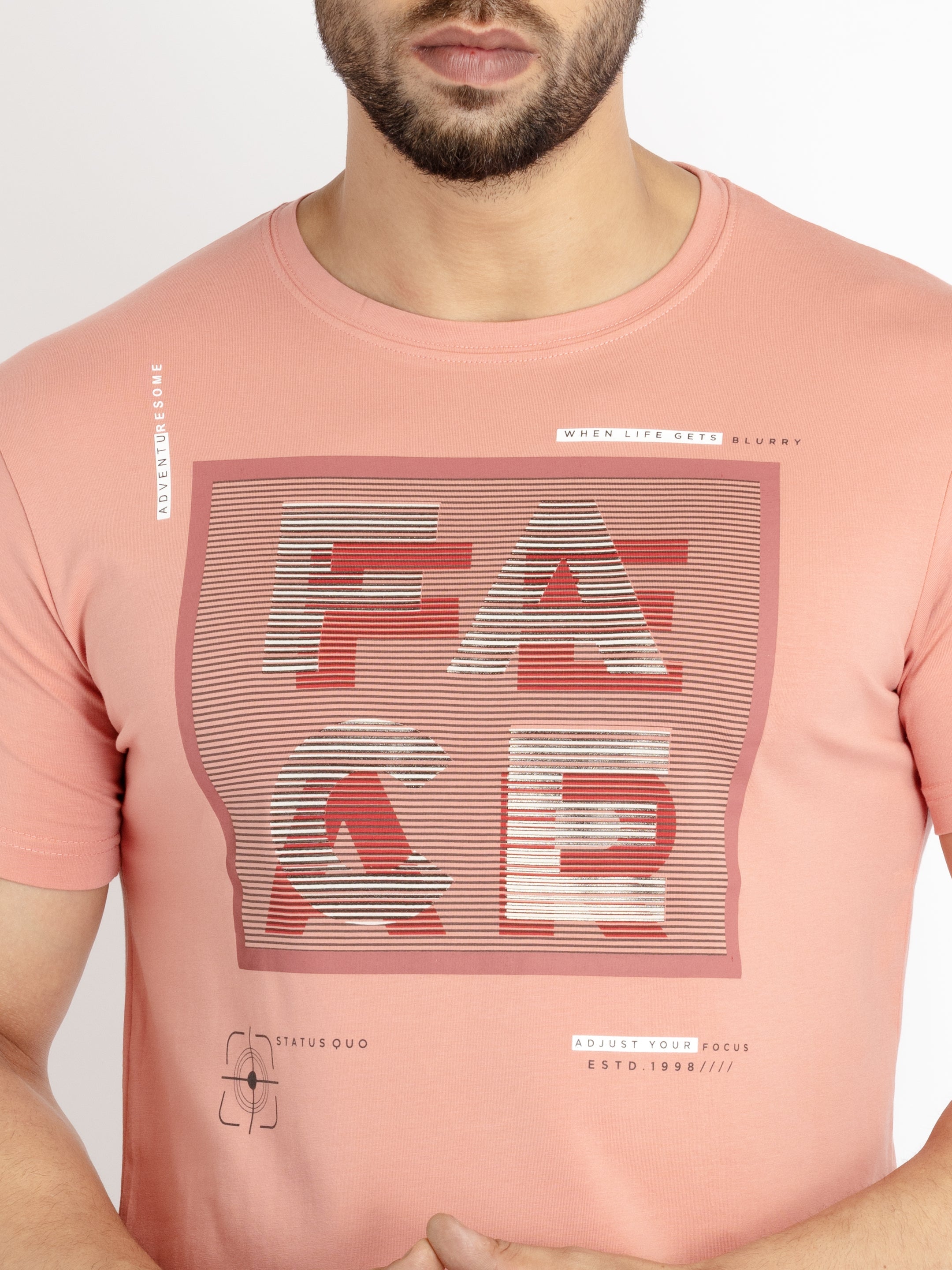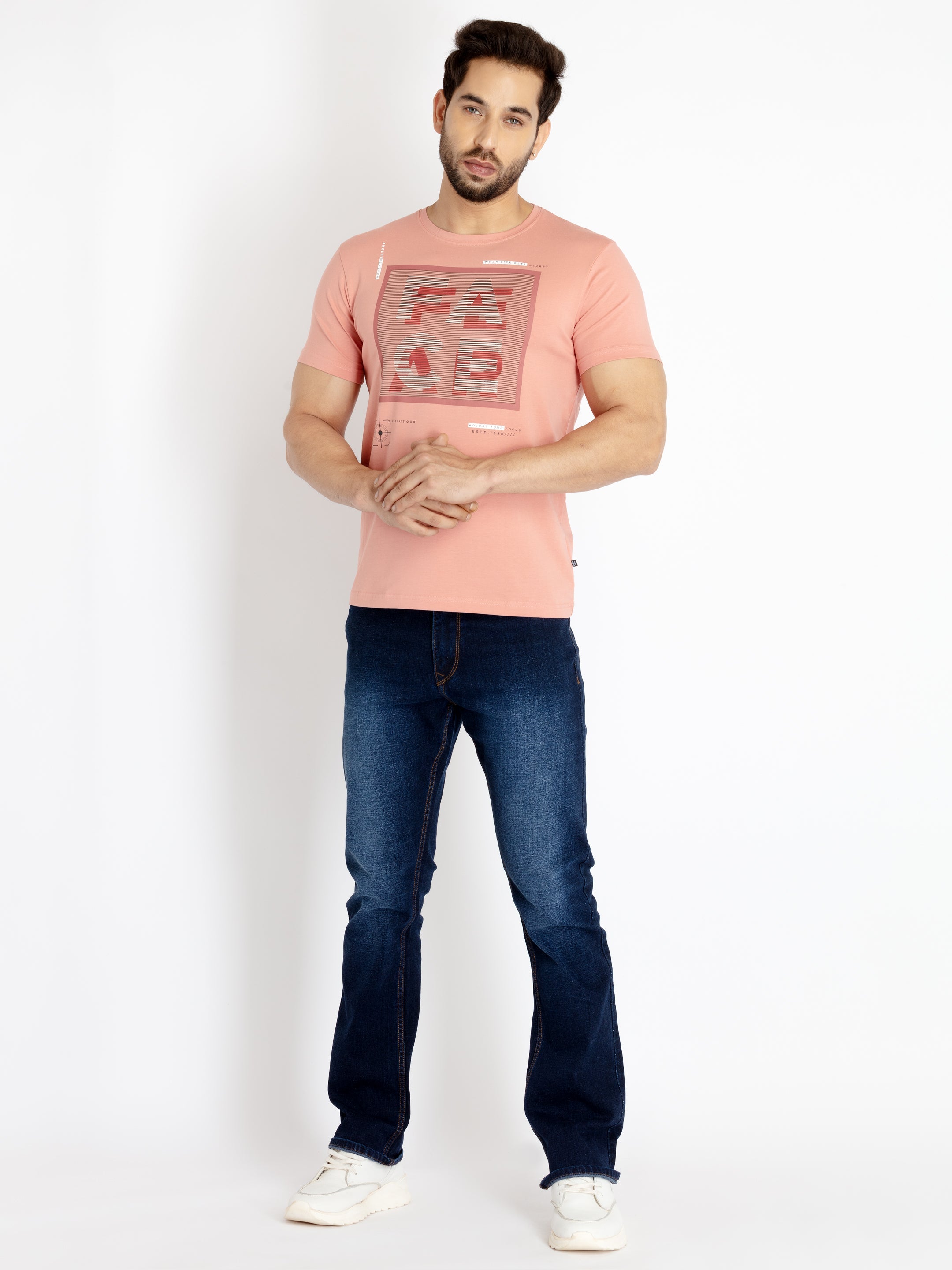 CORAL Round Neck T-Shirt has Front Print, Half Sleeves,Regular Fit