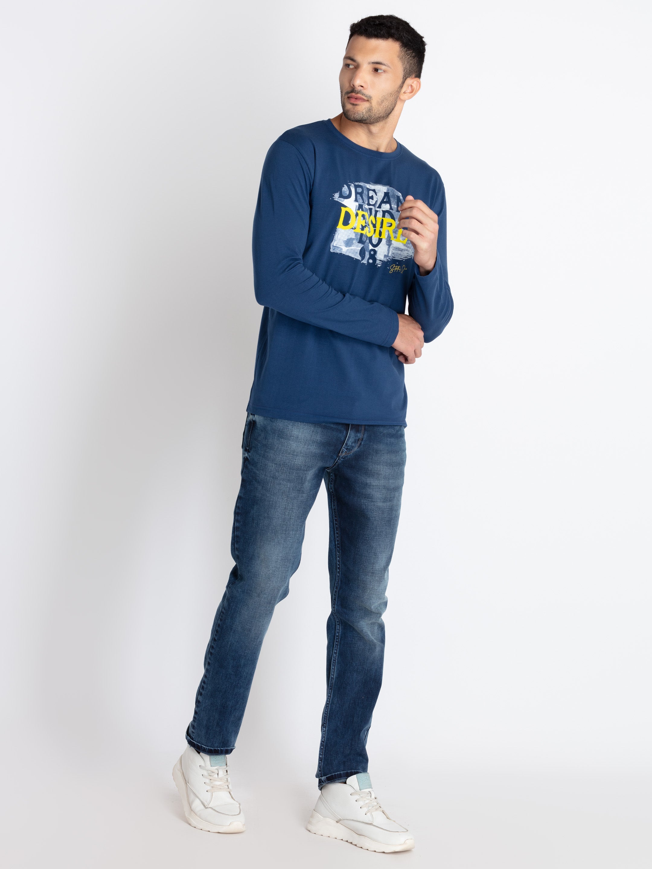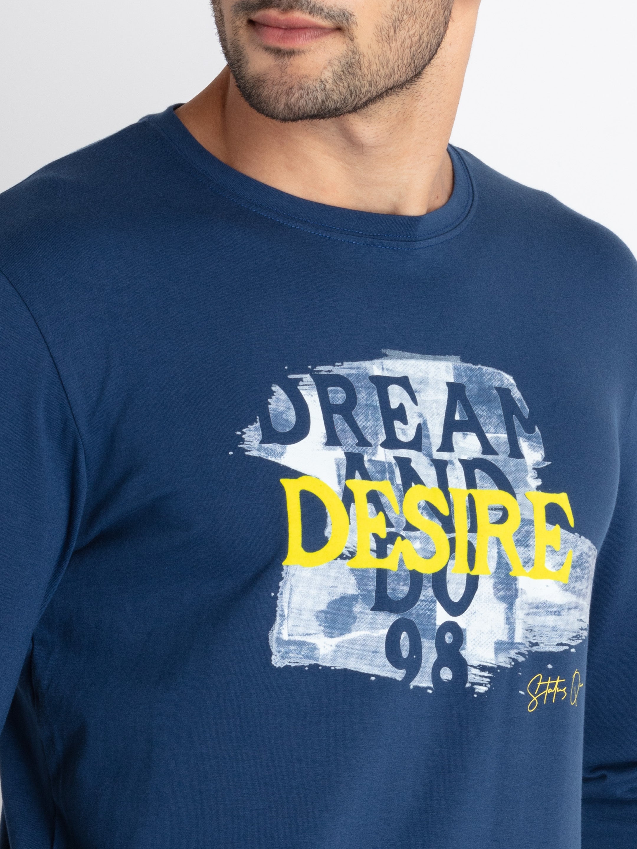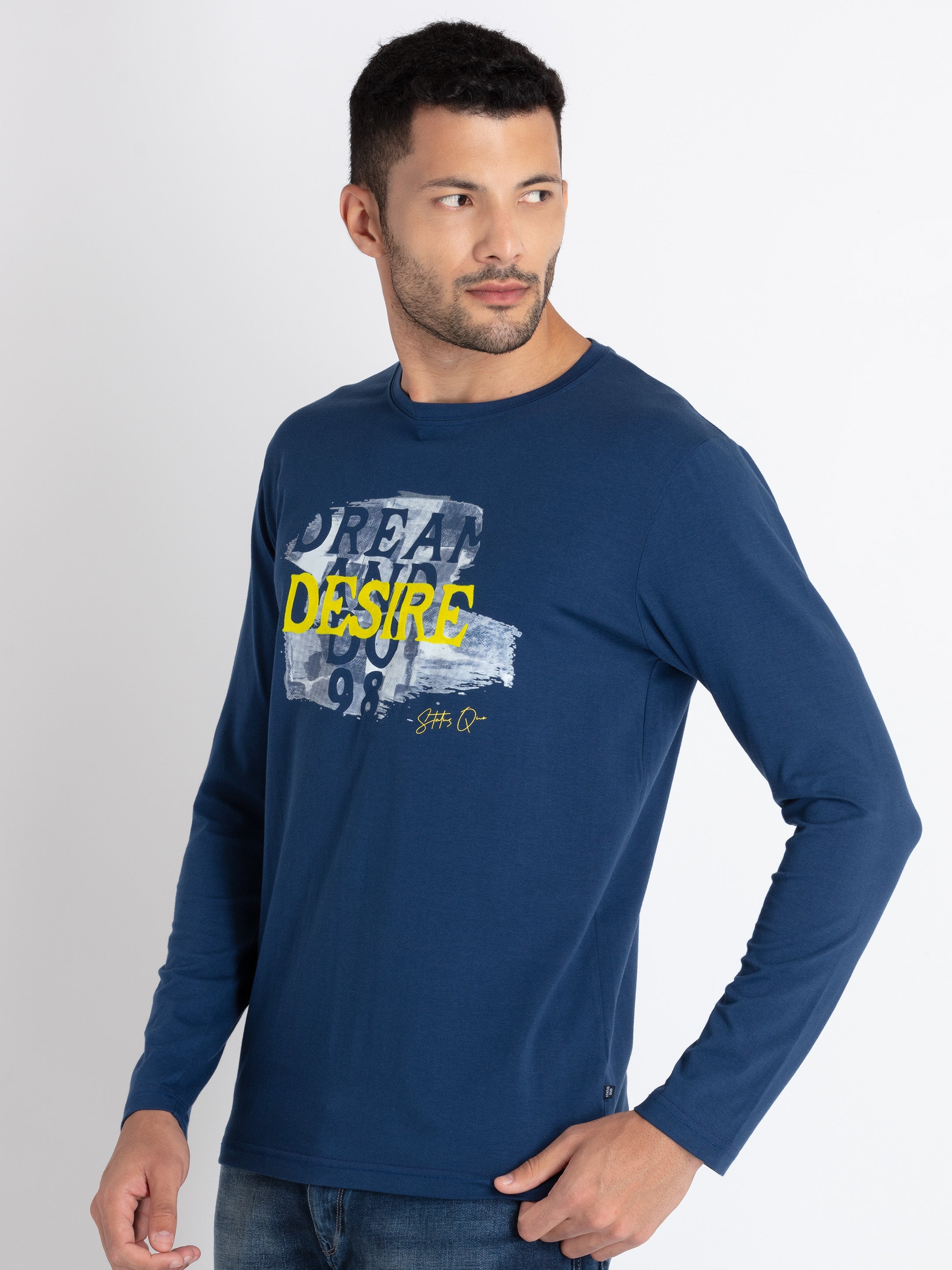 PETROL Printed T-Shirt Has Round Neck, Full Sleeves