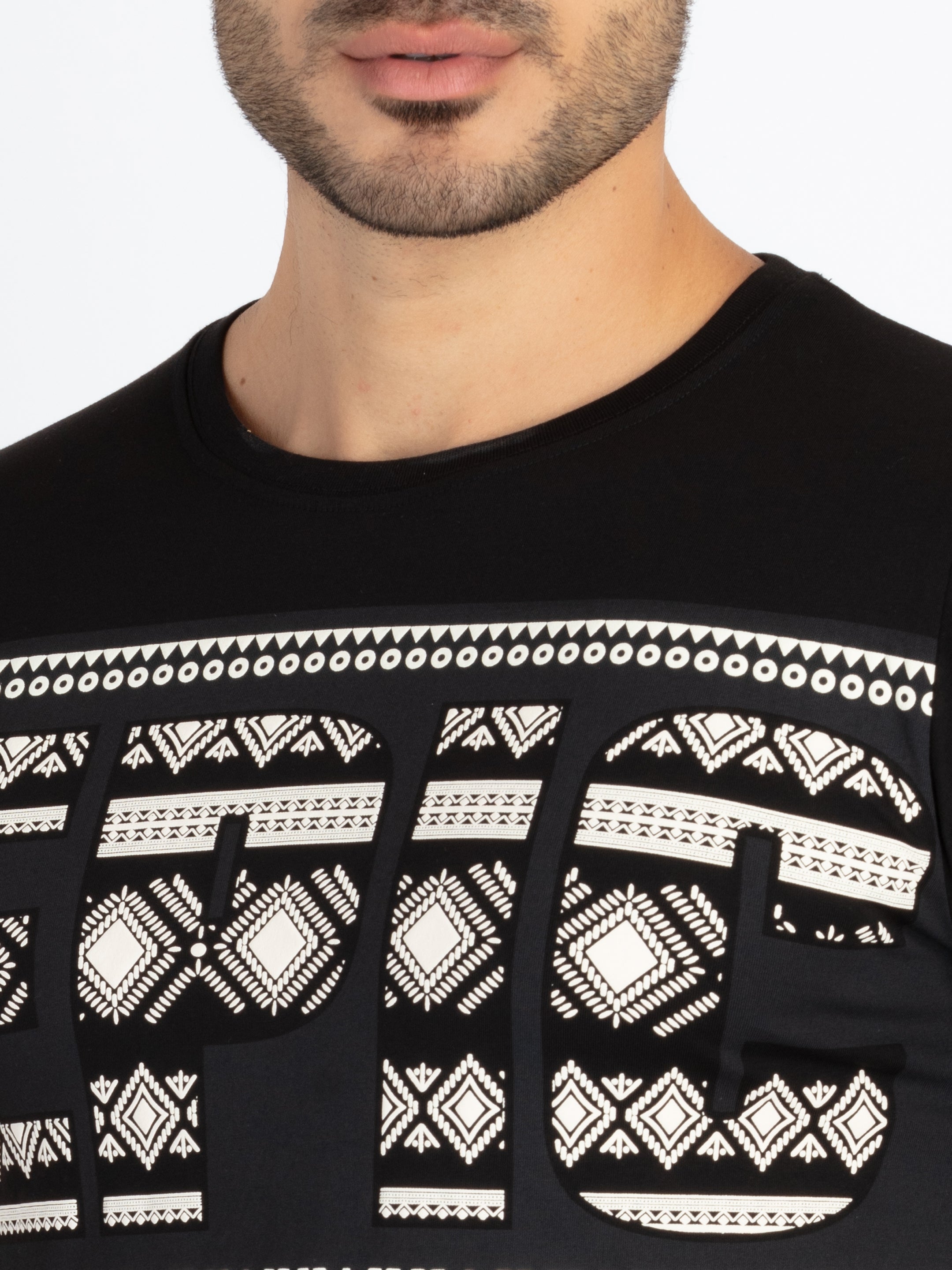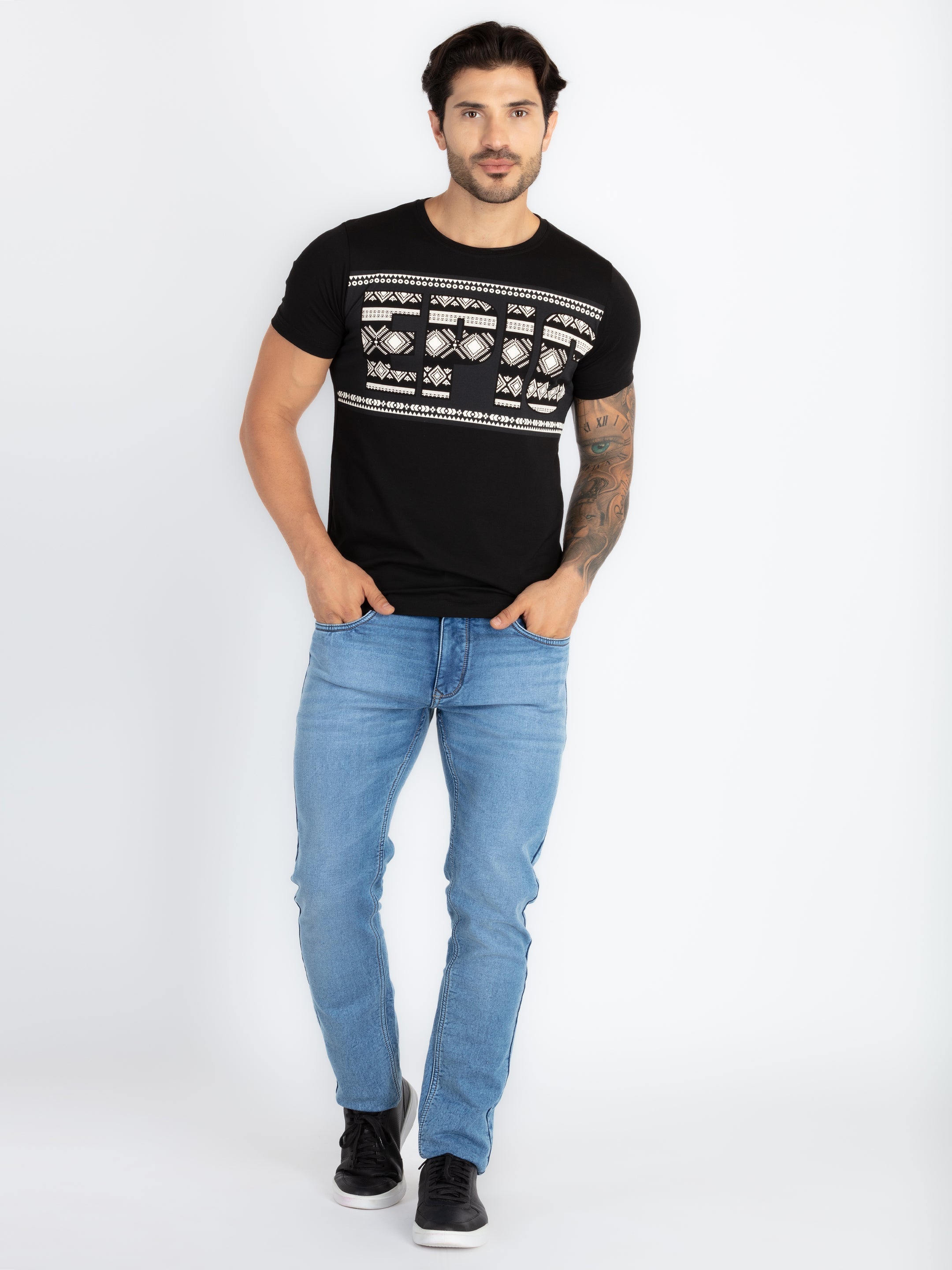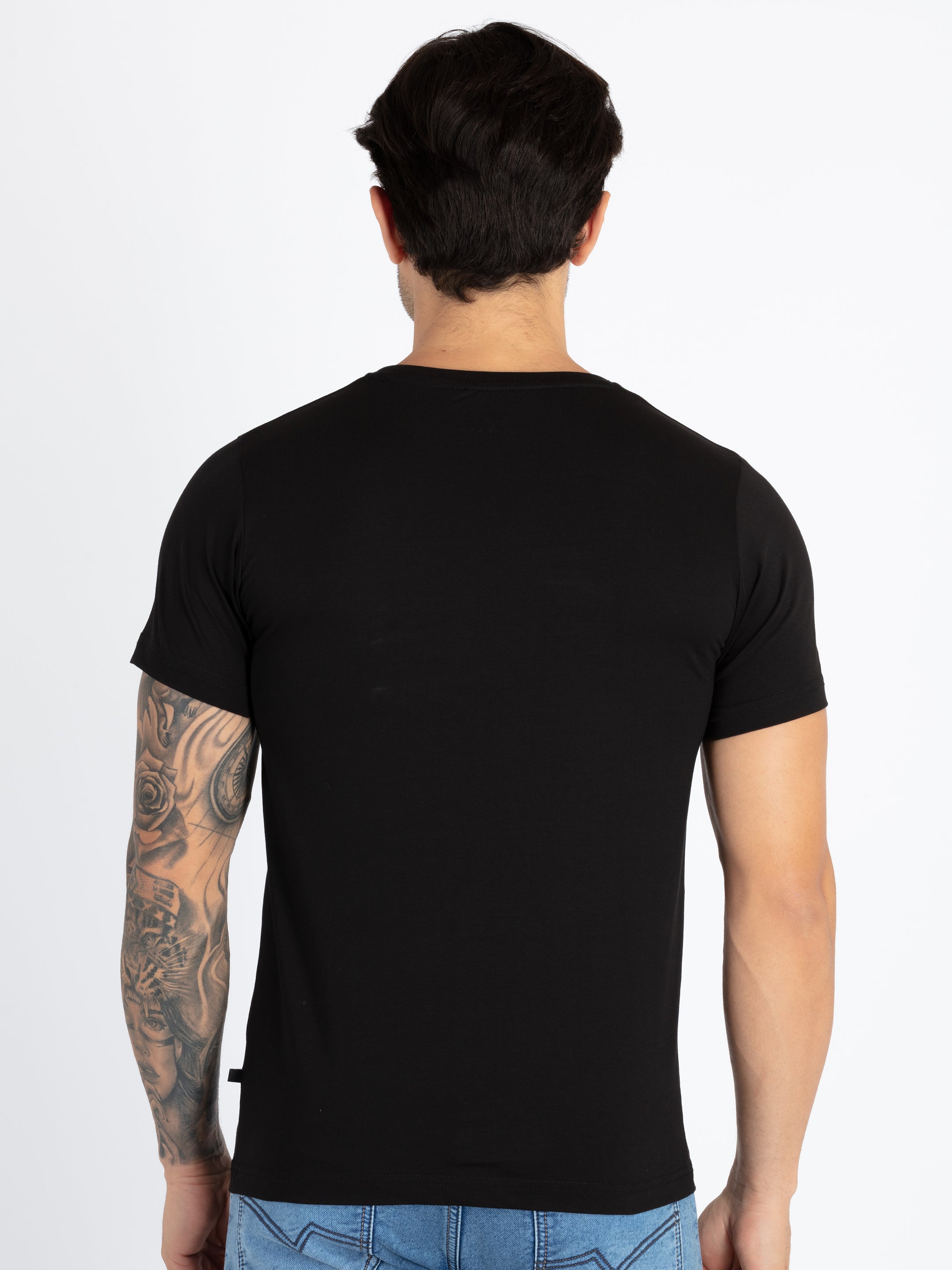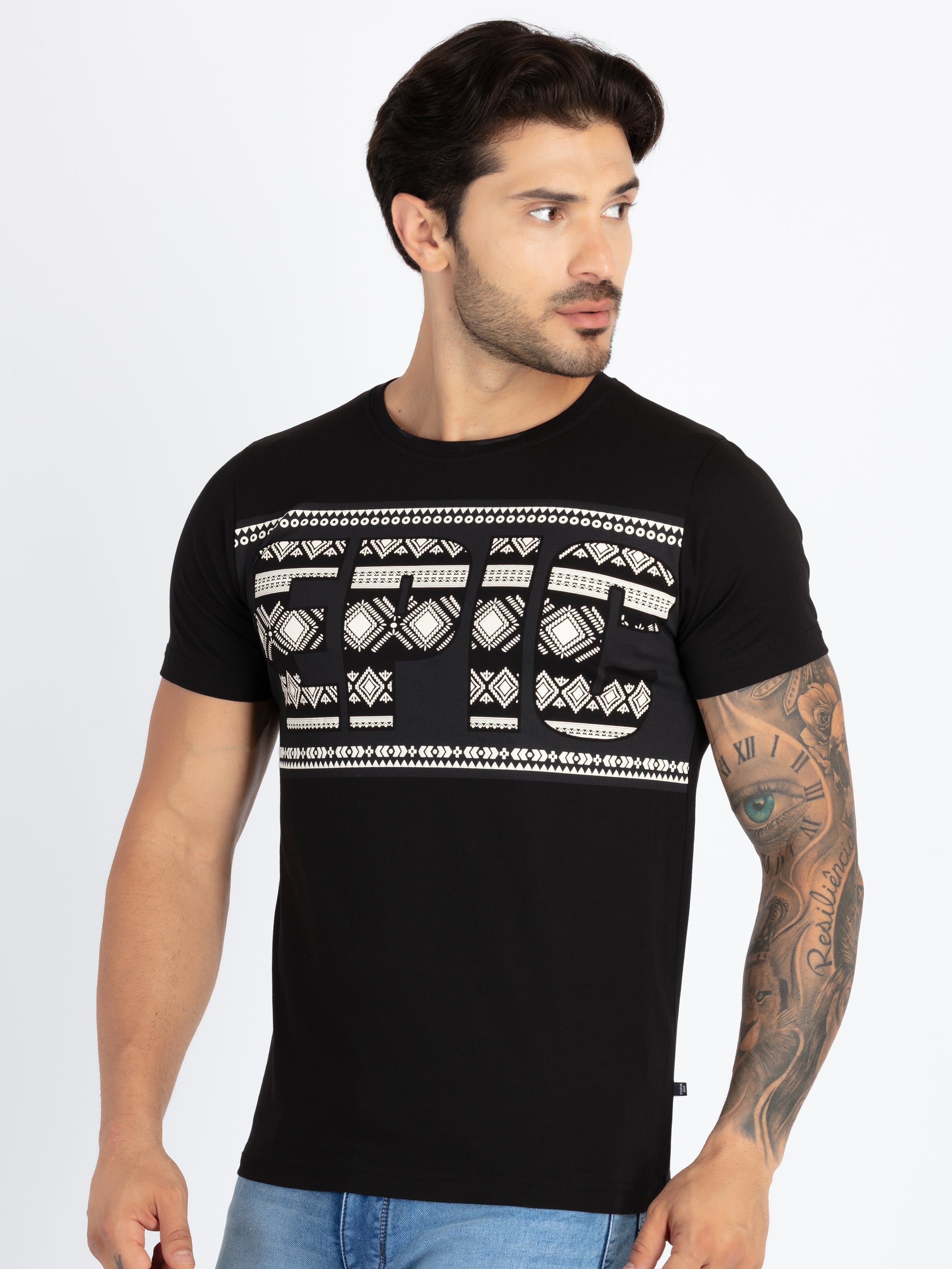 BLACK Printed T-Shirt Has Round Neck, Half Sleeves